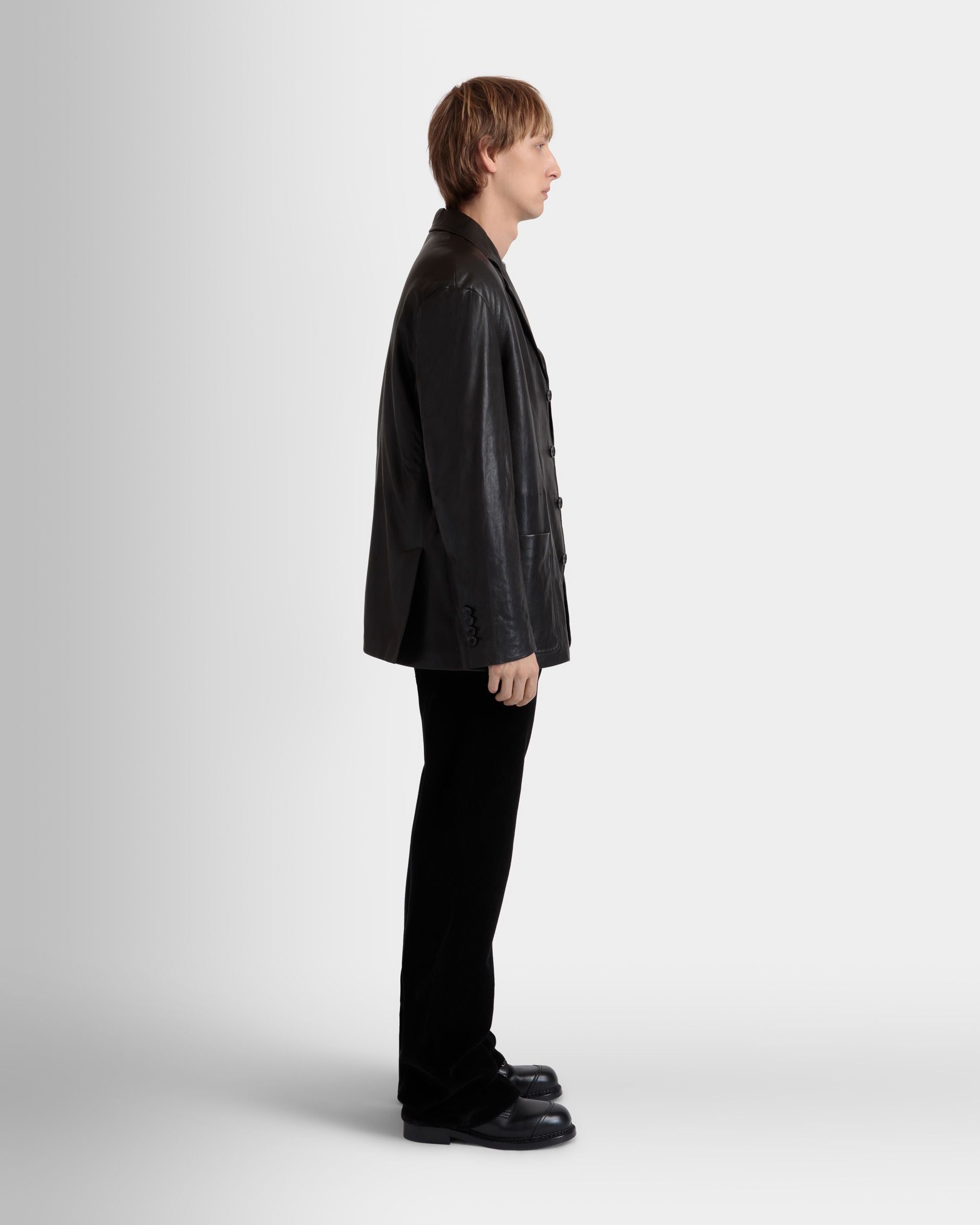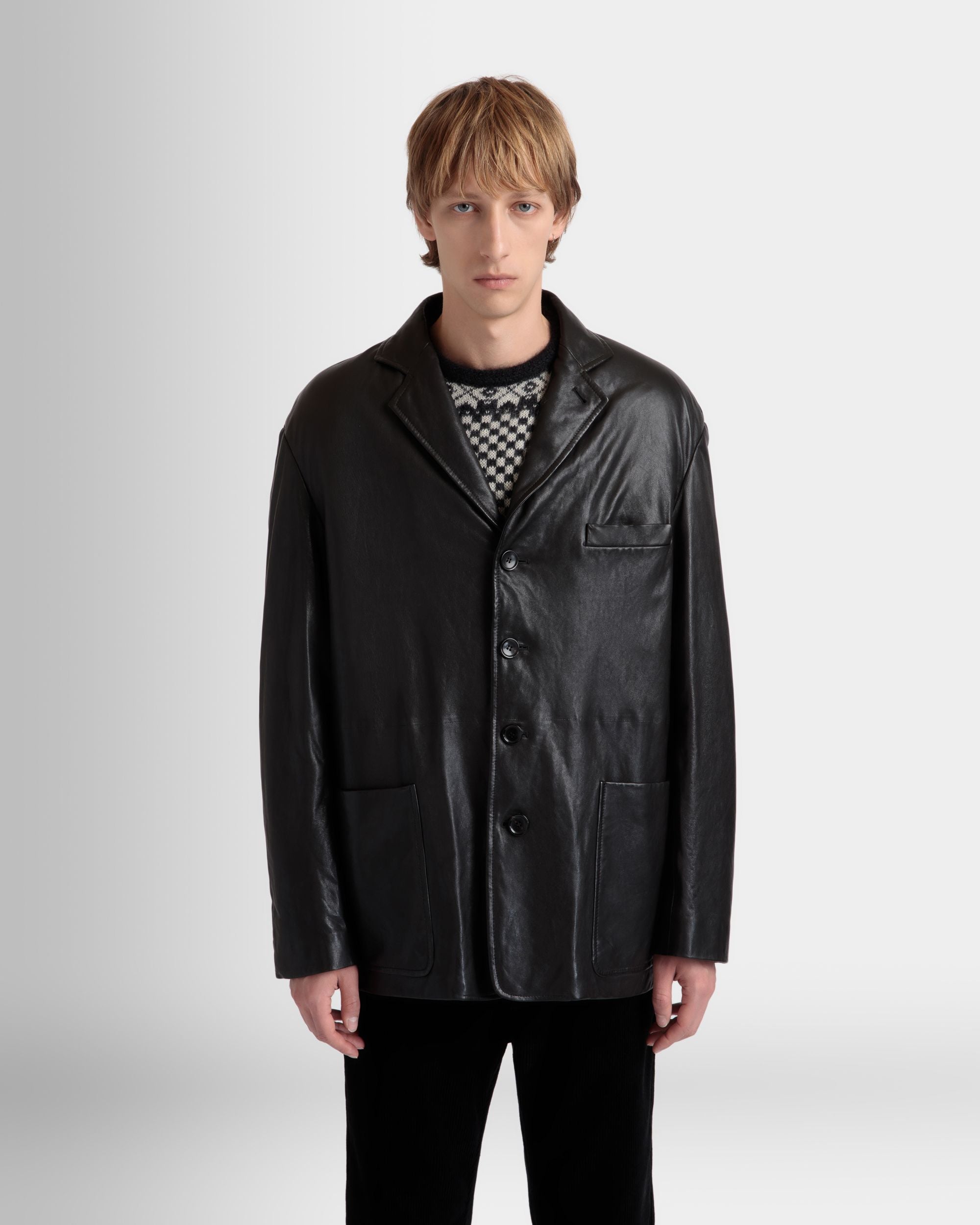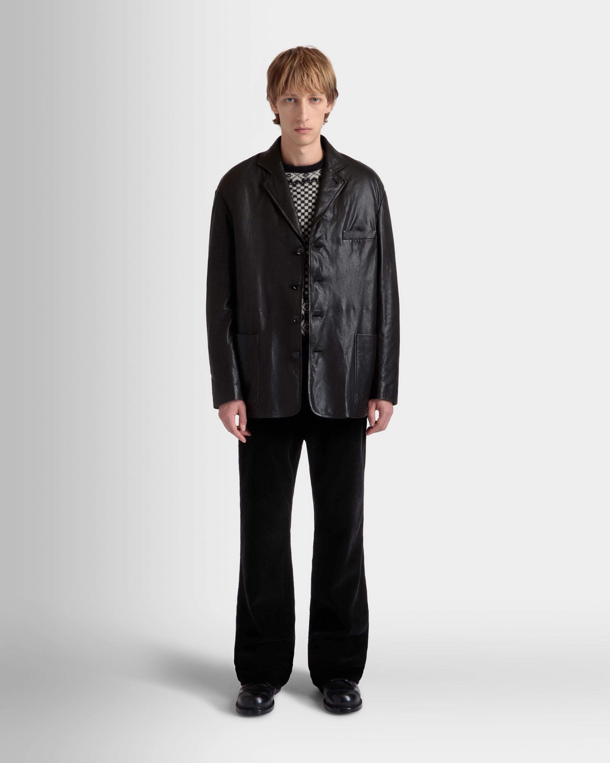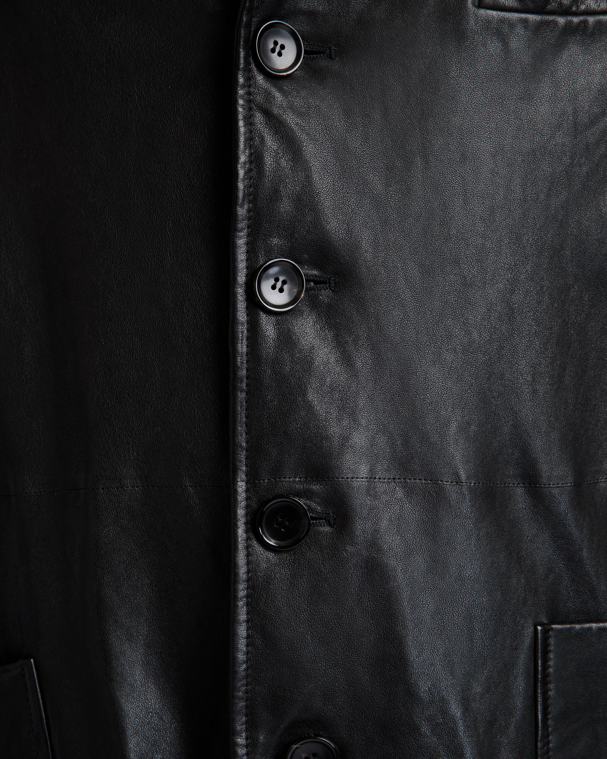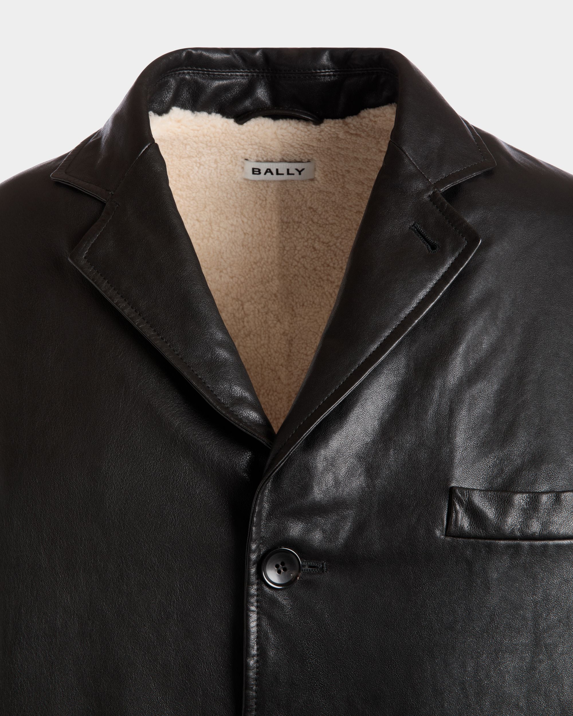 The essential silhouette of this single-breasted leather blazer opens to reveal the soft warmth of shearling on the inside. The waxed lambskin exterior has a rich texture which hints at a vintage aesthetic, brought into the modern day.
