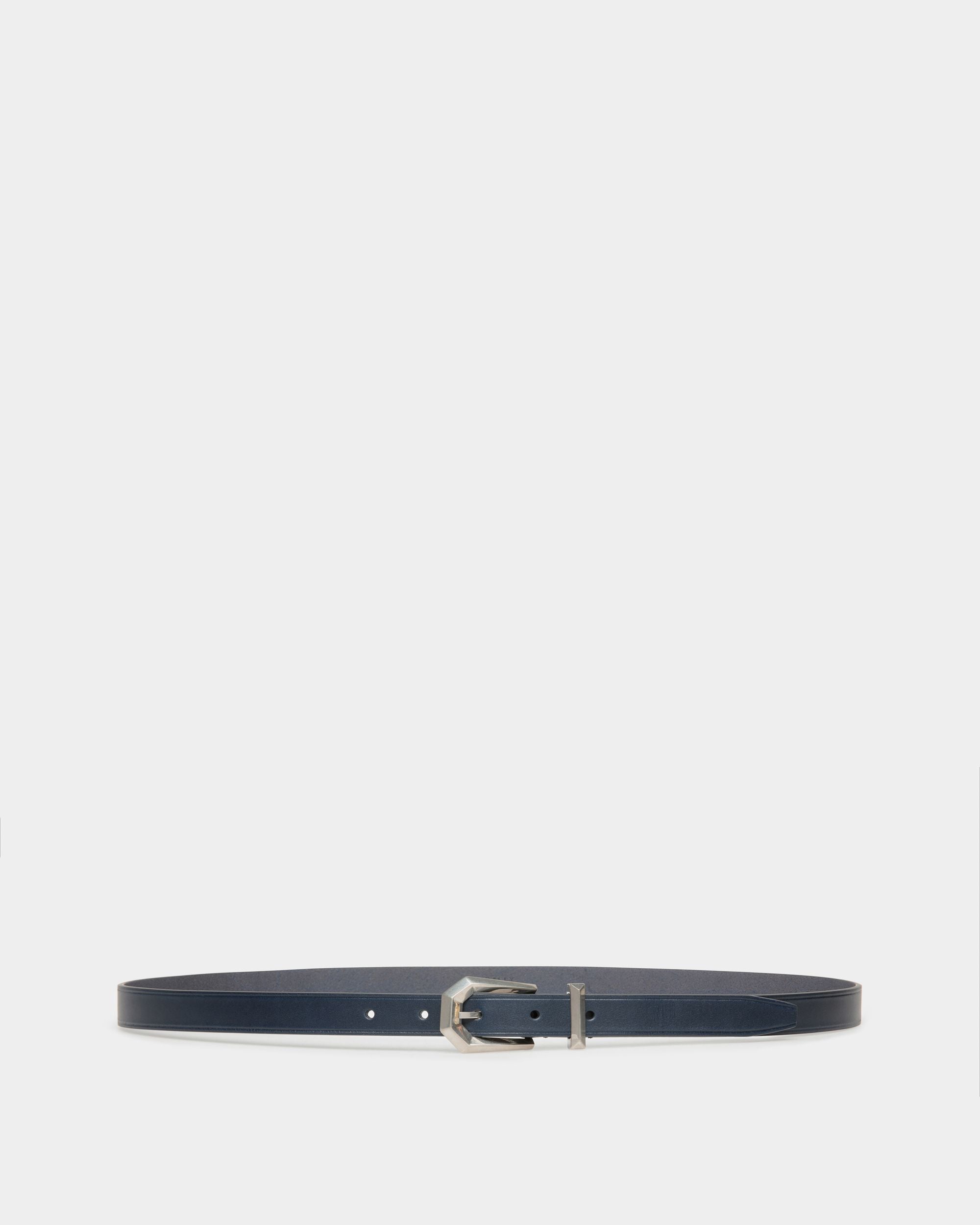 In elegant navy blue leather, the Prisma 20mm belt features a palladium-tone metal buckle crafted into geometric facets.