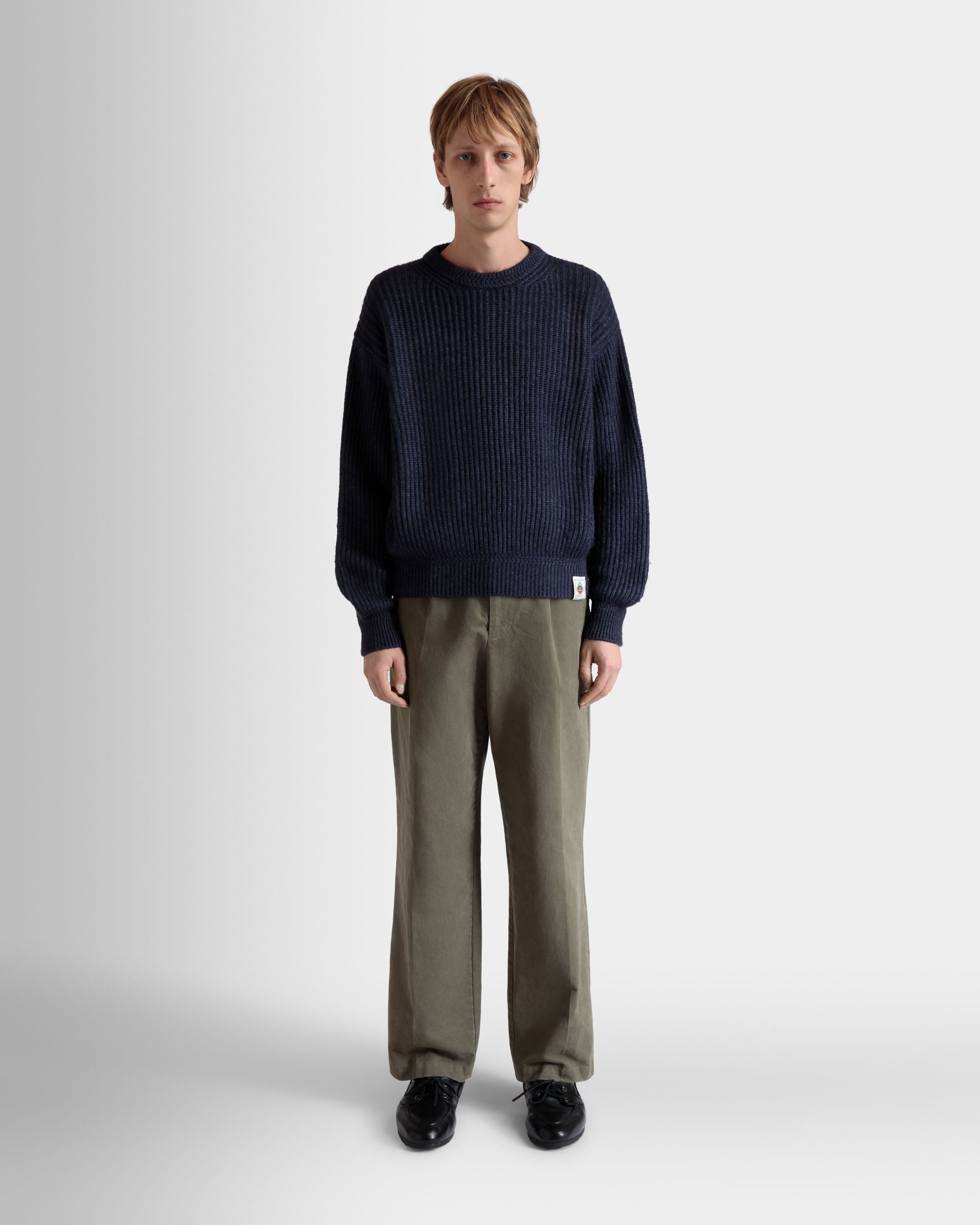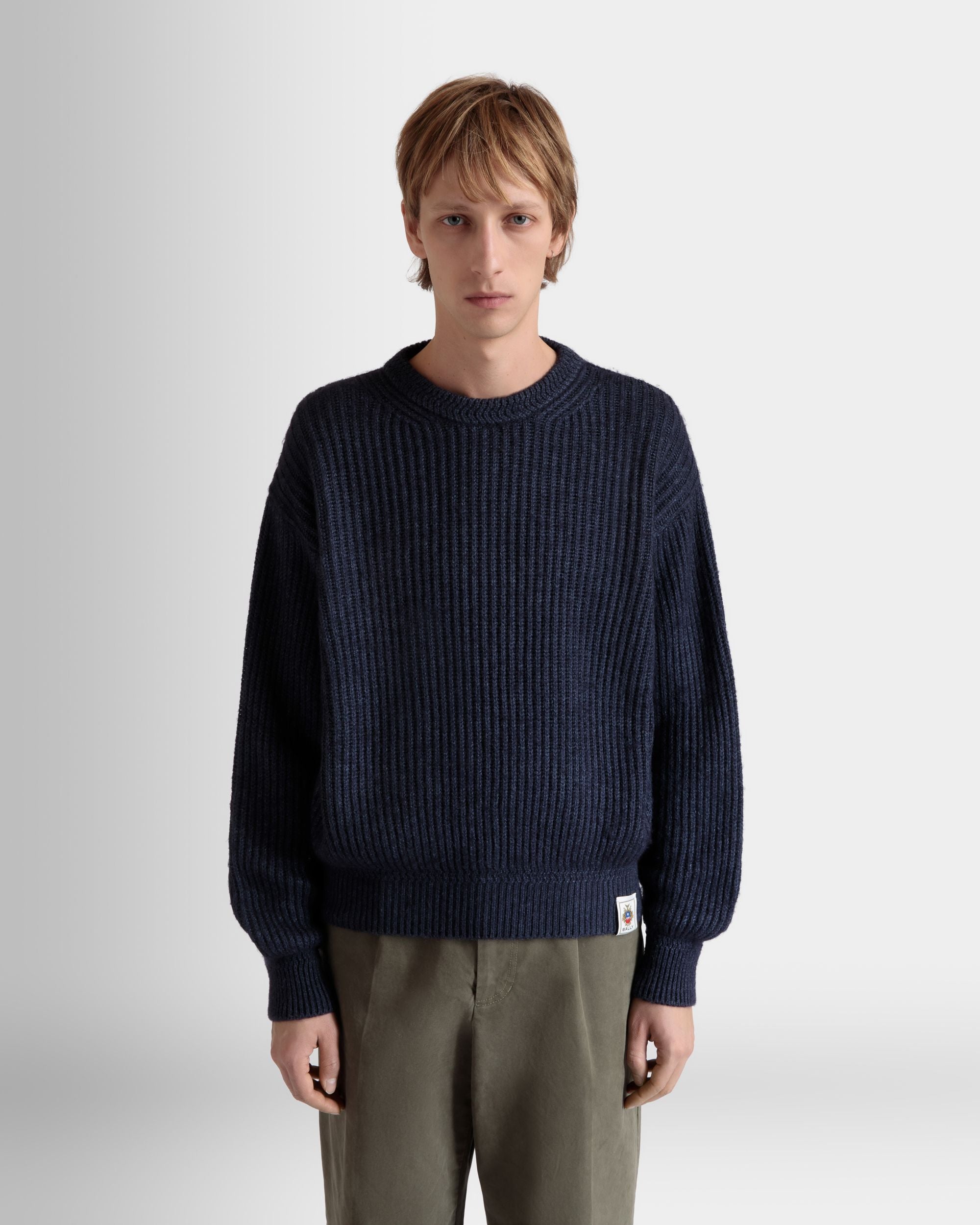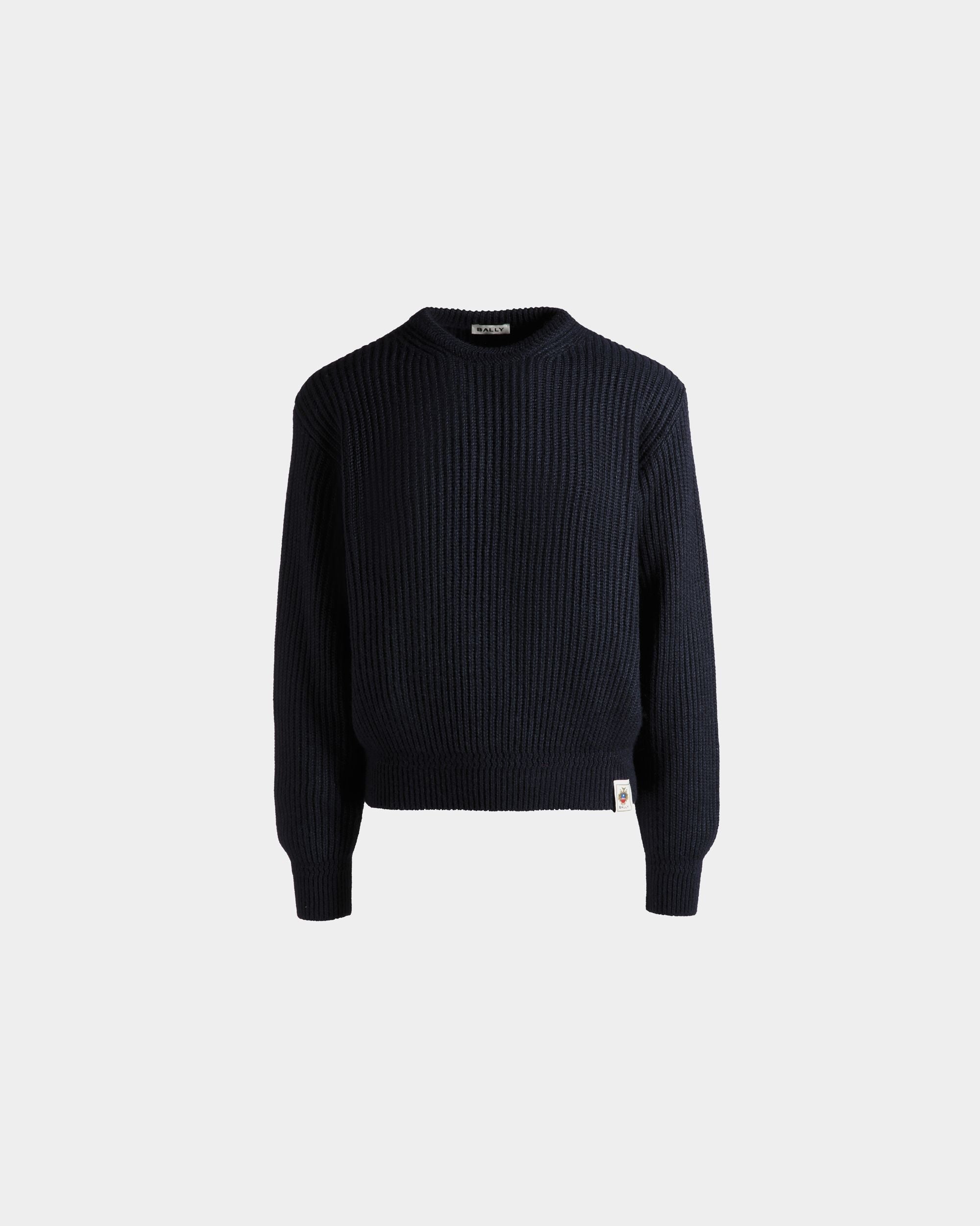 Crewneck Sweater With Bally Crest Logo In Navy Blue Wool And Silk