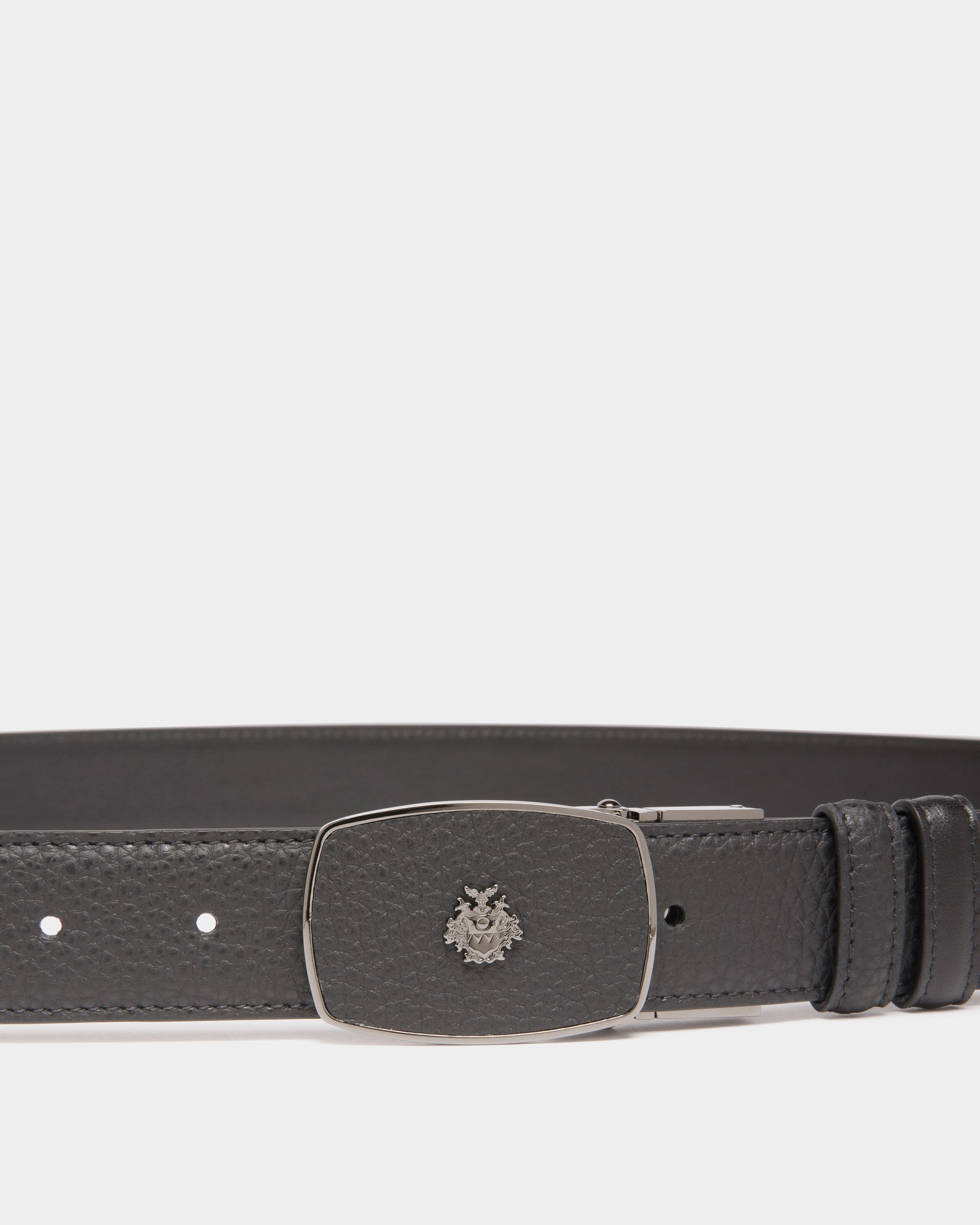 A masterpiece of fine leatherworking, this Govin 30mm adjustable and reversible belt features a ruthenium-hue frame buckle with inset leather and a metal Bally Crest detail at the front.