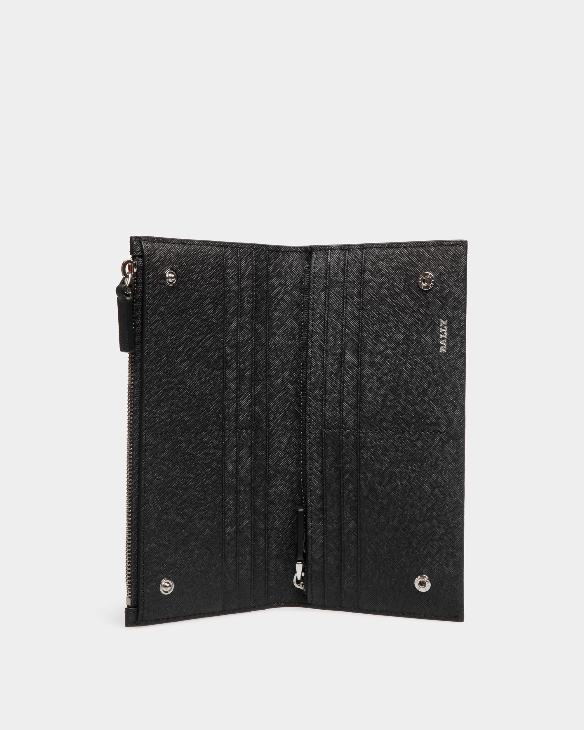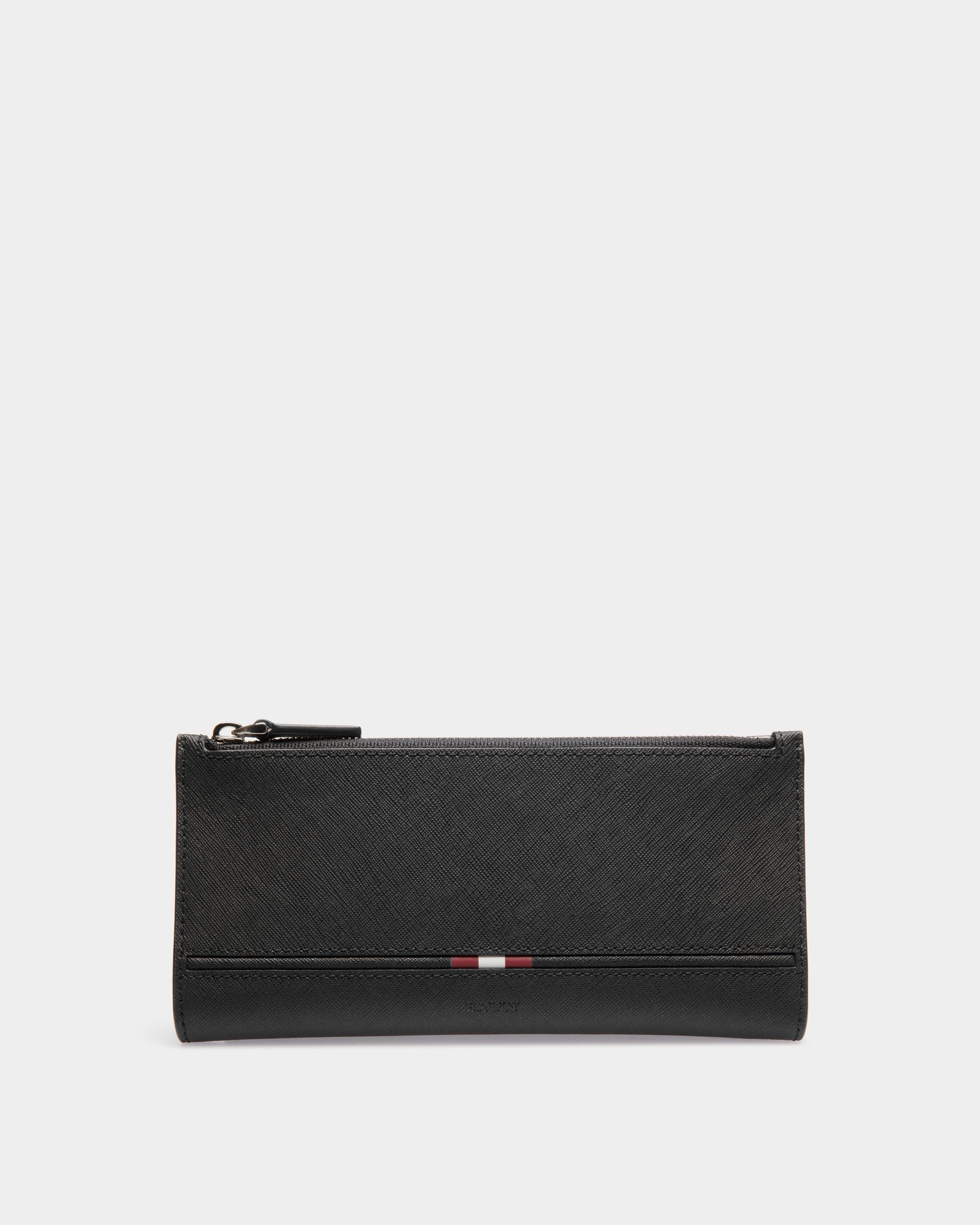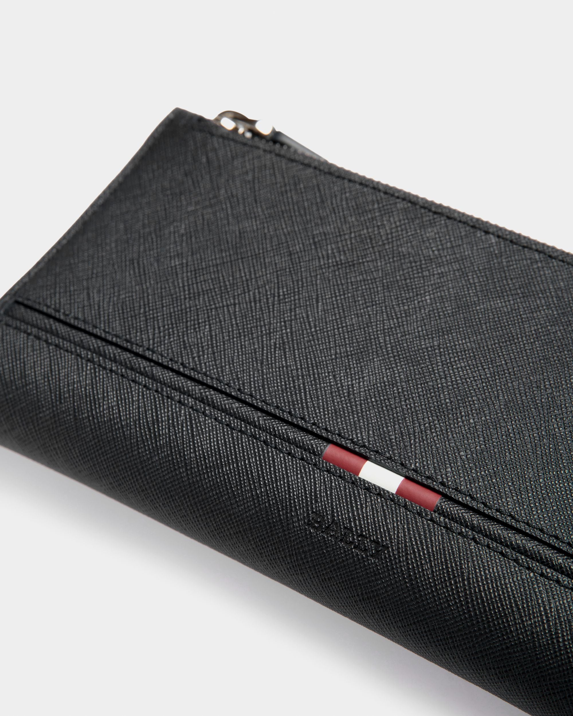 With a textural finish for elegance and durability, this black leather continental wallet is designed with multiple compartments. Piping with a Bally Ribbon detail has been inset at the front, a signifier of Bally's meticulous craftsmanship.