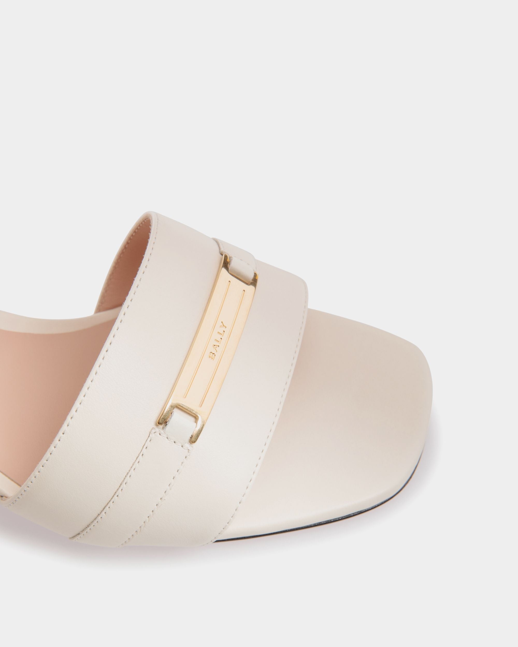 This Deco sandal is crafted in fine white leather with a semi-gloss finish. A simple metal plaque across the upper recalls the Bally Ribbon in an elegant detail that timelessly captures the brand's heritage.