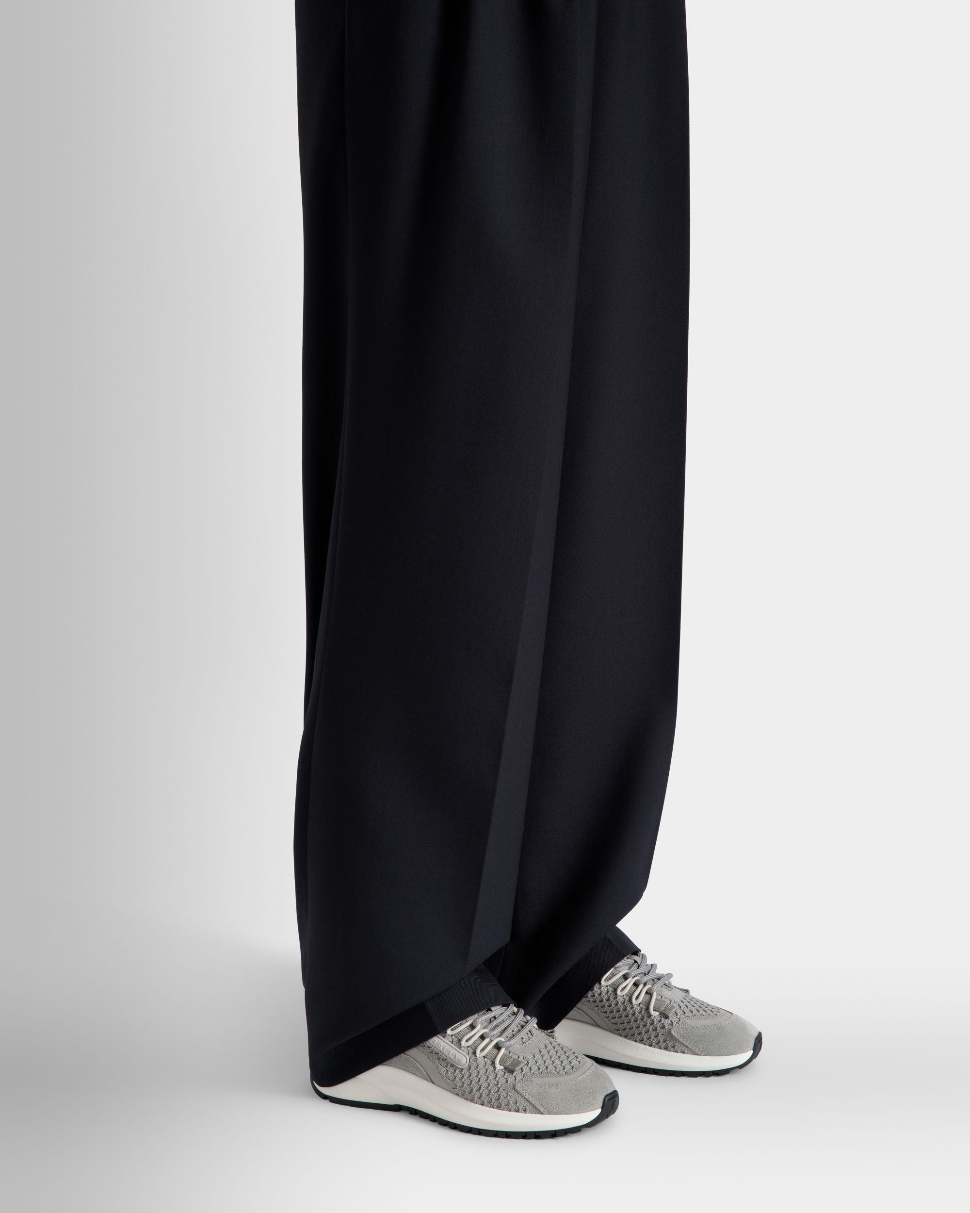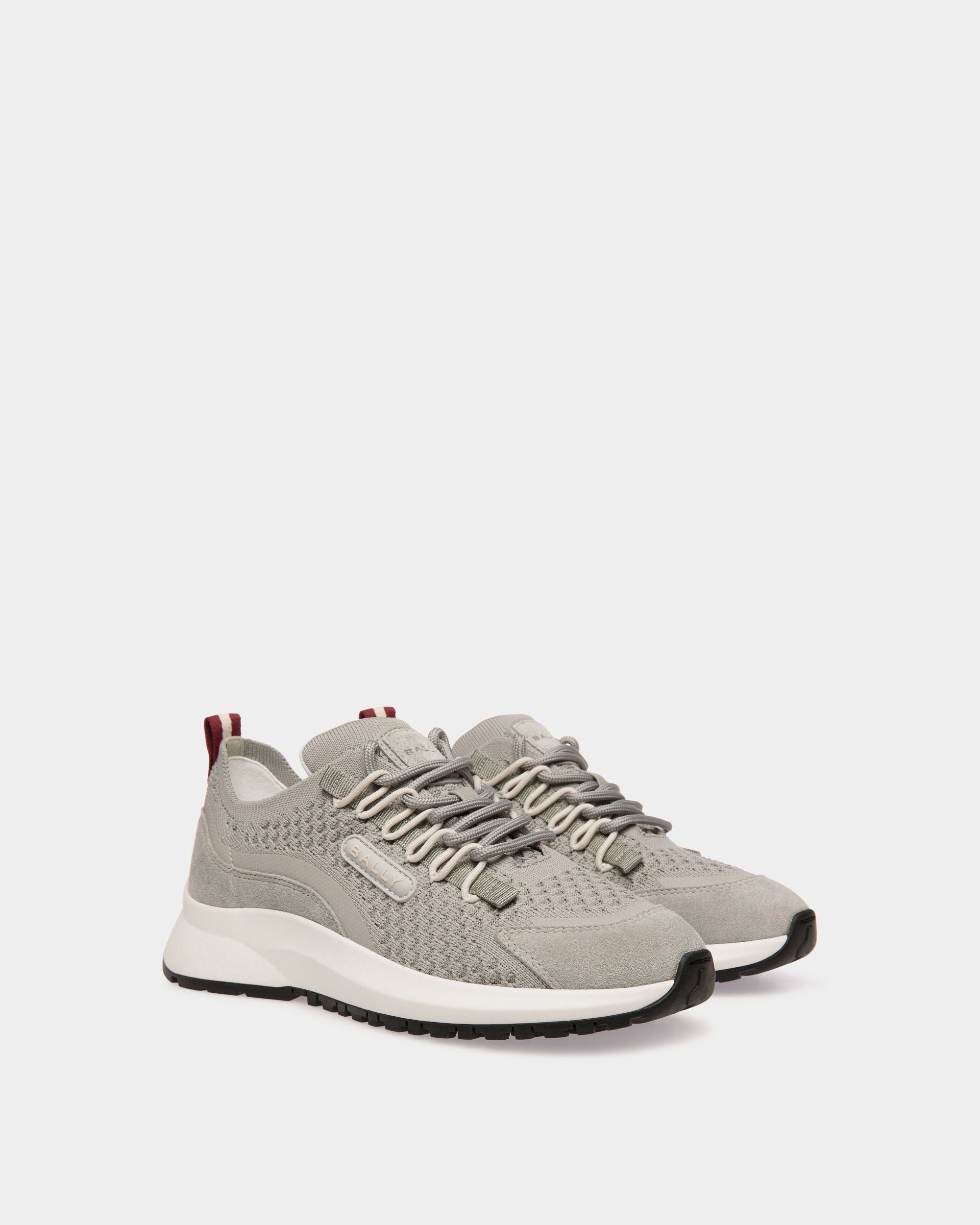 This Outline sneaker has a honeycomb-knit fabric upper and a grippy rubber sole. It is protected by leather reinforcements at the heel and toe for reliable durability.