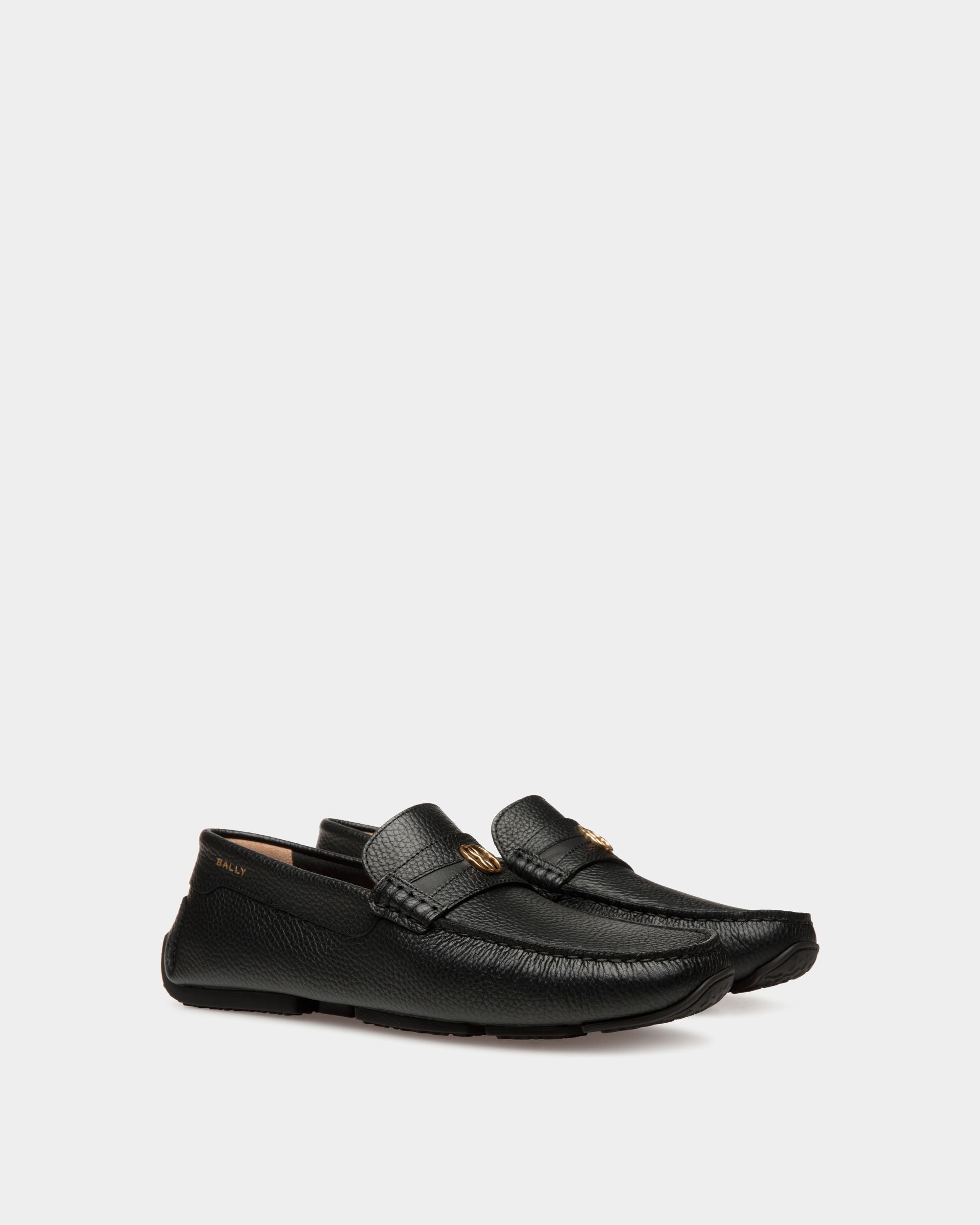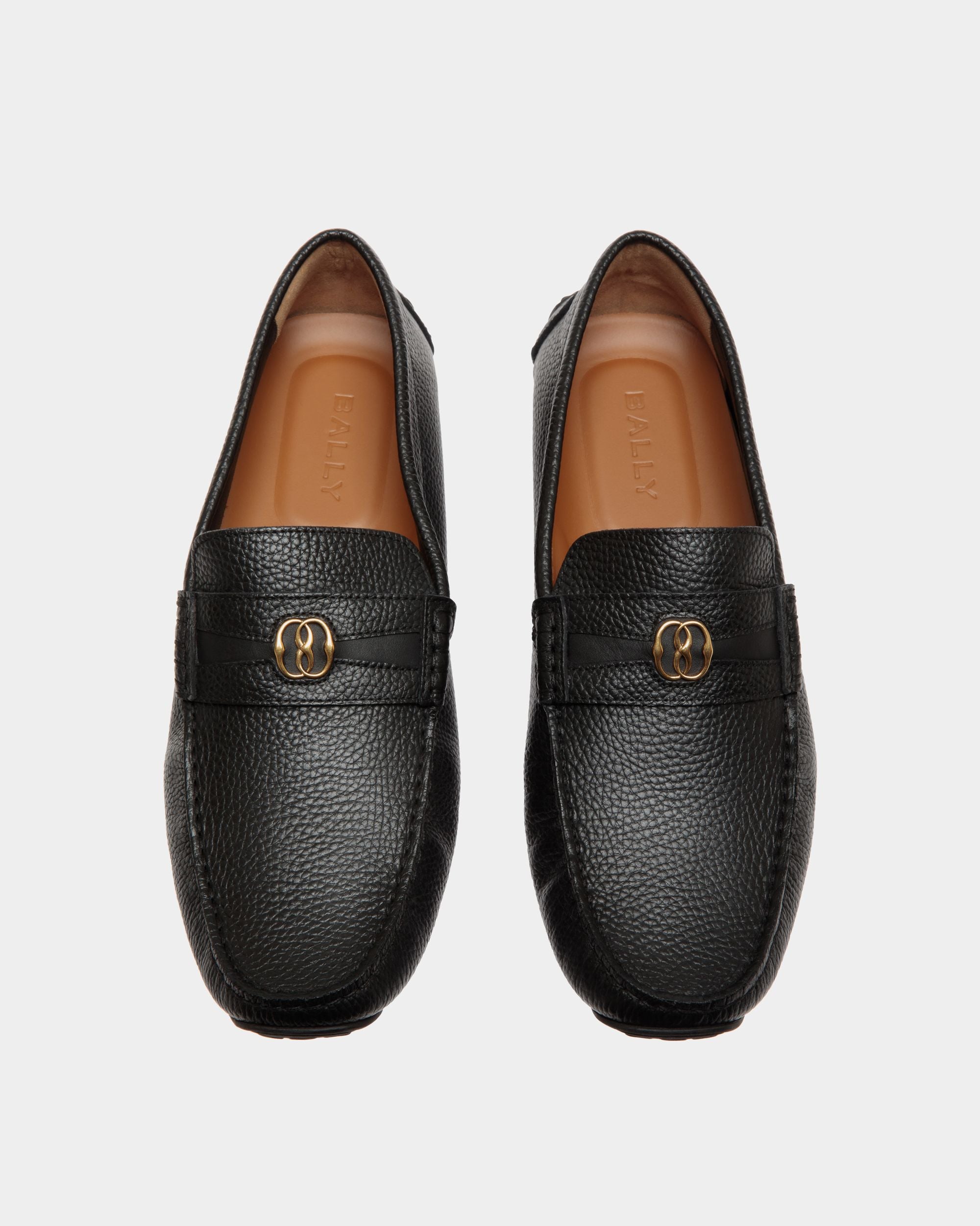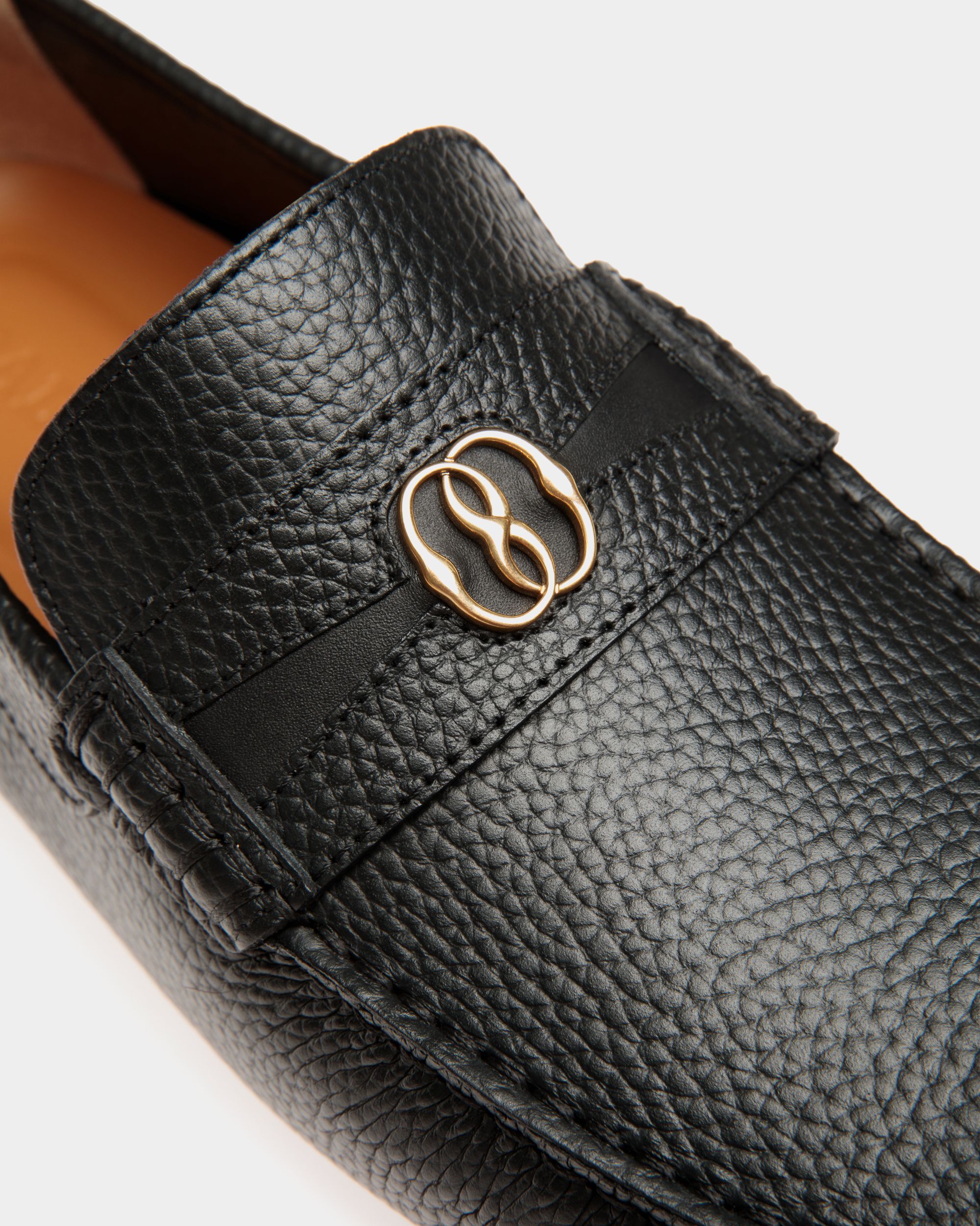 These driver shoes are made from grained leather. They are embellished with gold-tone hardware on the saddle strap.