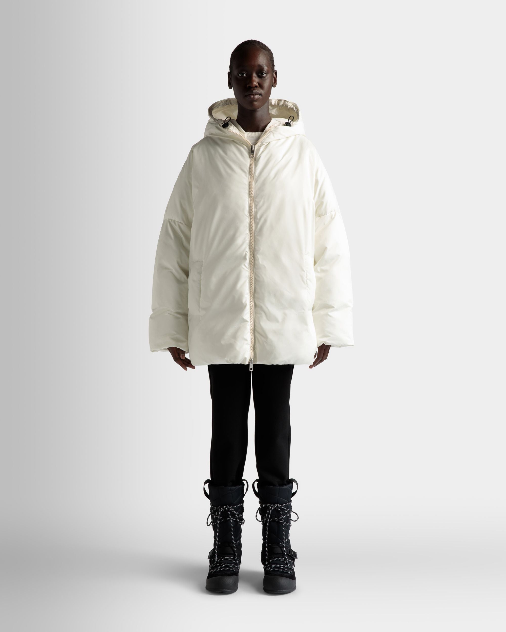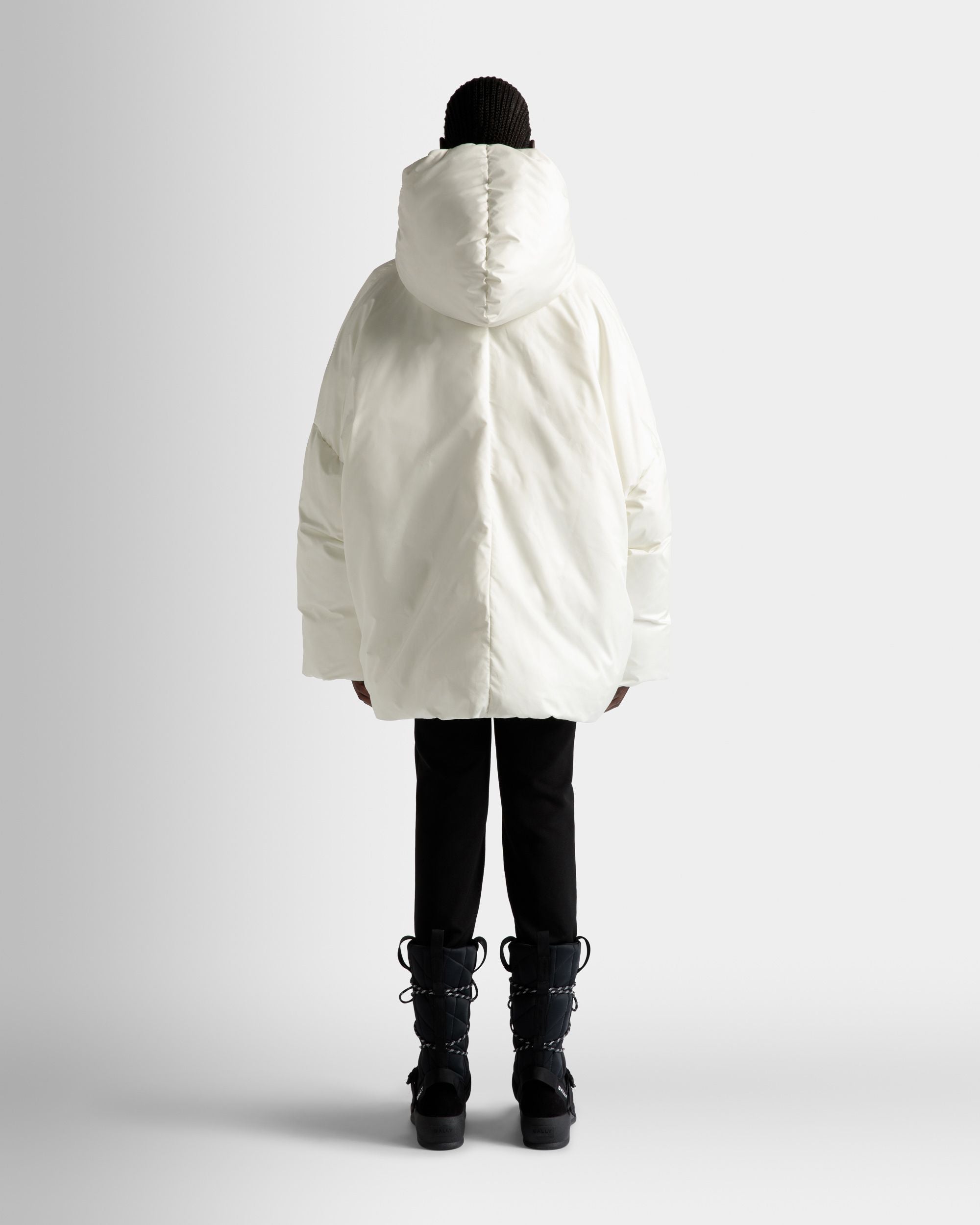 Elevate your winter wardrobe with our white puffer jacket in high-quality ripstop nylon fabric. Stay warm in this fashion-forward look, with its clean white hue and on-trend puffer silhouette.