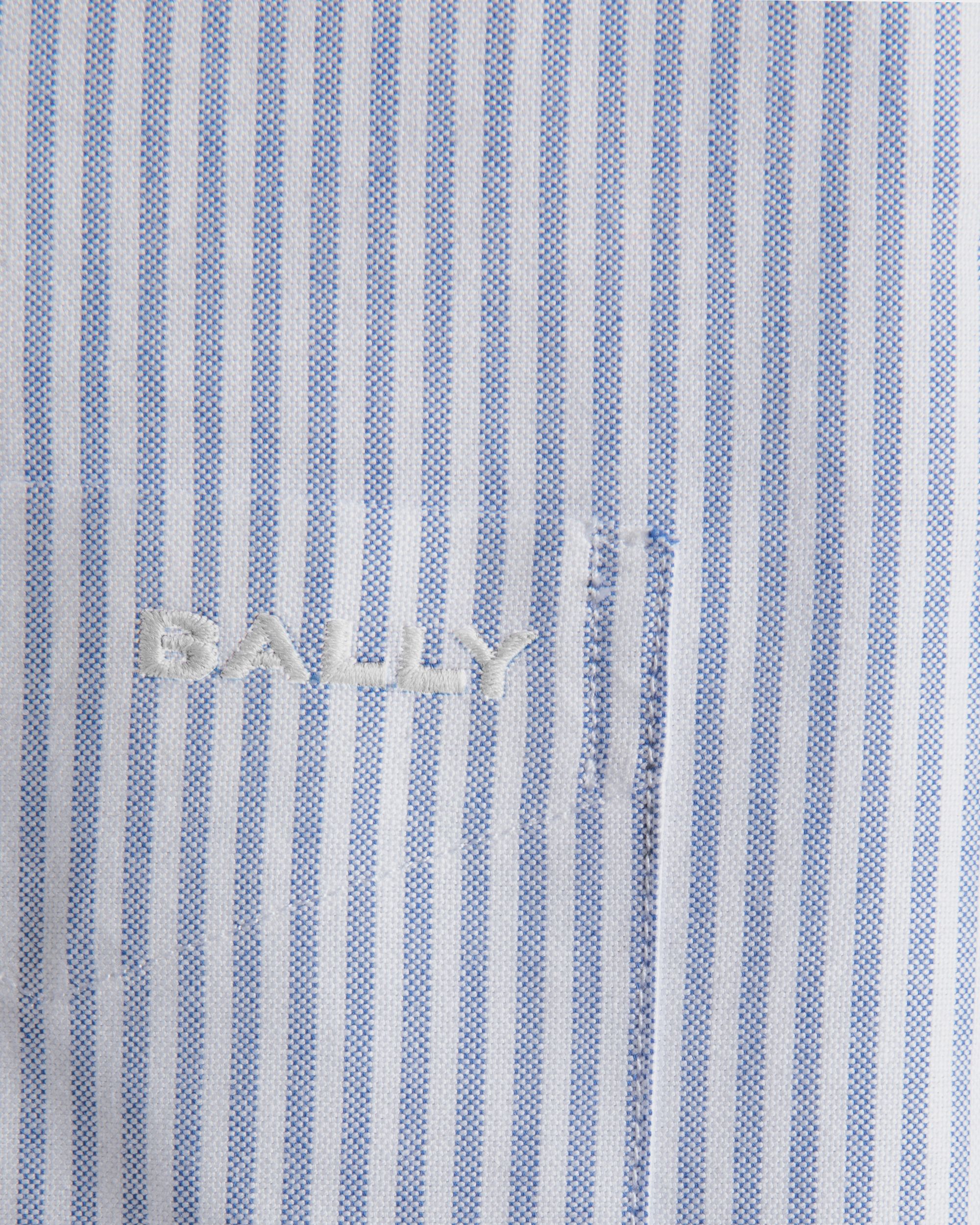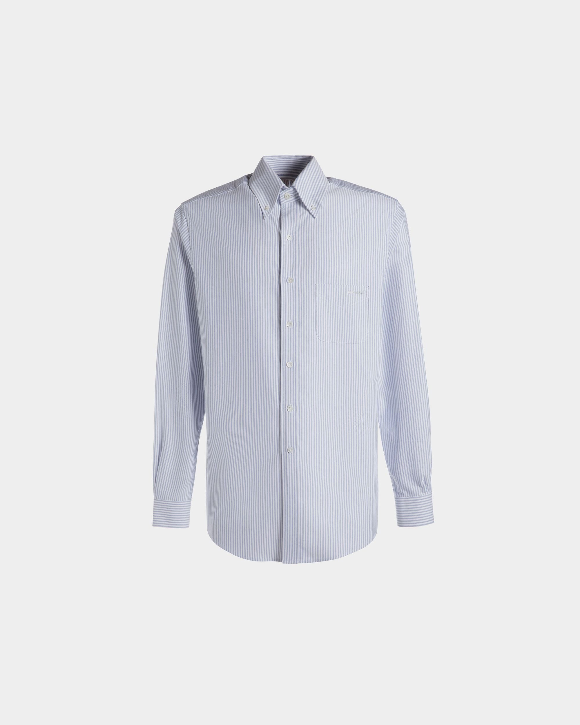 Classic and distinguished, this long sleeve shirt in cotton features a blue and white stripe motif. An embroidered Bally logo adds the finishing touch to the chest pocket.