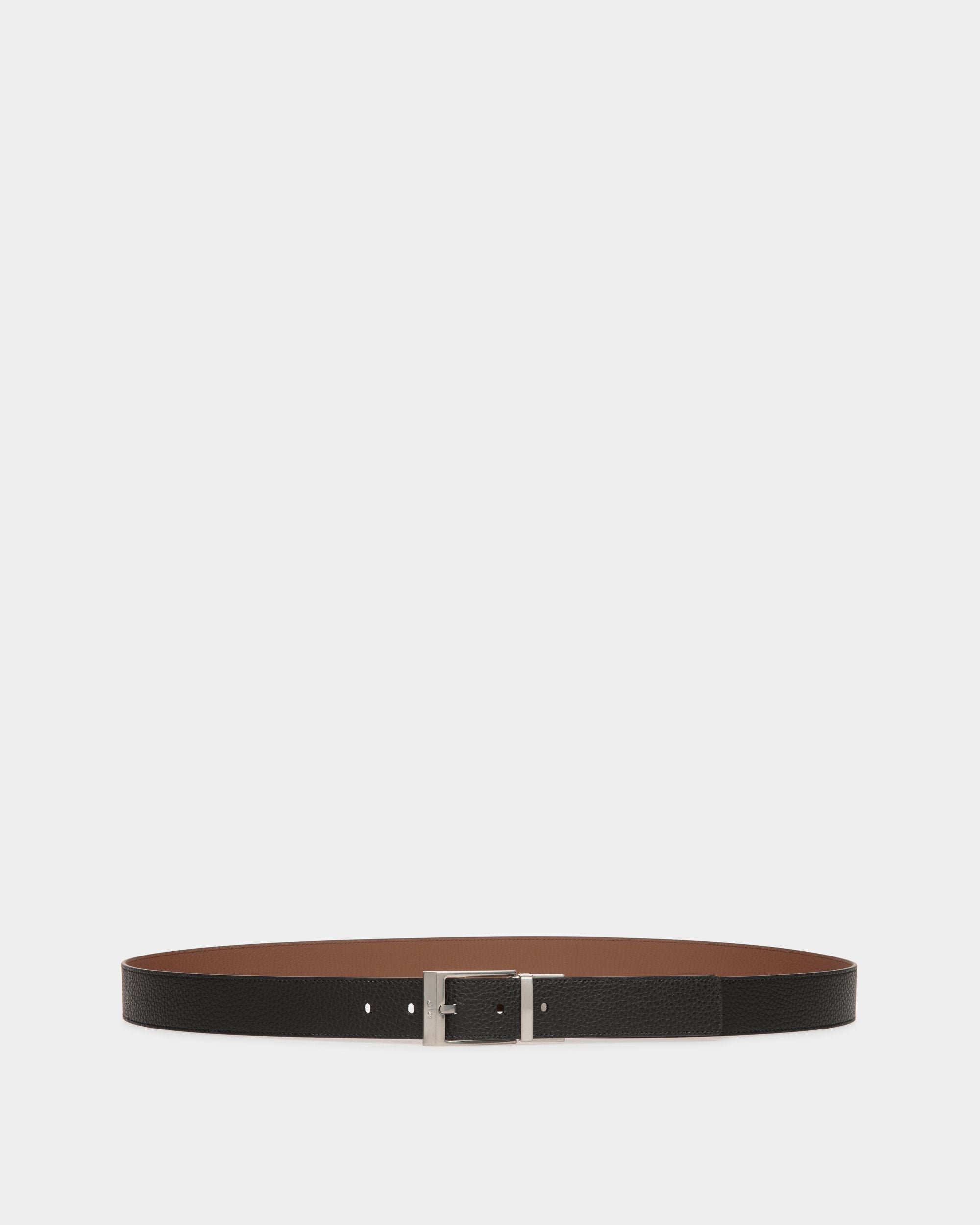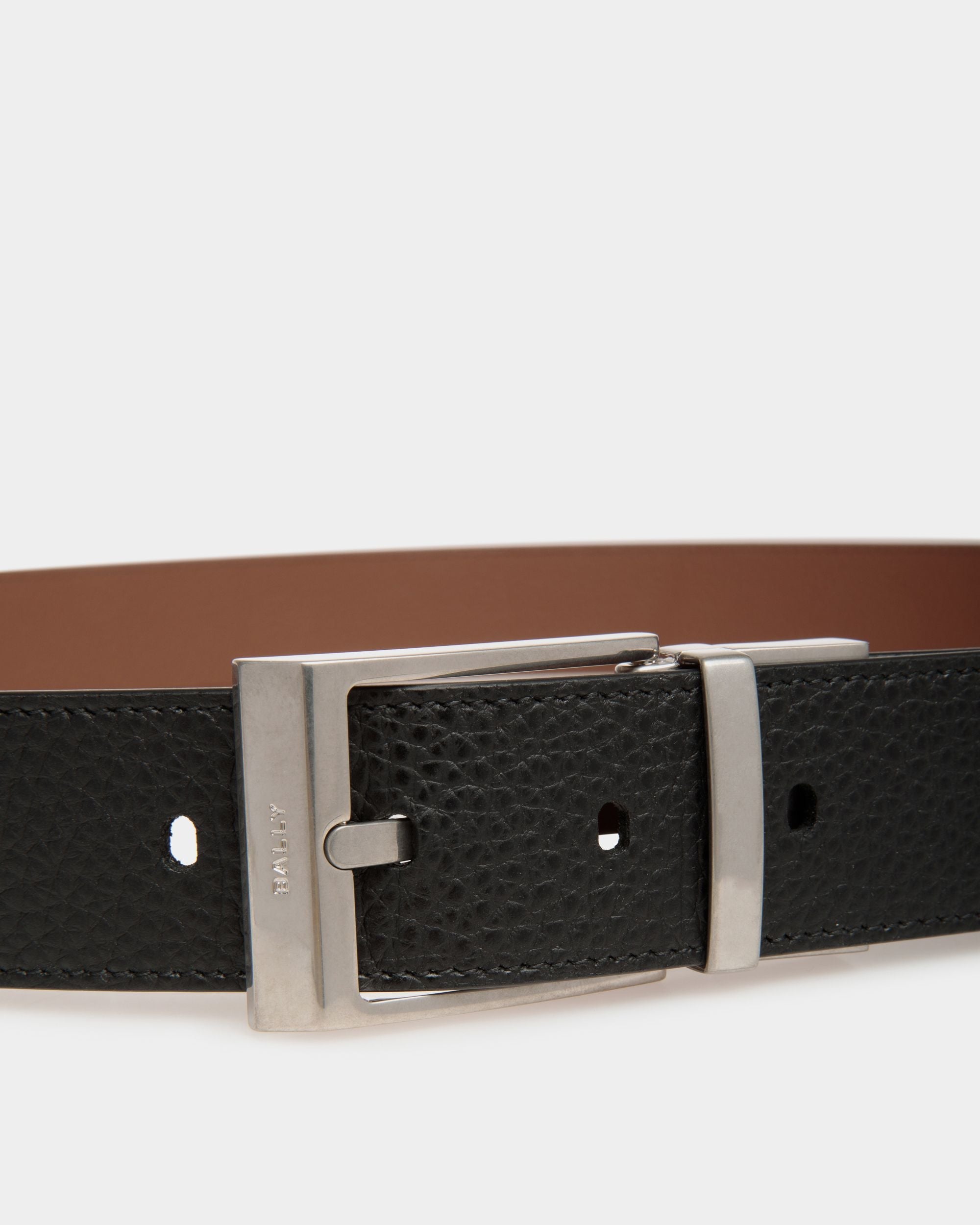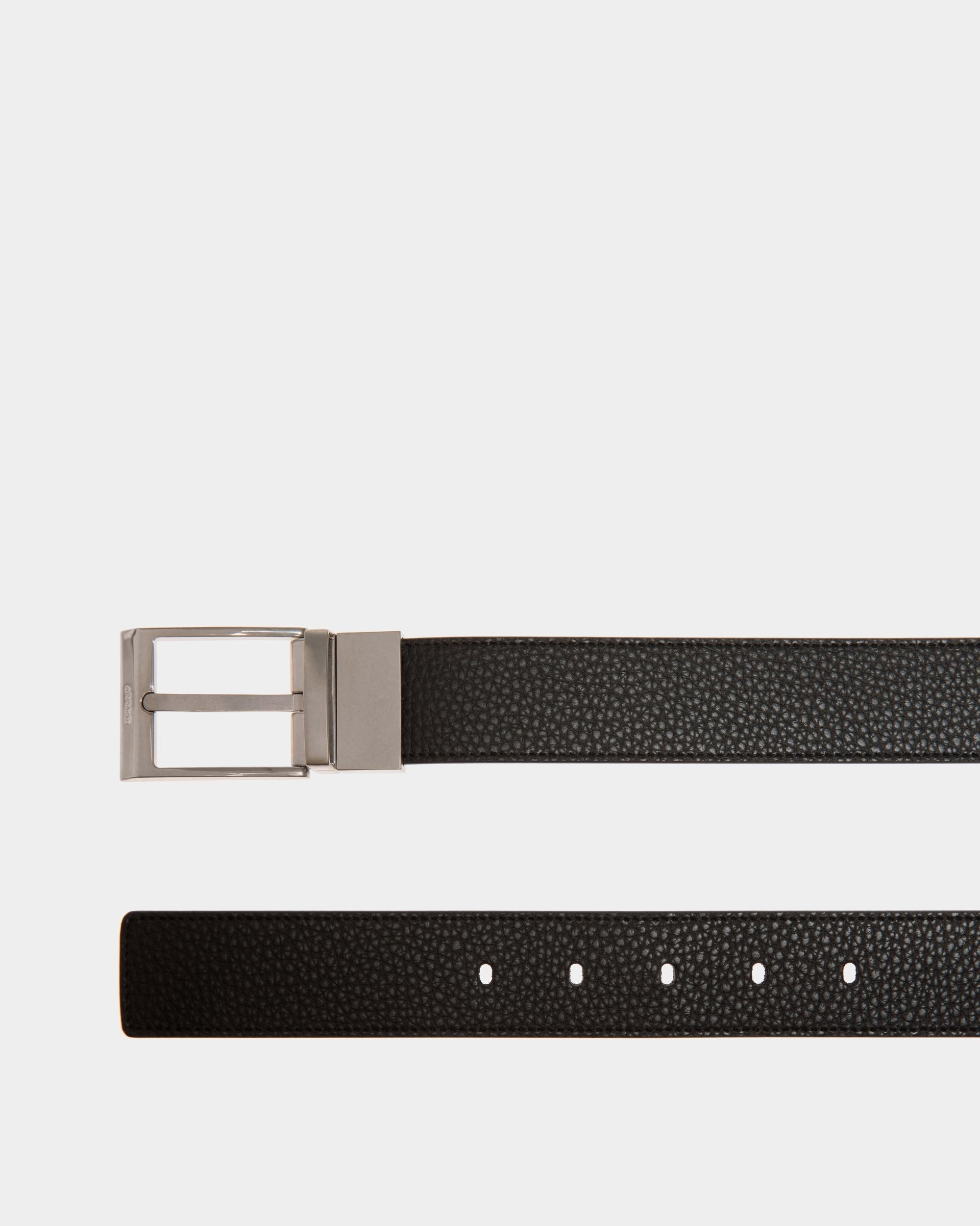 This reversible belt featured in black and brown leather is characterized by an adjustable design that renders it a versatile accessory.
