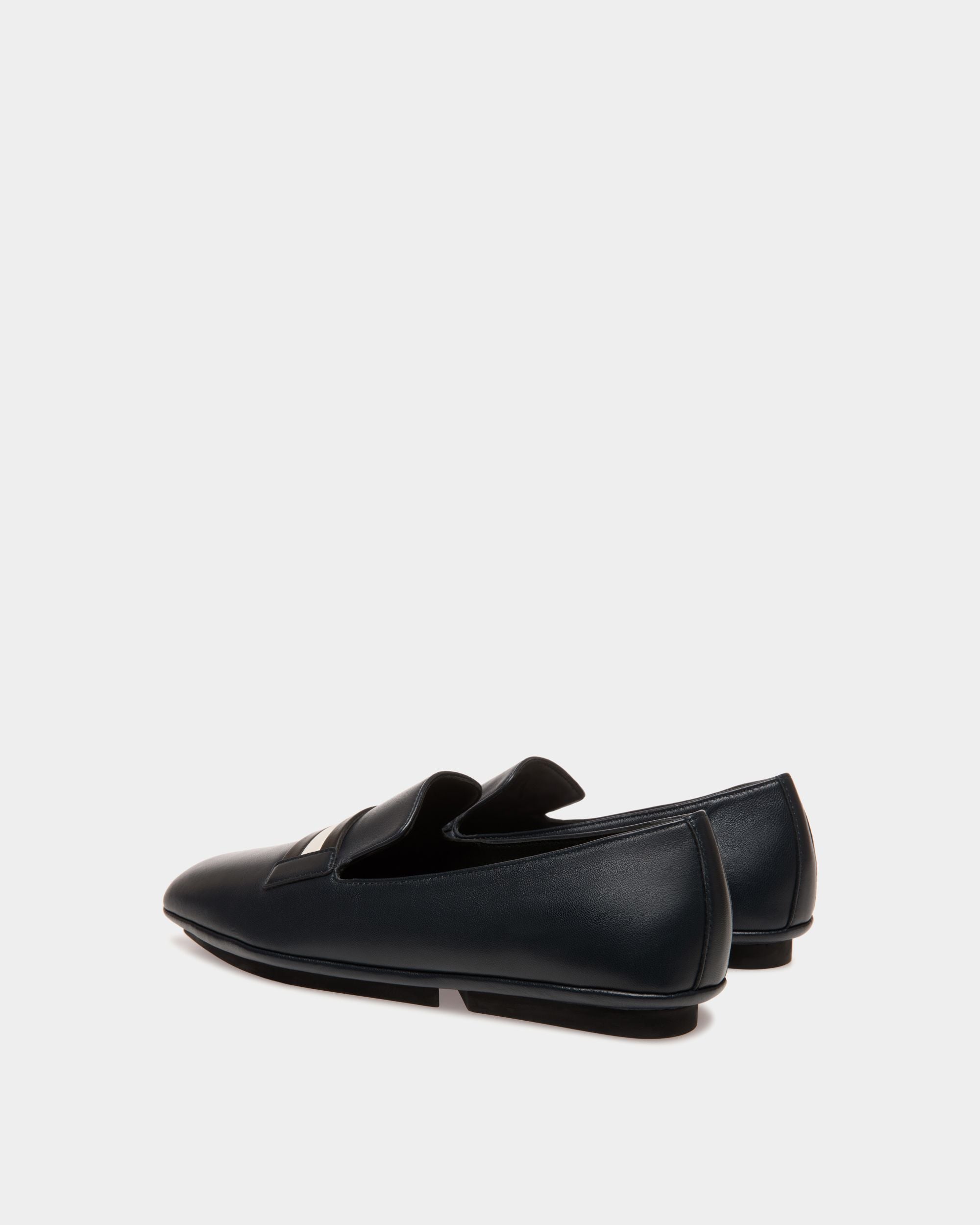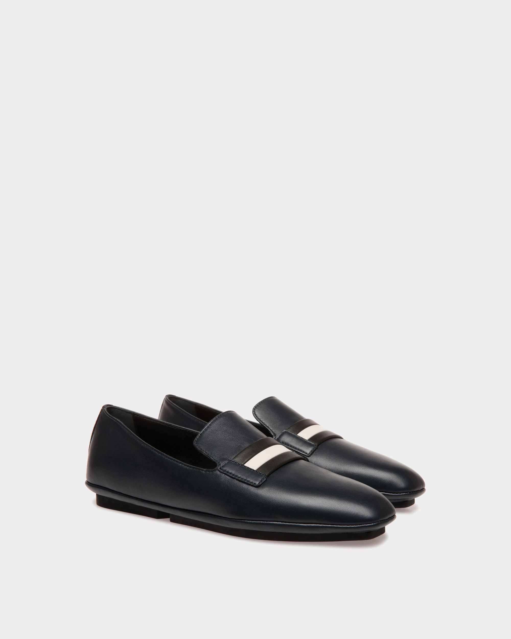 These slippers are made from supple leather. They are detailed with a Bally ribbon saddle strap