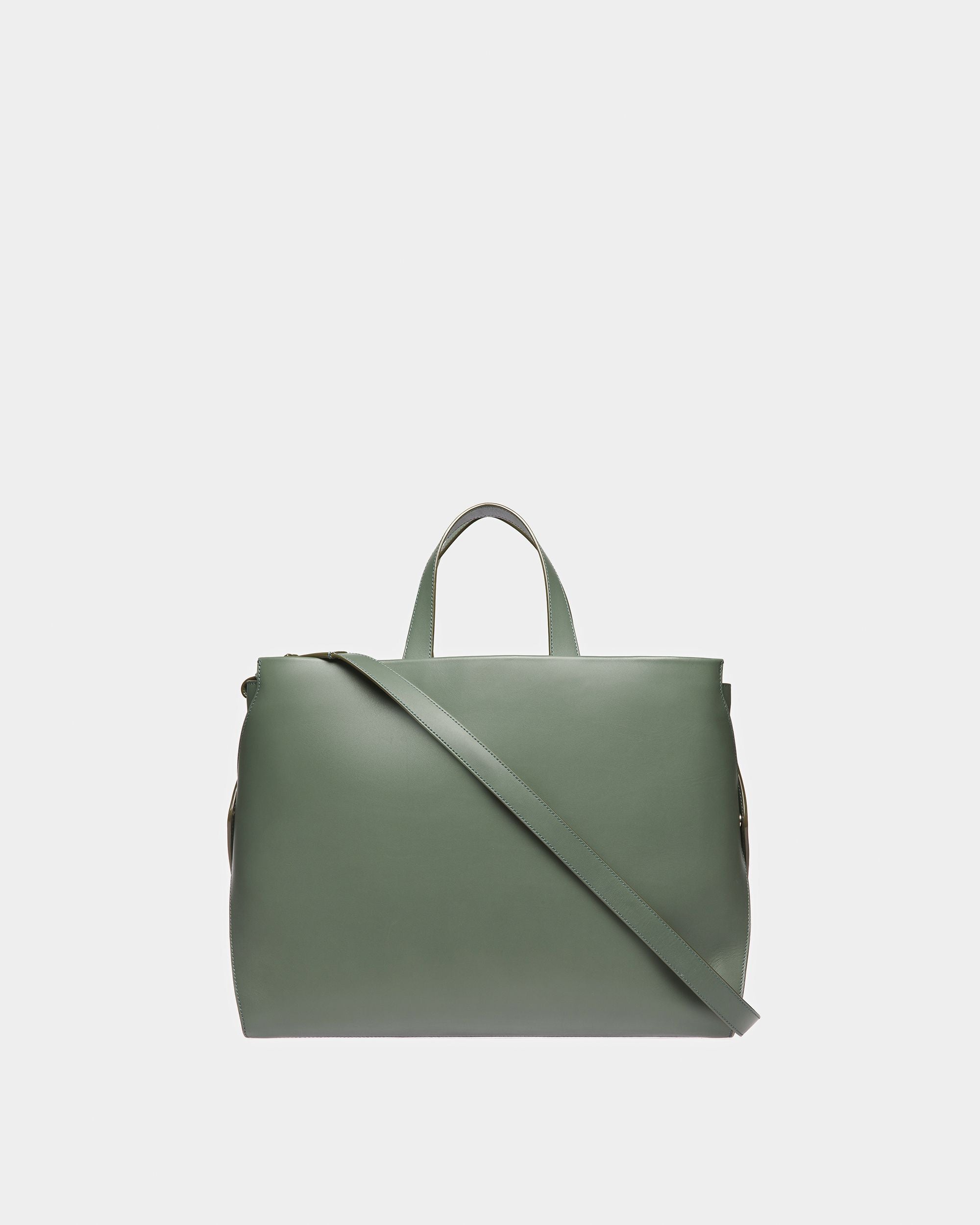 A cool sage tone updates a classic leather tote form, resulting in the Arbona.