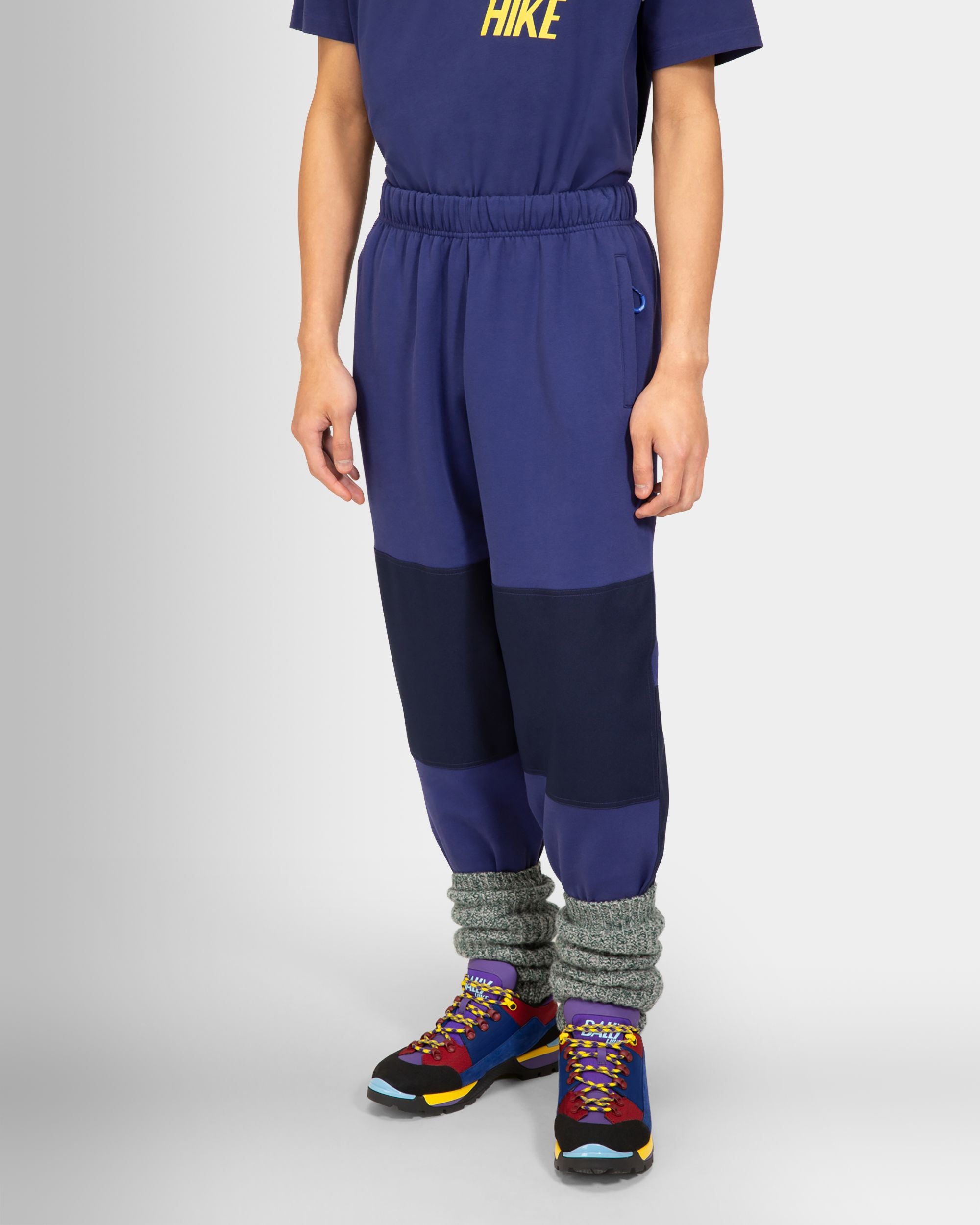 Made in collaboration with renowned fashion editor and stylist Robert Rabensteiner, the technically-inspired designs in the Bally Hike collection honor our alpine heritage. Bally Hike 12 tracksuit pants take a '90s sporting aesthetic in purple organic cotton with contrast color finishes, side zipped pockets, internal drawstring fastenings at the waist, a rear patch pocket, and panel finishing at the knees.