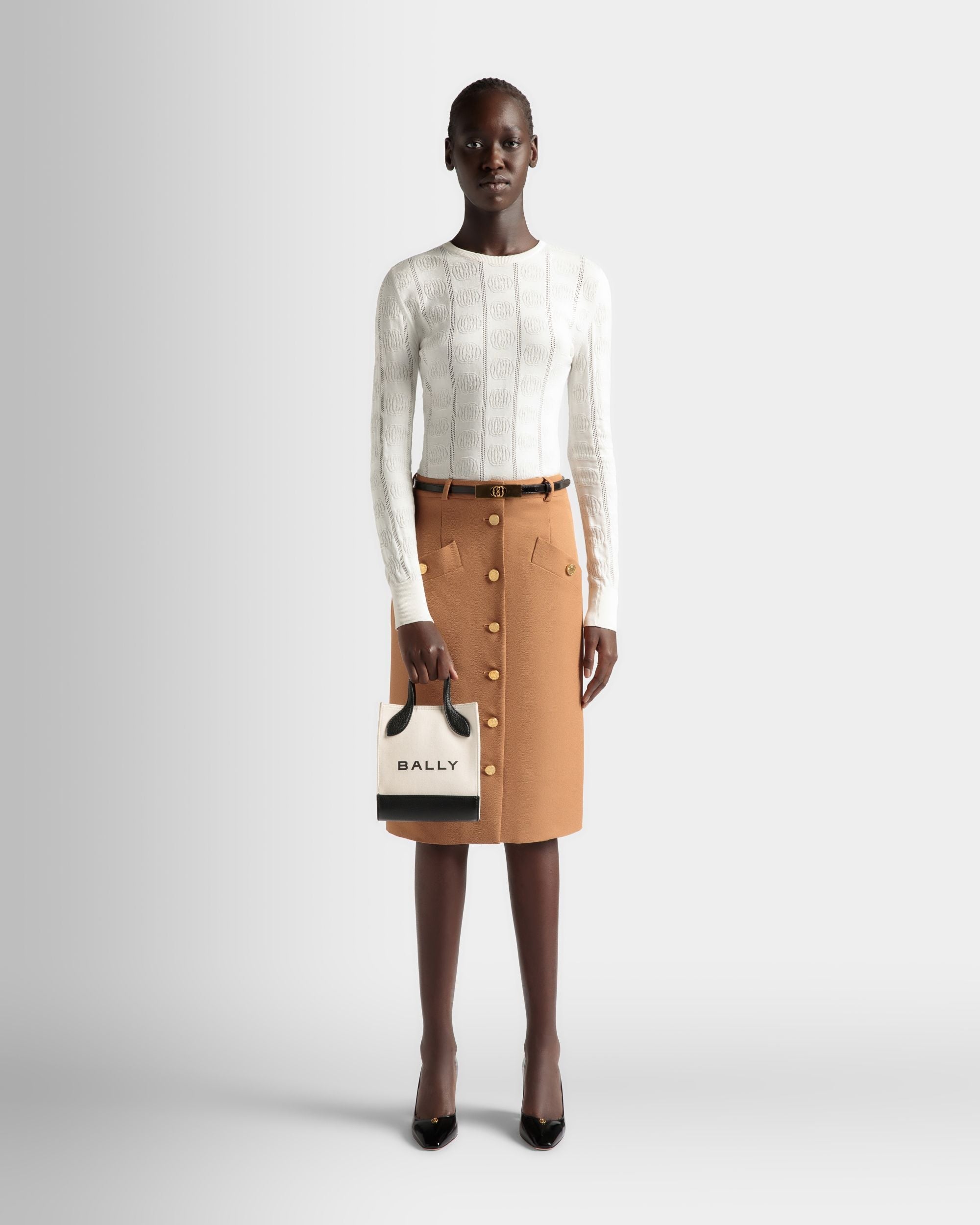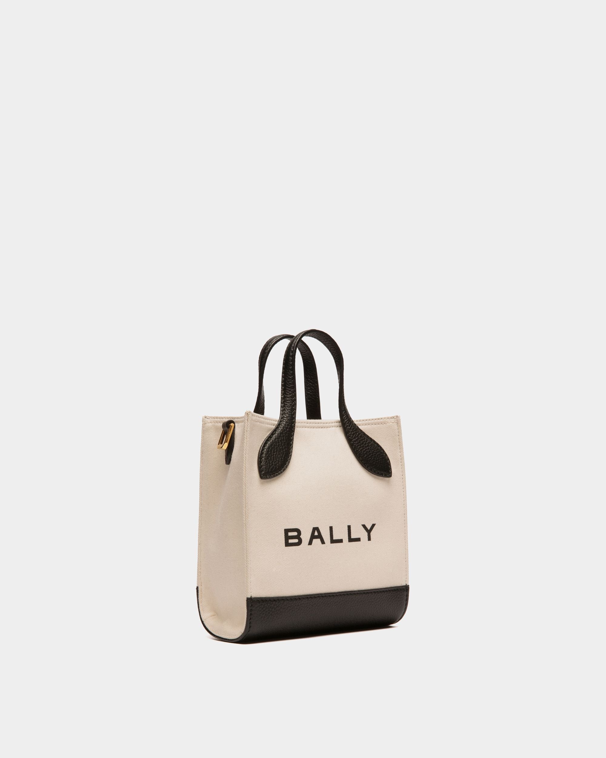 Bar Mini Tote Bag in Neutral And Black Canvas And Leather