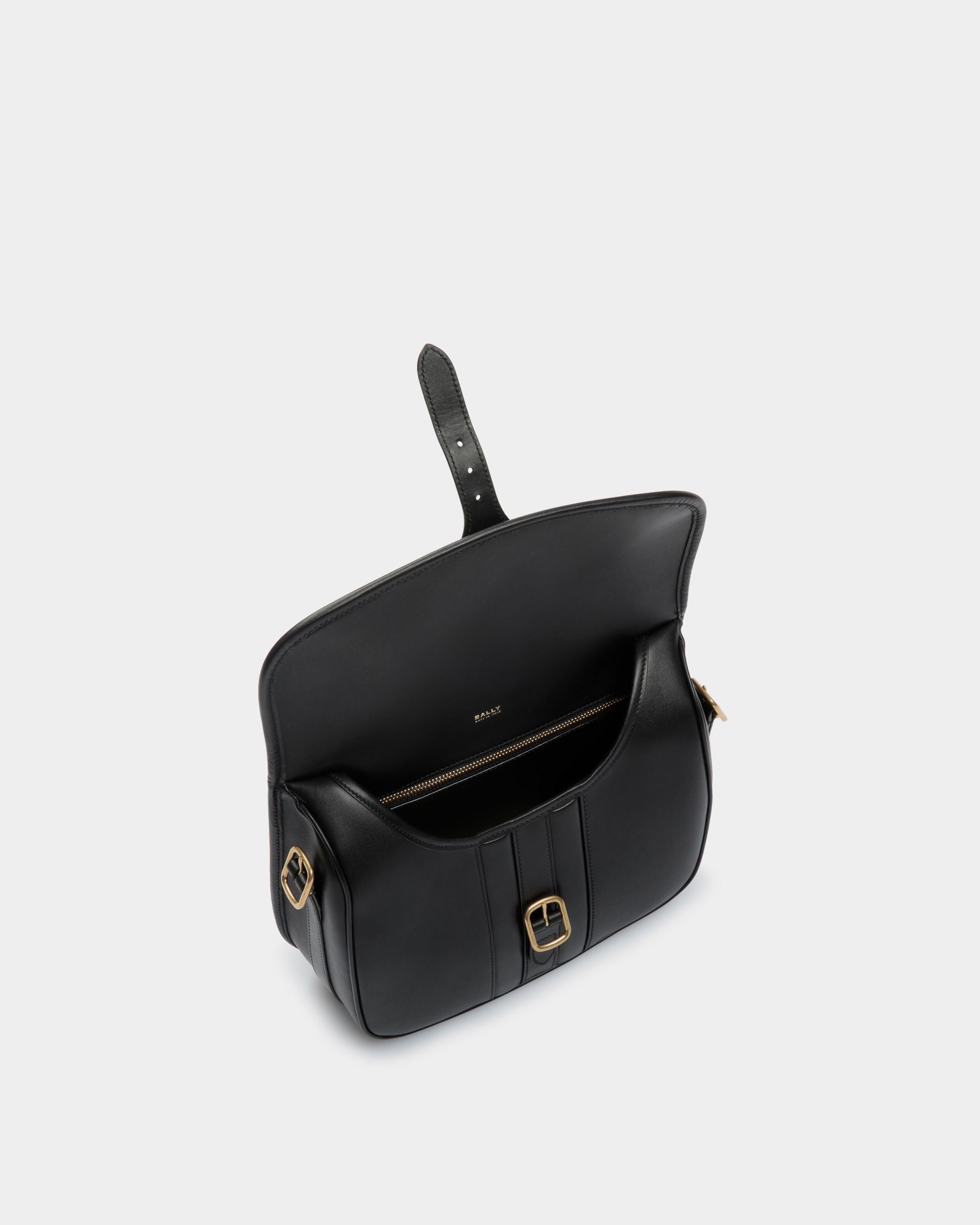 Presented during the Bally SS24 fashion show, the black calfskin Beckett messenger bag is casual and easy-to-style, inspired by vintage lines yet designed for modern lifestyles. The adjustable and removable shoulder strap allows for various carry options, from cross-body to over-the-shoulder. The Bally Ribbon and the gold-tone Bally Crest signifiers add a finishing touch, referencing the heritage of the brand.