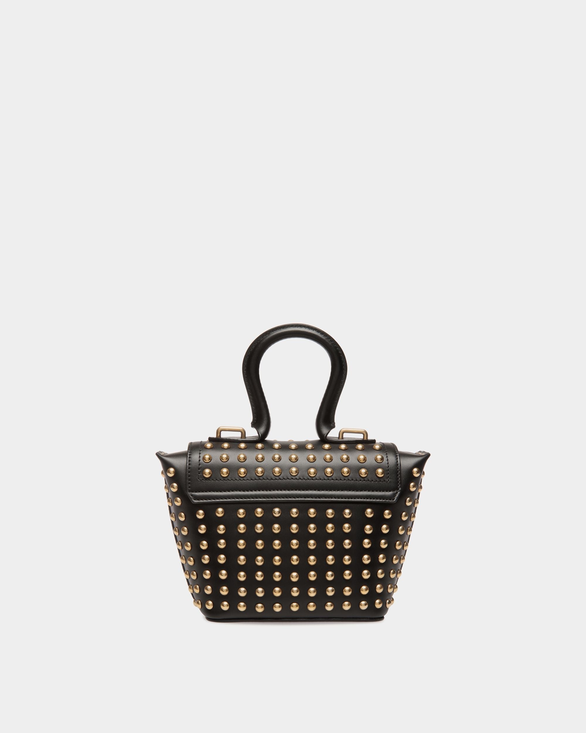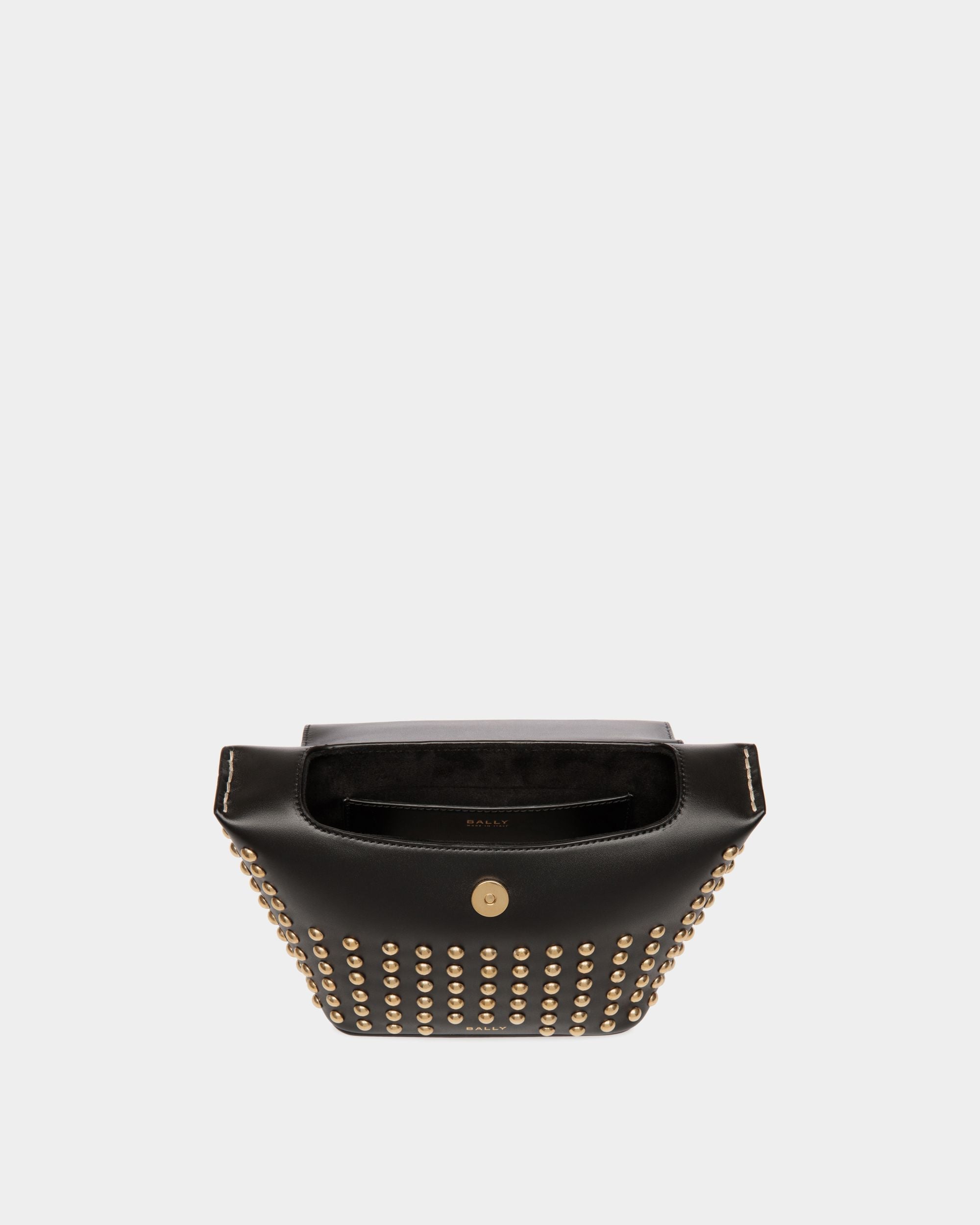 With a silhouette inspired by the traditional cowbells that echo in the Swiss Alps, this black leather Belle mini bag is covered in gold-tone round studs. The top handle and detachable shoulder strap ensure a range of carry options.