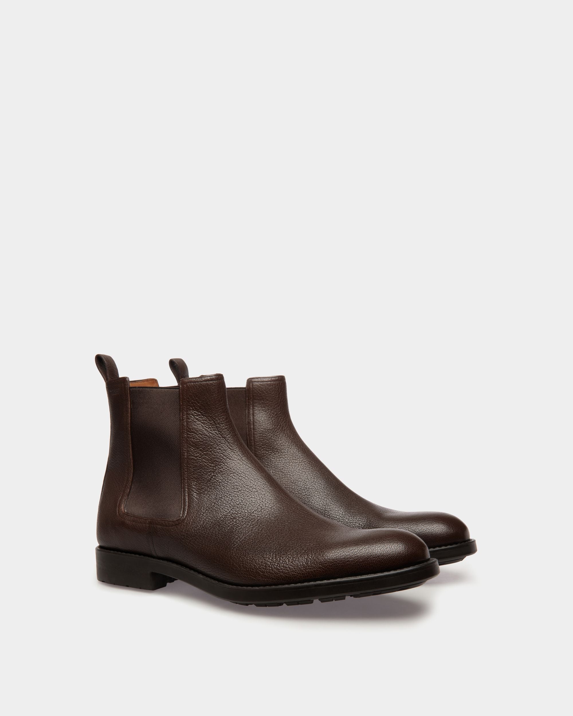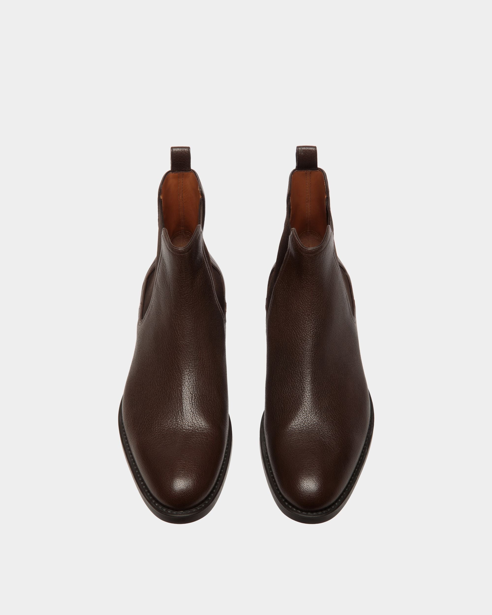 These Chelsea boots are made from grained leather. They feature the classic elasticated side panels and a pull tab at the back.