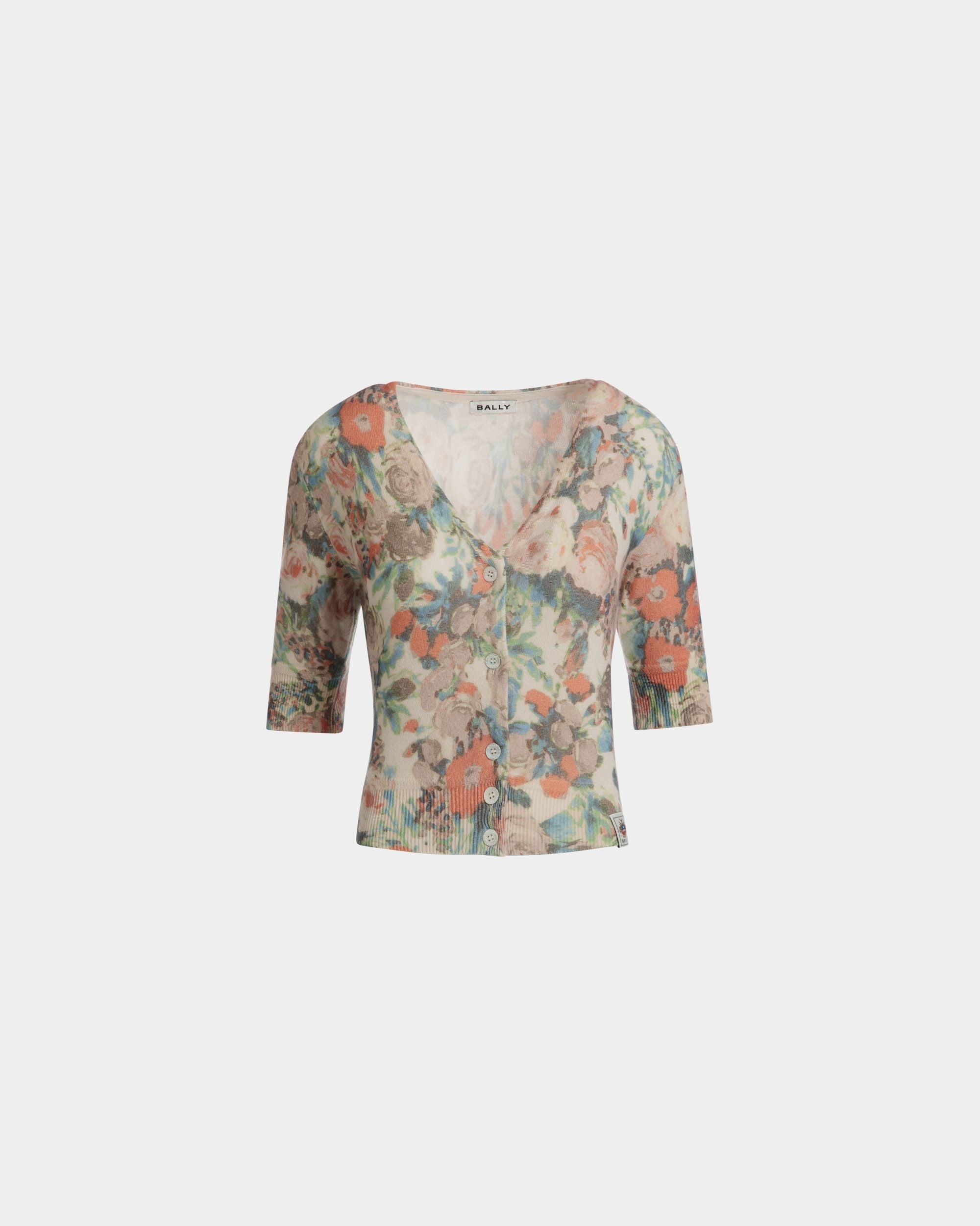 Cardigan with a Rosengarten Print in Multicolor Cashmere