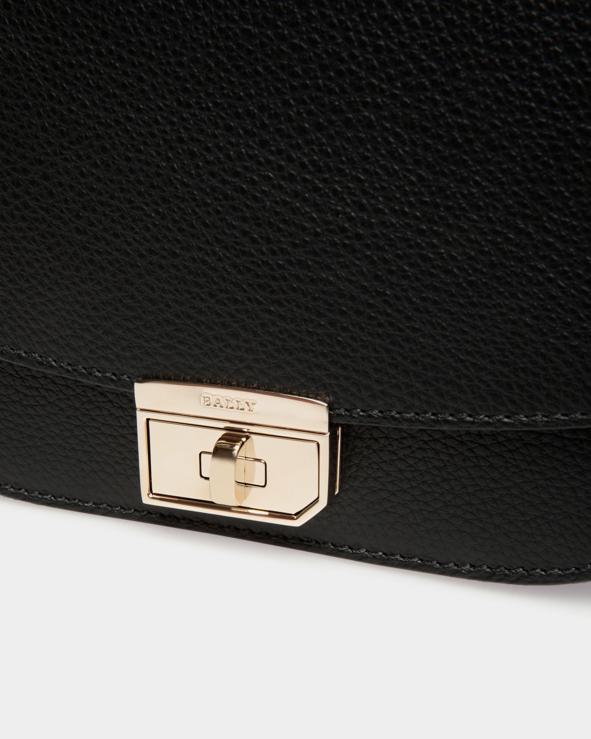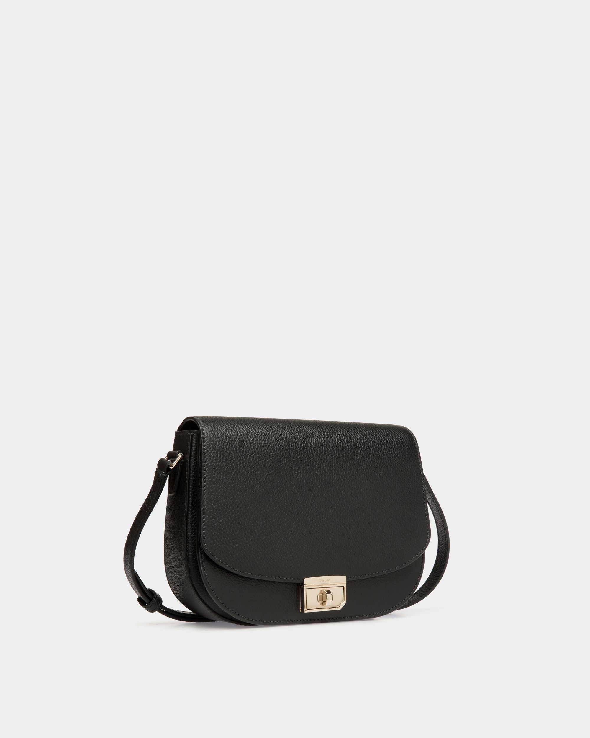This cross-body bag is made from textured embossed leather. It has a flap closure that opens to two compartments and a zipped pocket.