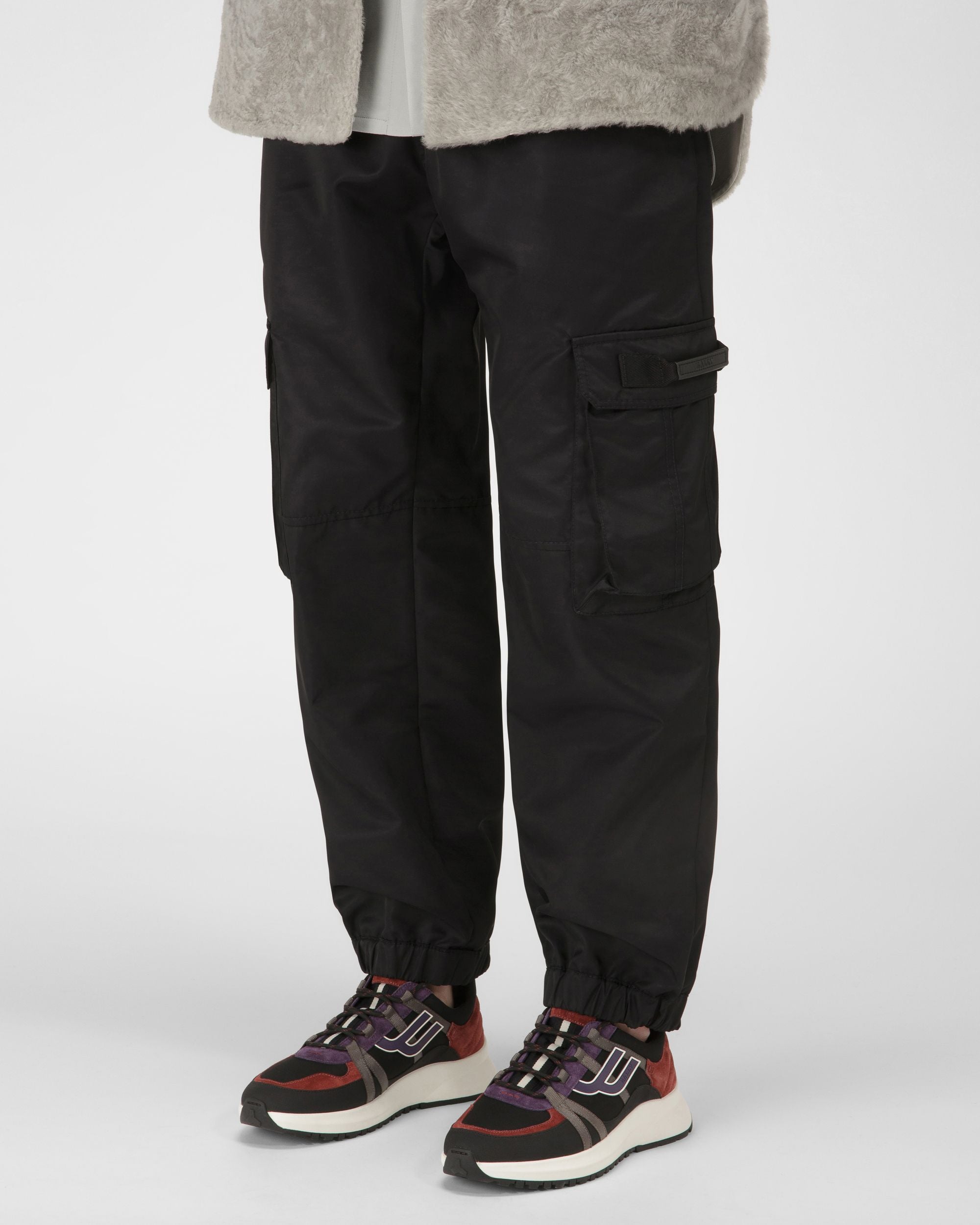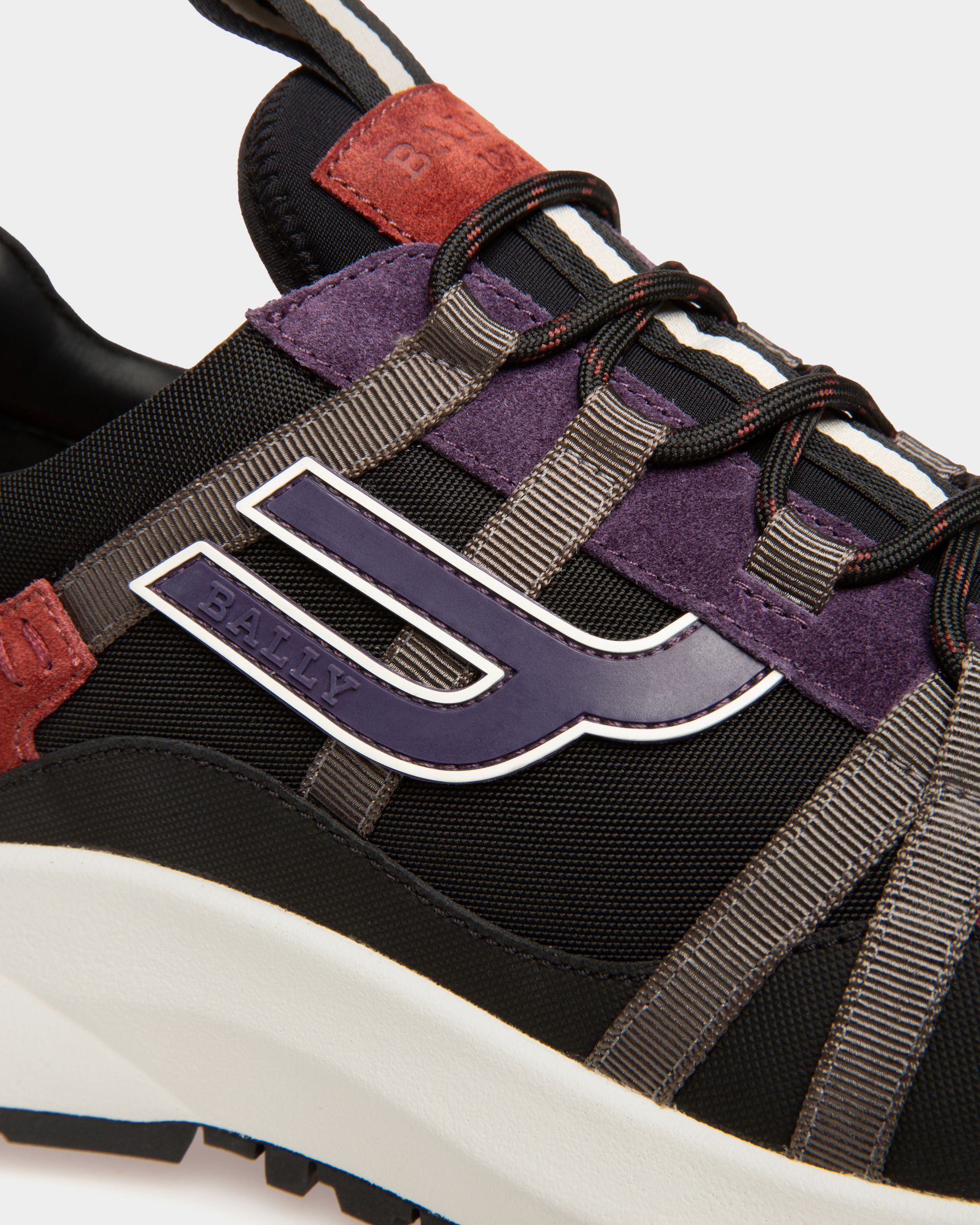 A new addition to the Outline theme, the Damon sneaker offers a mixed media variation on an everyday shoe. Assembled from fabric and suede-finish leather in black and Heritage Red, it features a contrasting Bally Wing in purple at the side. A rubber sole and technical outsole speak to Bally’s running inspiration.