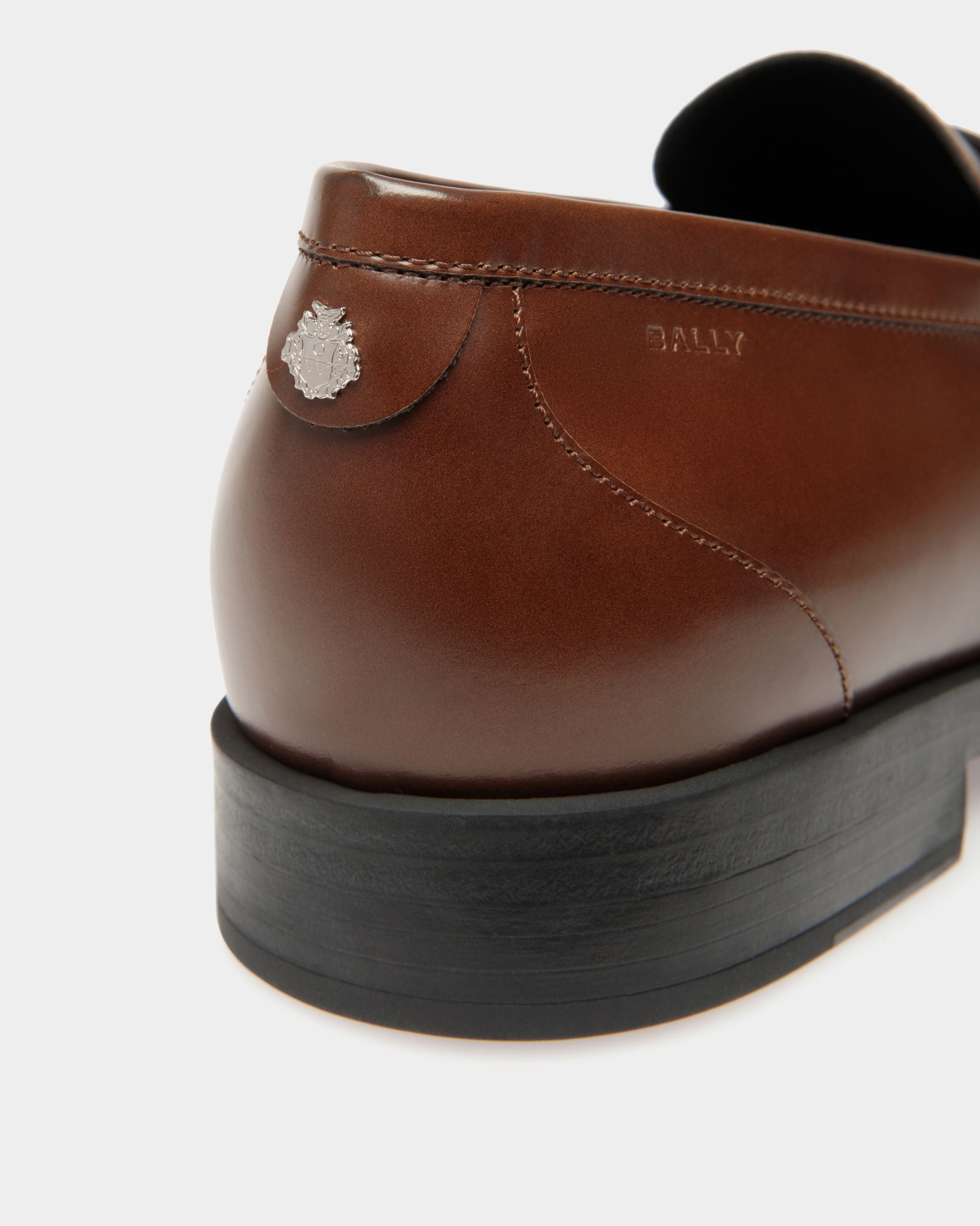 Clean, almost scholastic lines distinguish the Egli loafer in smooth calfskin with a block heel. A metal Bally Crest and a debossed logo at the heel add recognizable signifiers to this elegant footwear option.