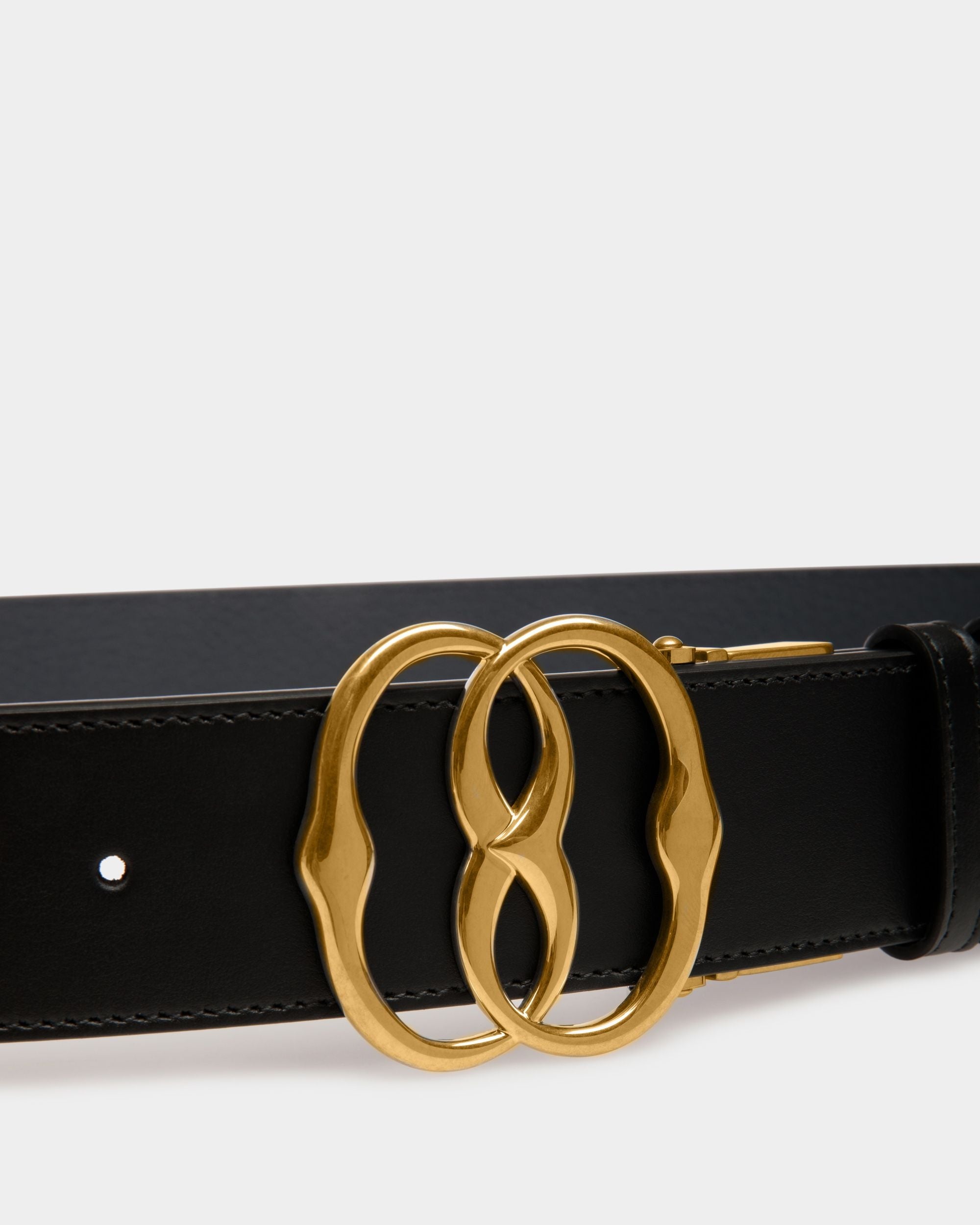 This 35 mm adjustable and reversible belt in smooth and grained black leather is secured at the front by an iconic Bally Emblem buckle in gold-tone metal.