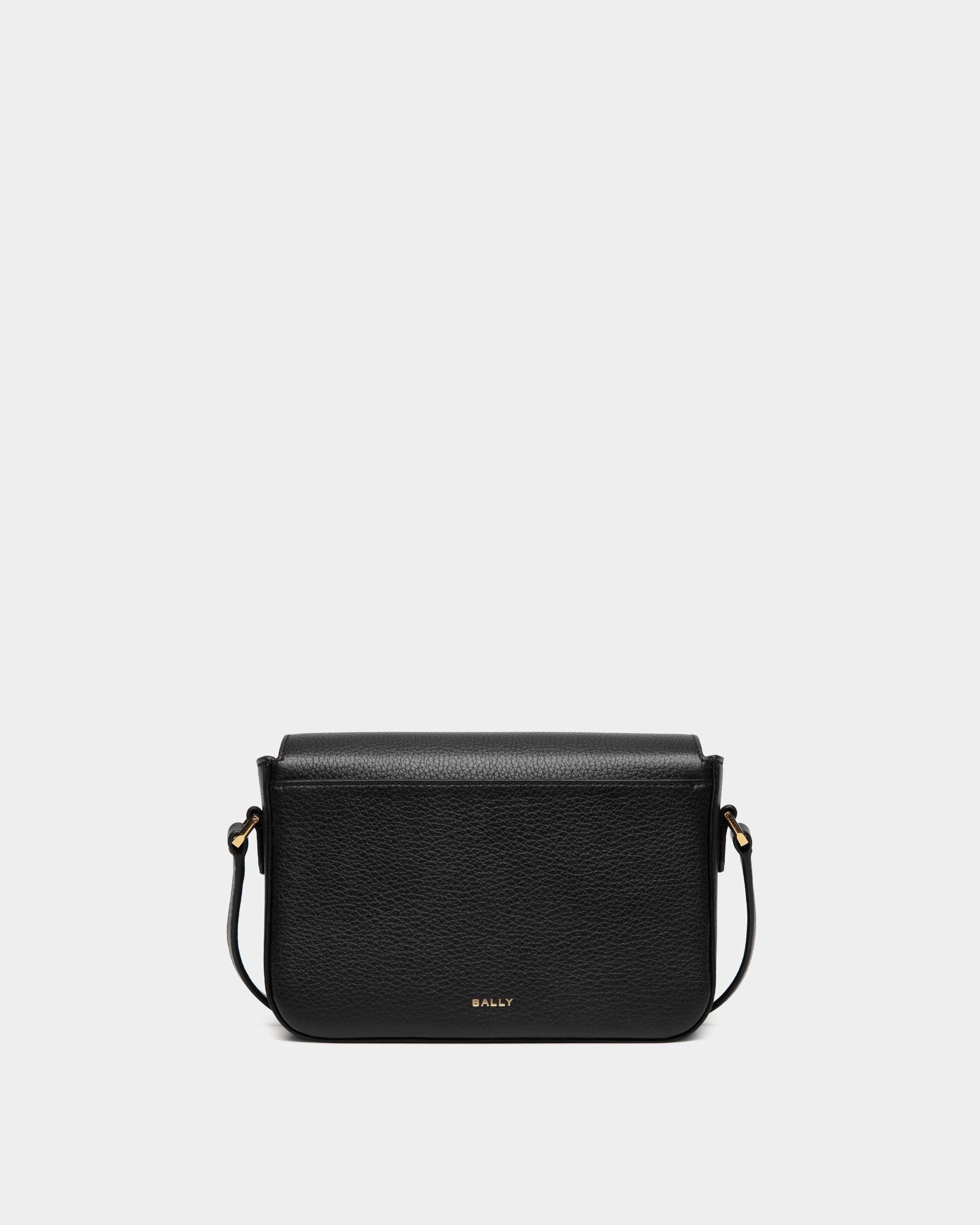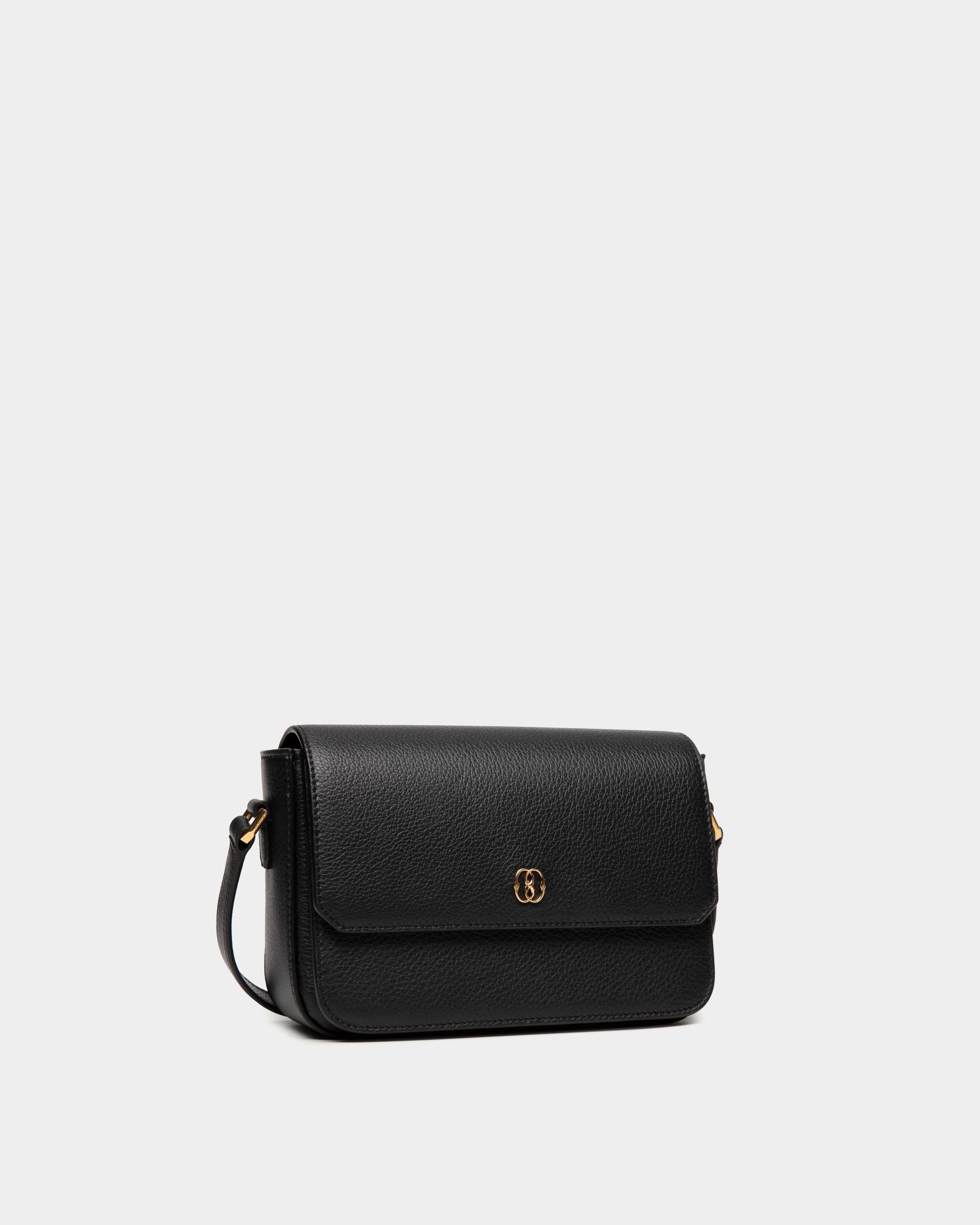 Chic and contemporary, the Emblem small crossbody bag in black grained calfskin has been meticulously crafted into an essential, versatile silhouette. A gold-tone Bally Emblem brings a delicate signifier to the top flap, which closes the main and secondary compartments.