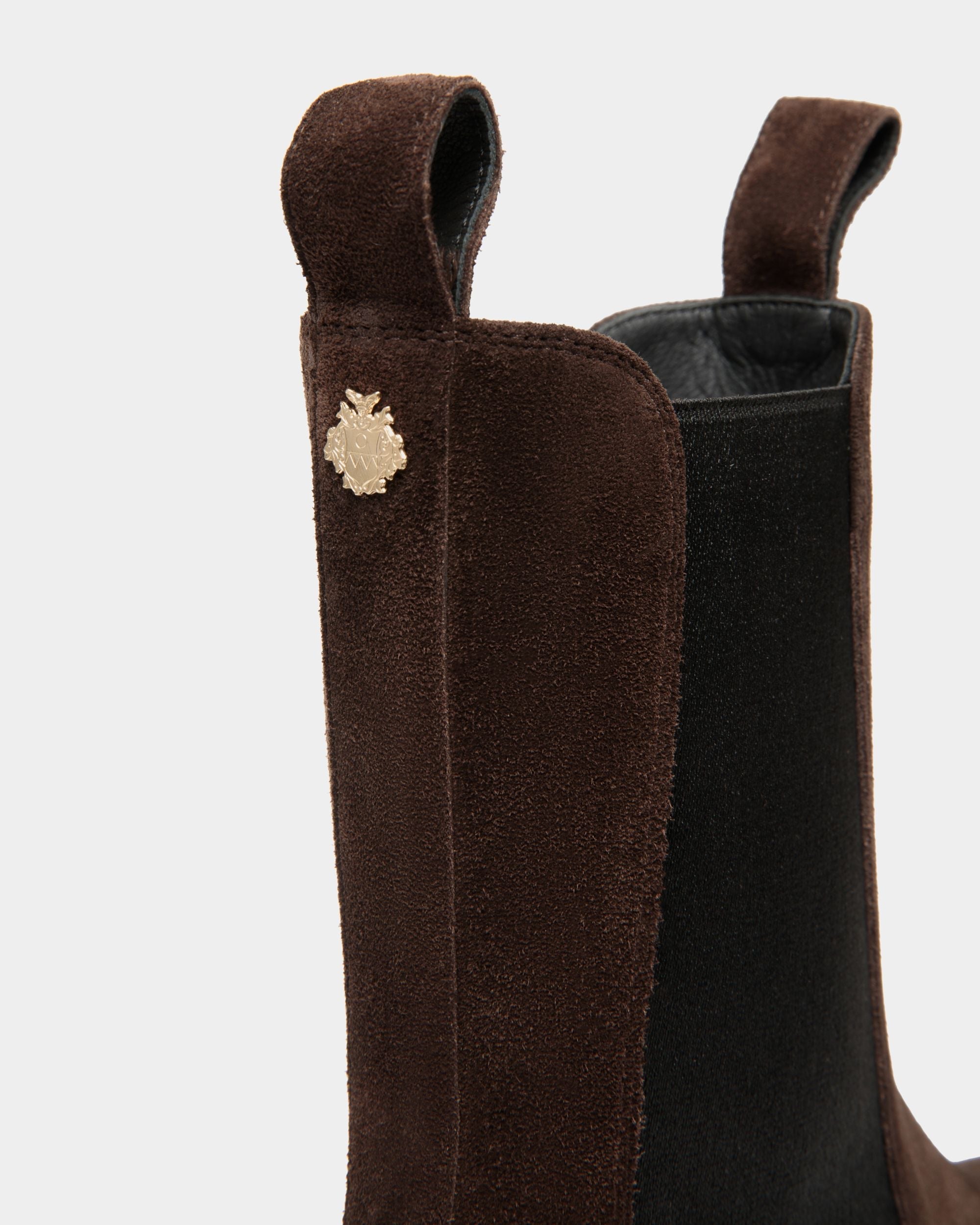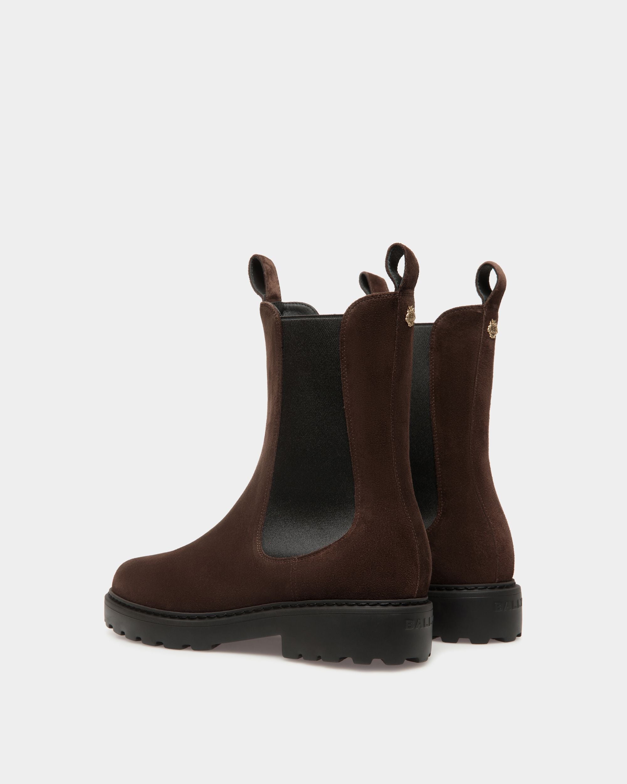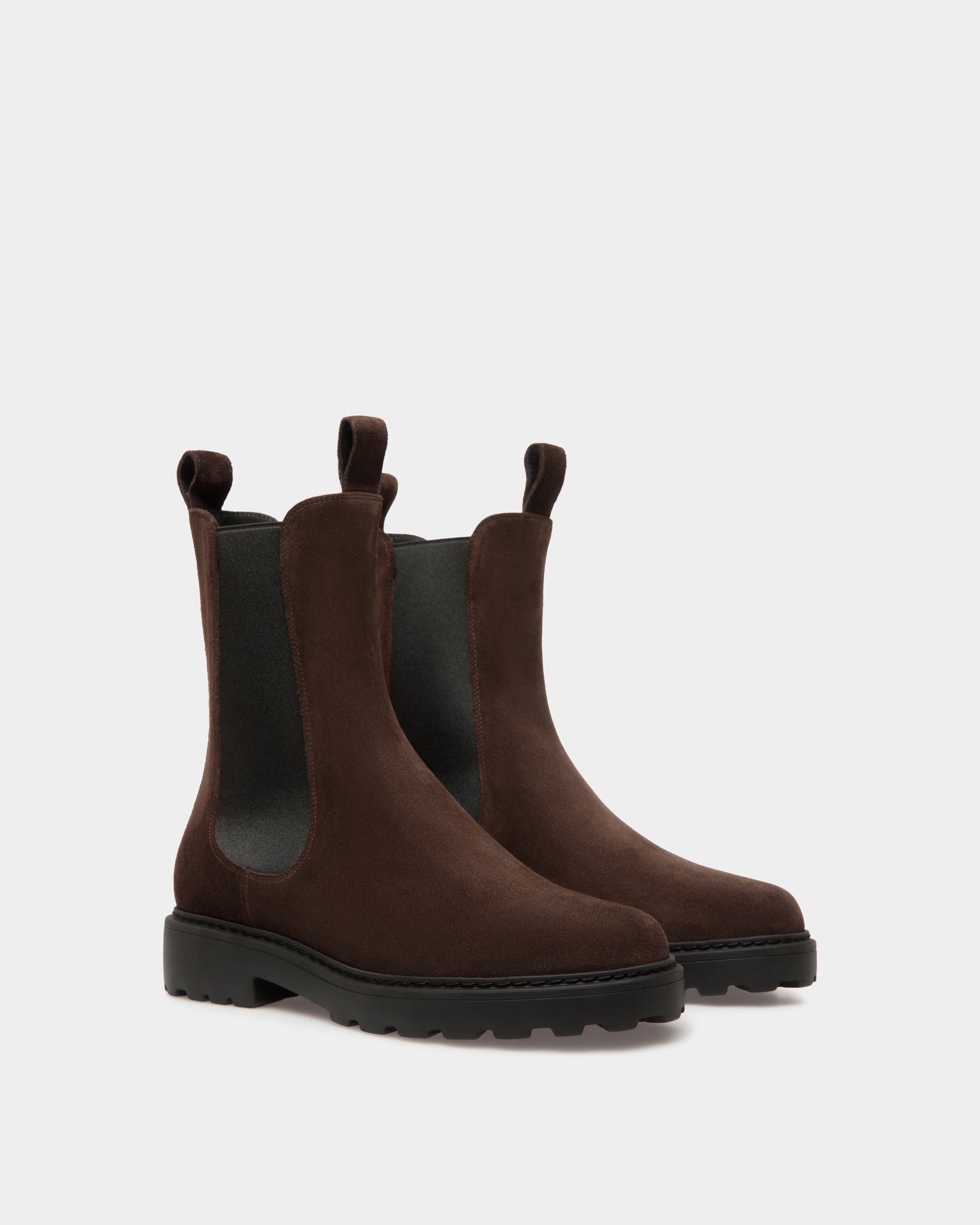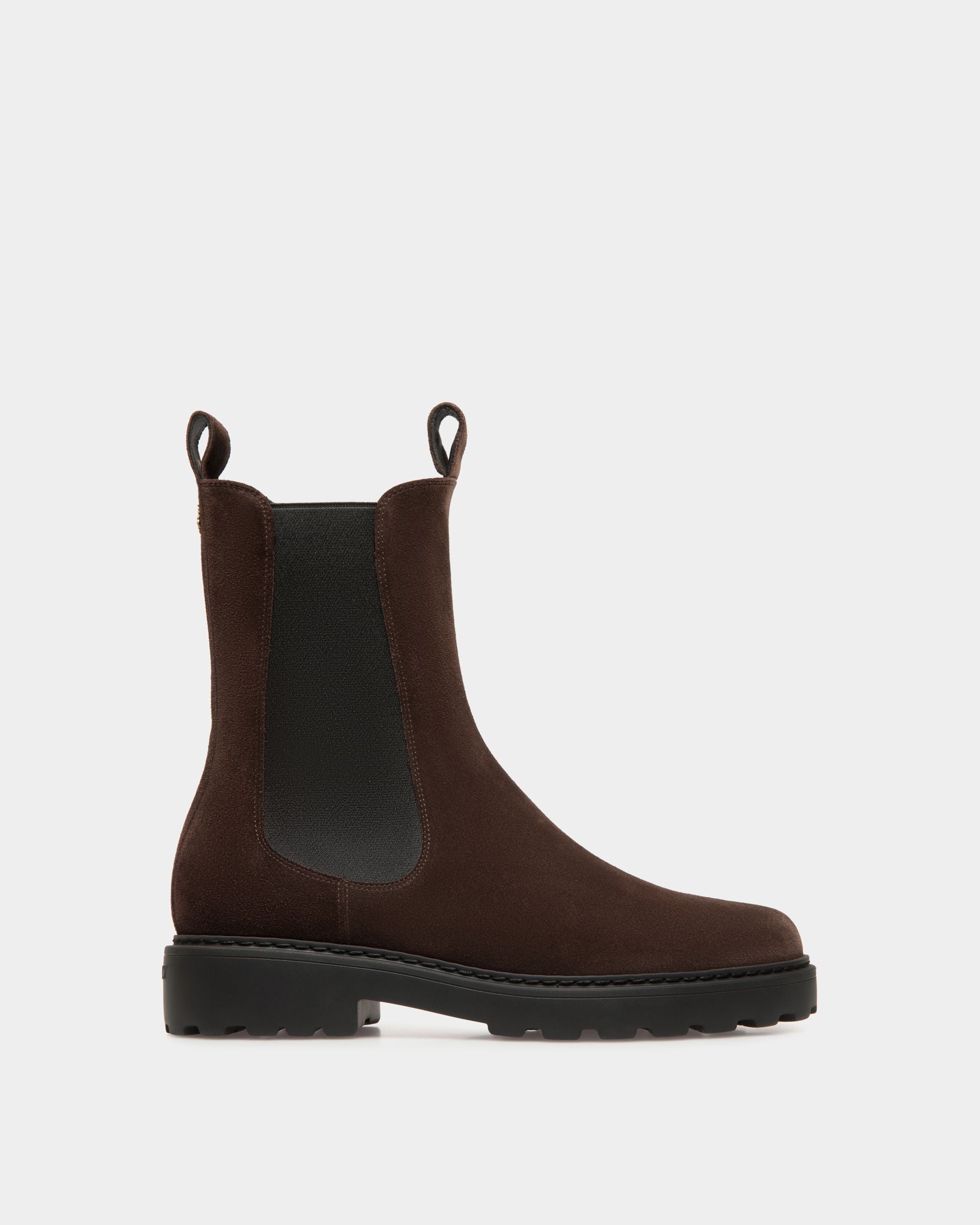 A classic footwear silhouette is combined with essential Bally style in this Gusto bootie in Ebano suede with a chunky EVA sole. A utilitarian spirit and a hint of vintage allure have been united, giving rise to this versatile option.