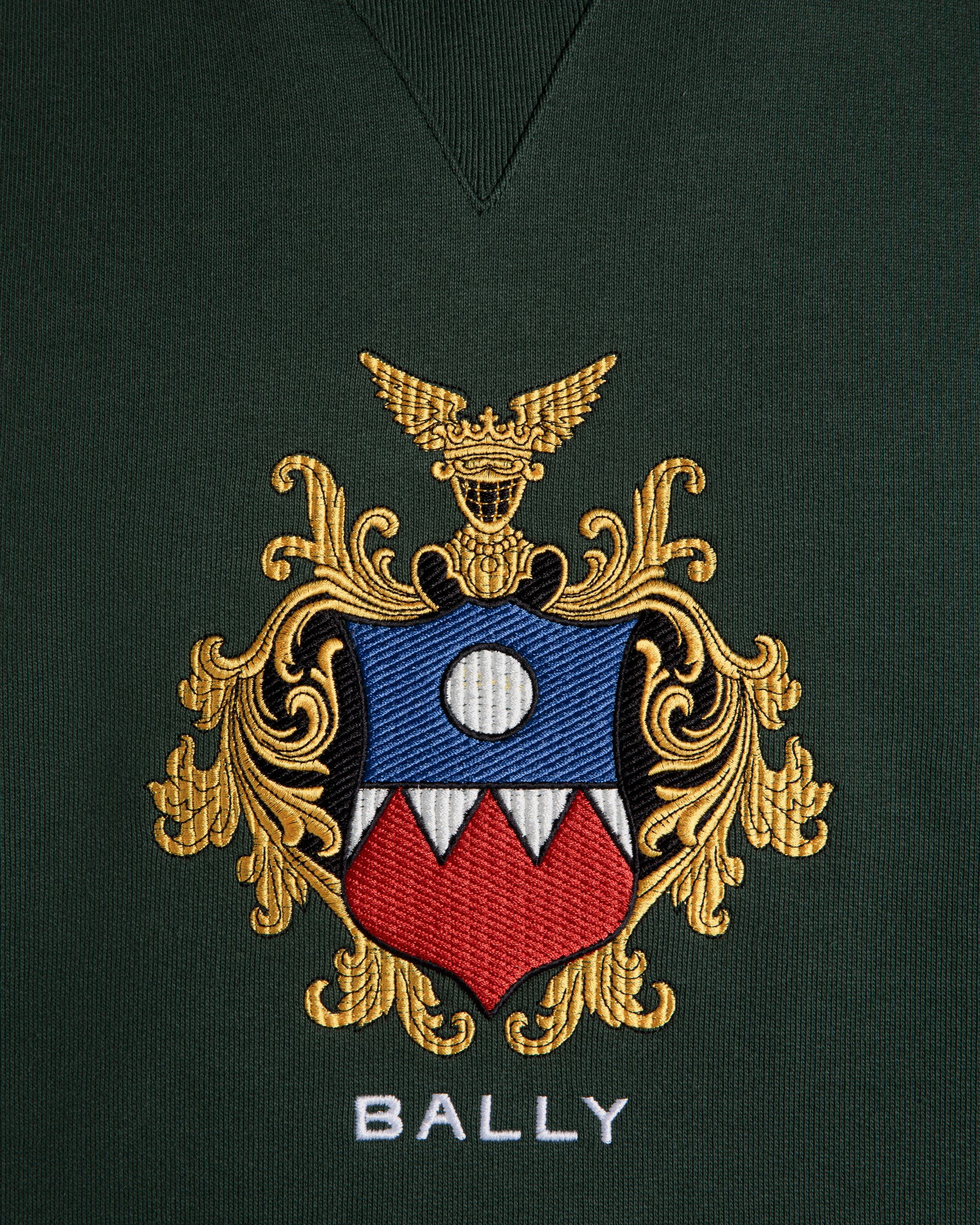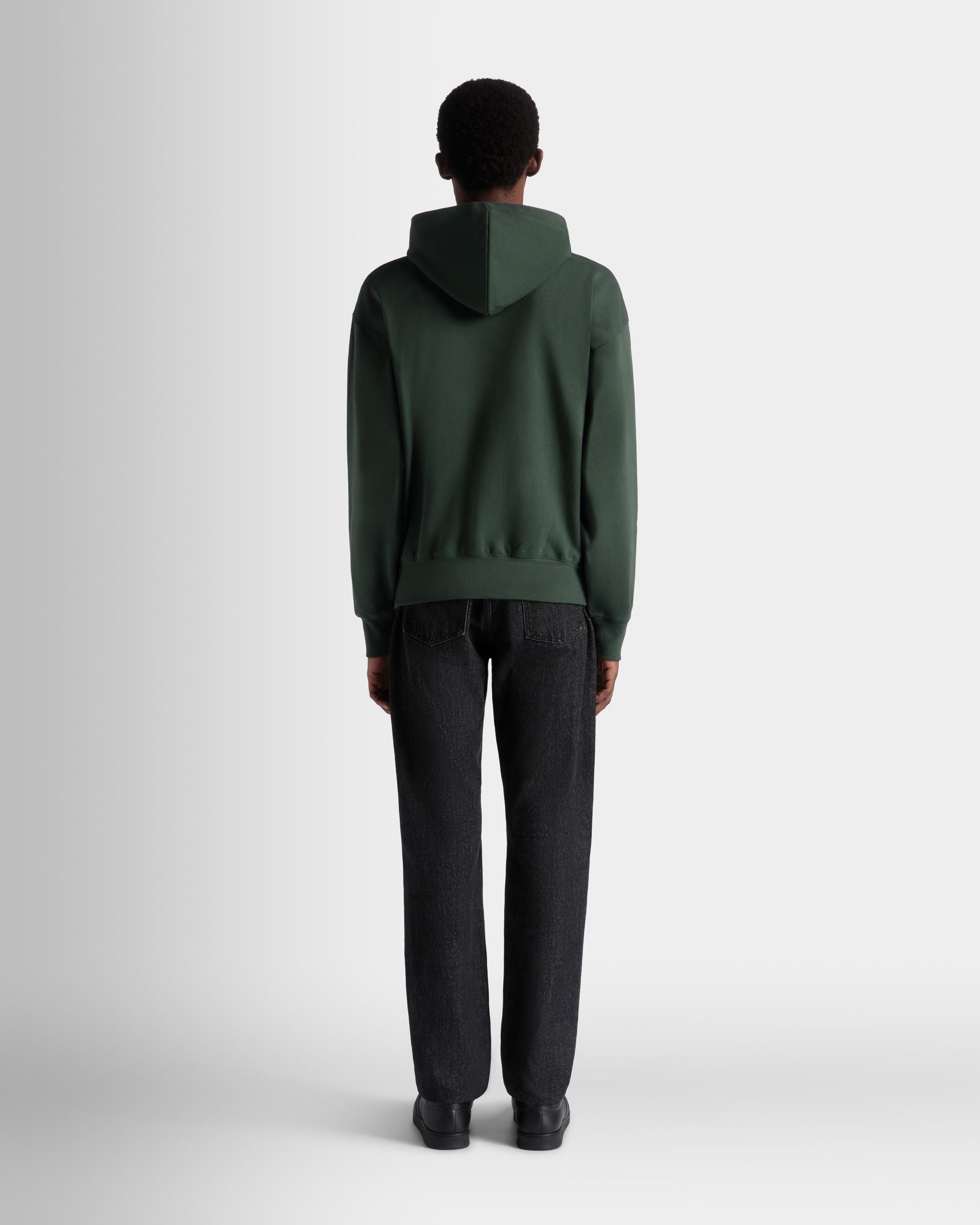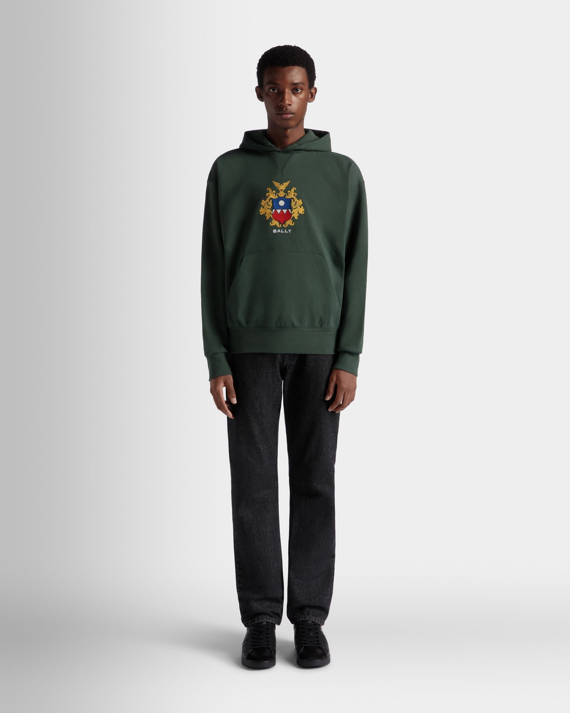This bottle green hoodie in supple knit cotton features a large embroidered Bally Crest and a pouch pocket placed at the front.