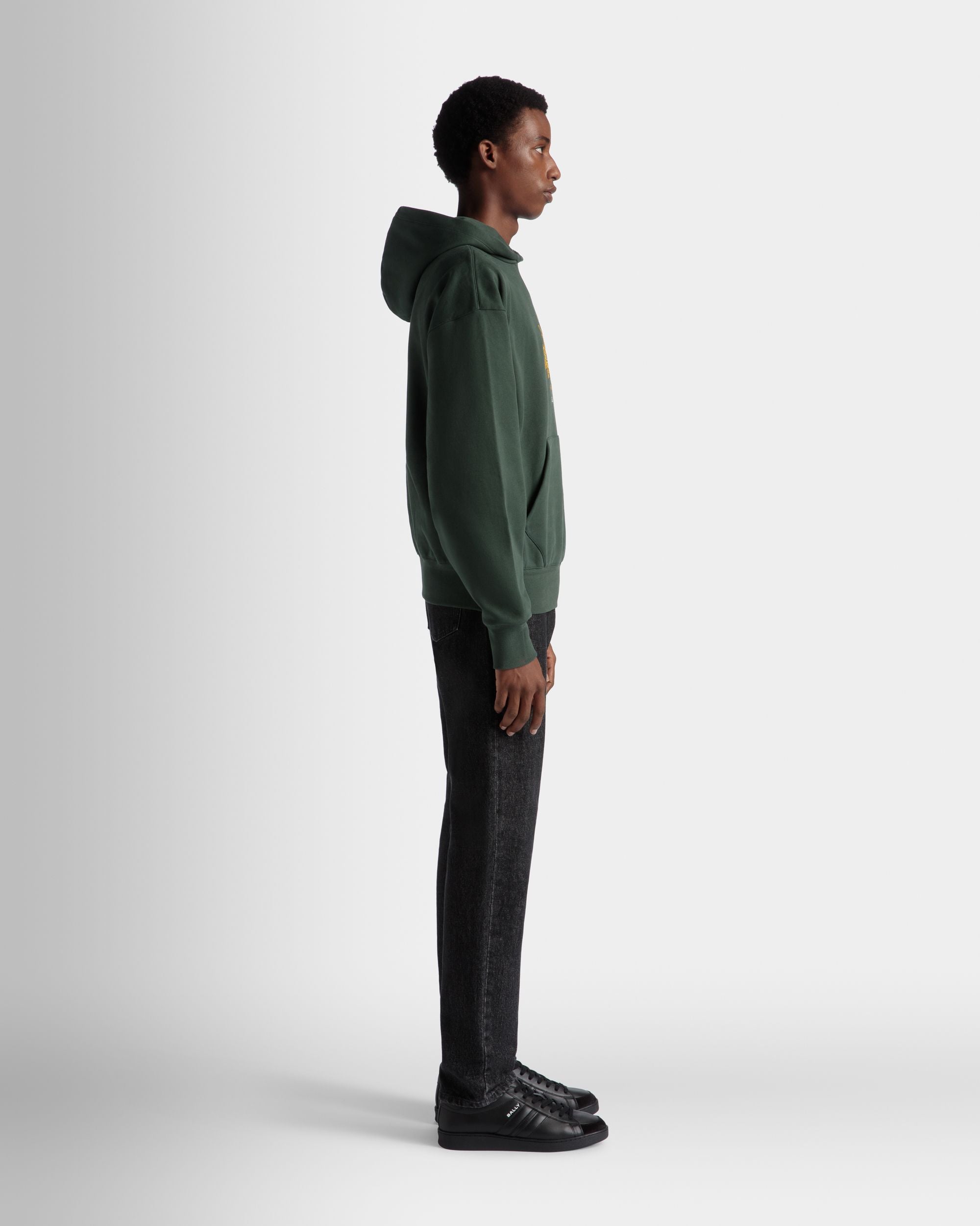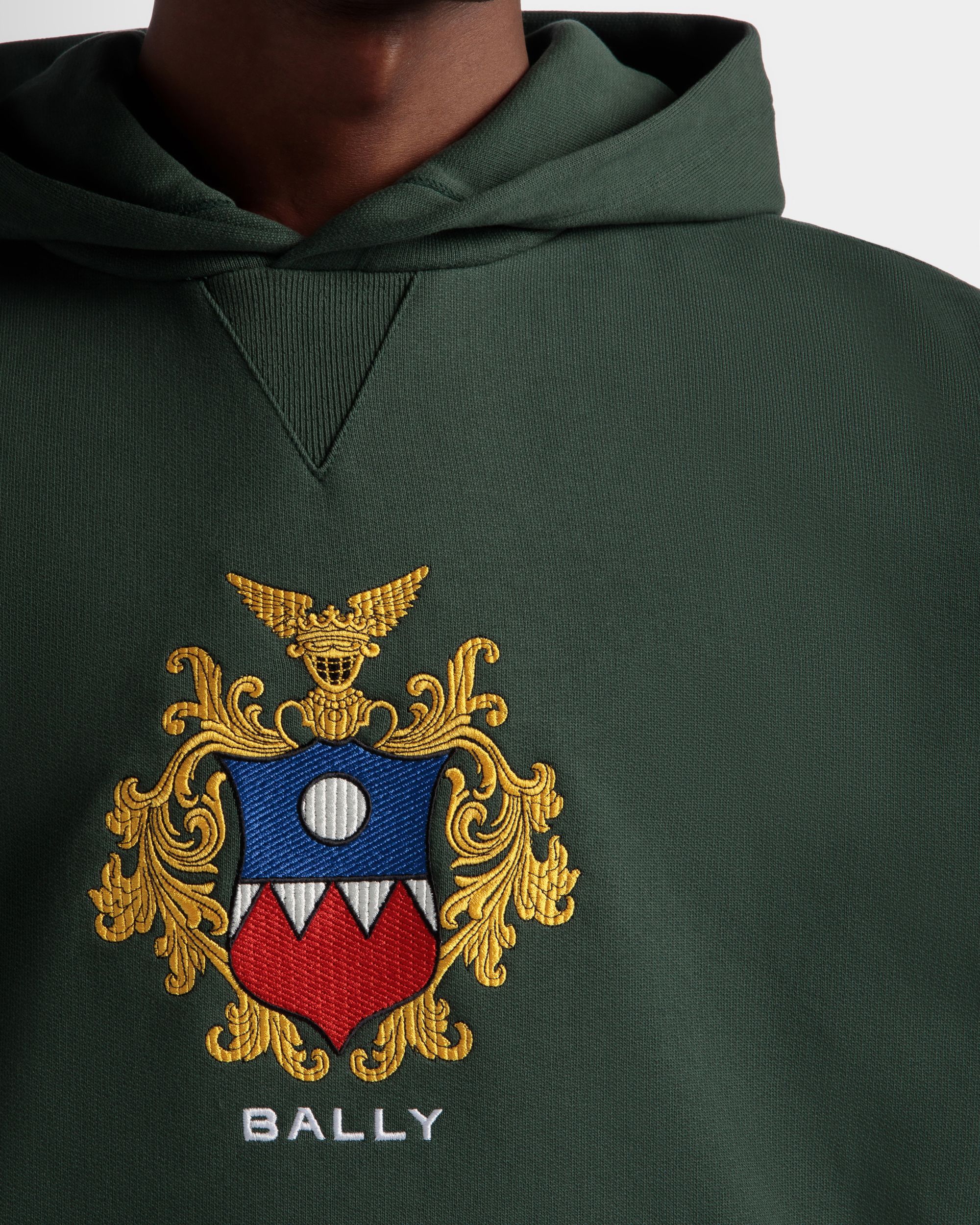 Hoodie With Bally Crest Logo In Bottle Green Cotton