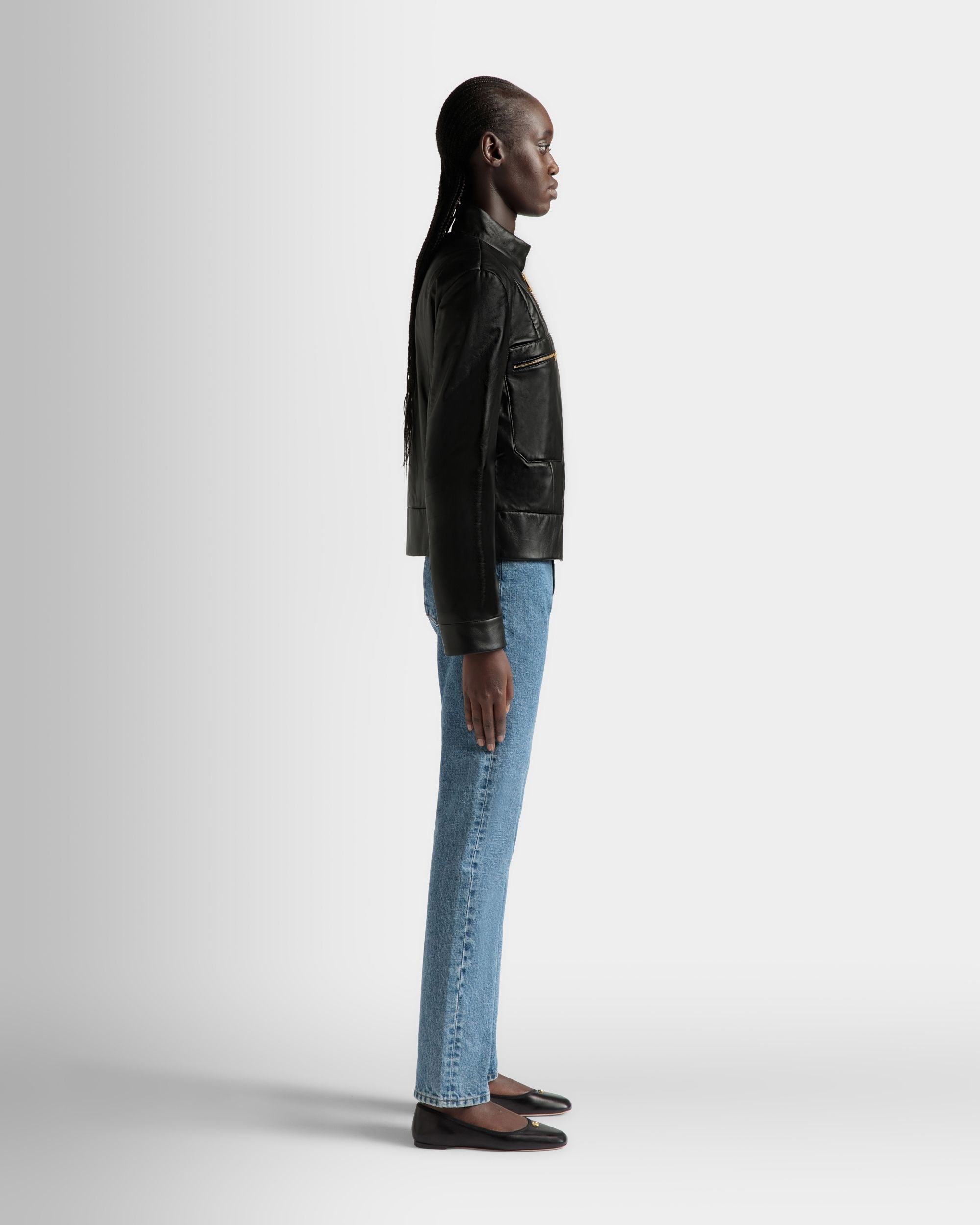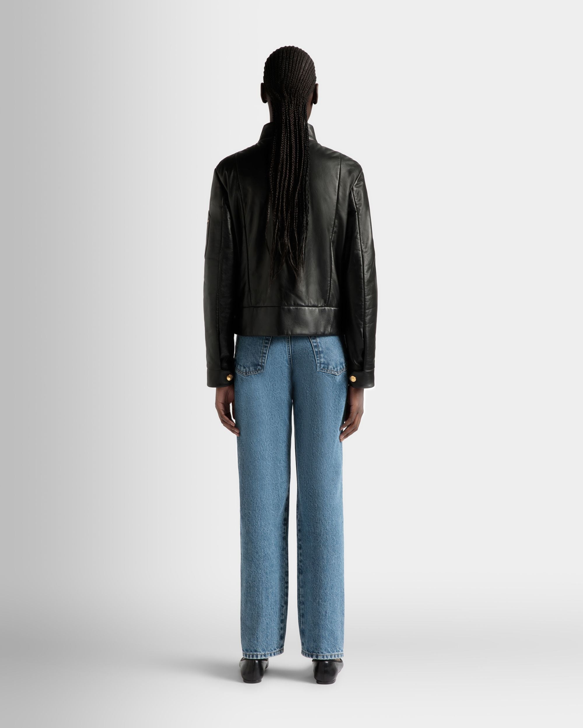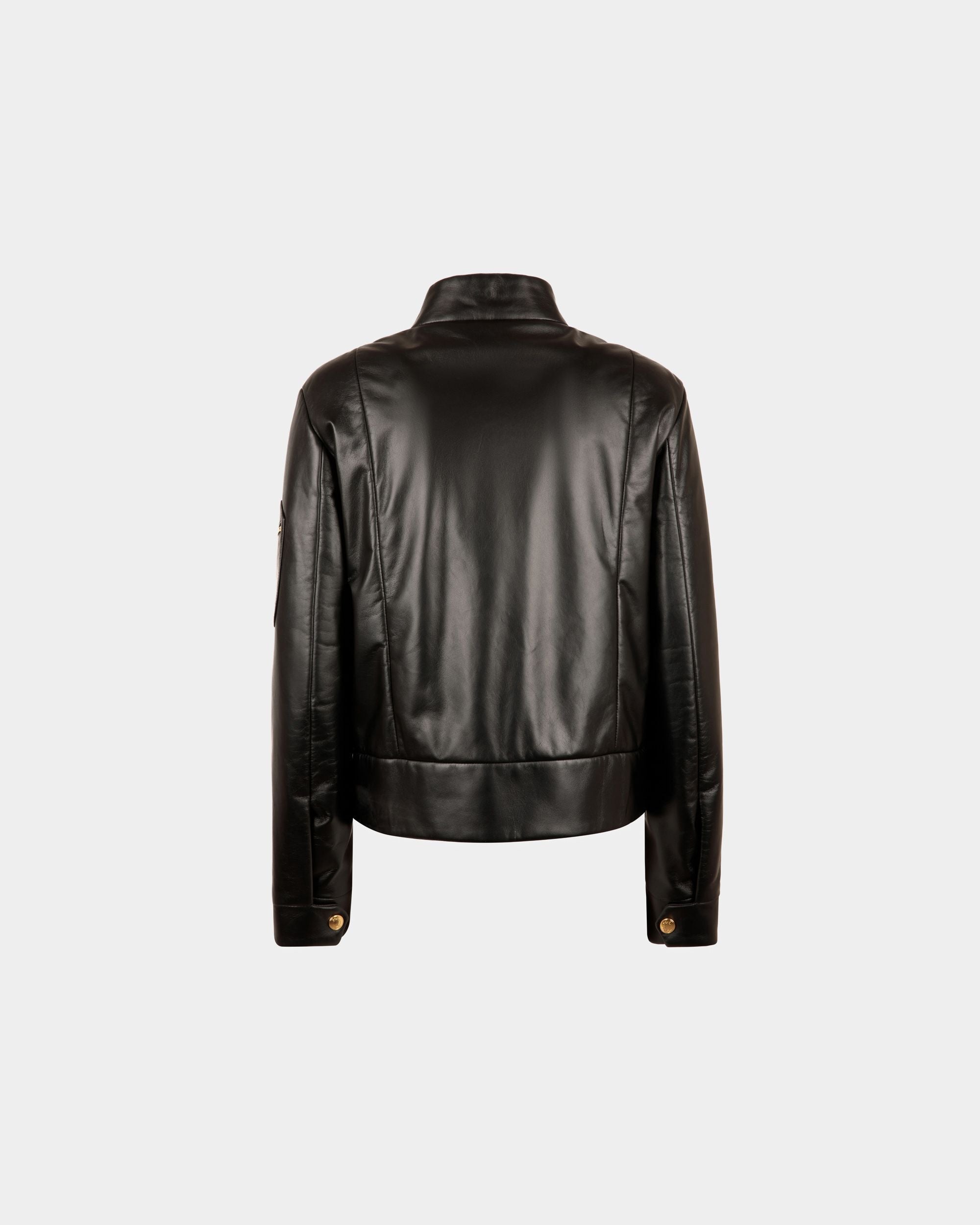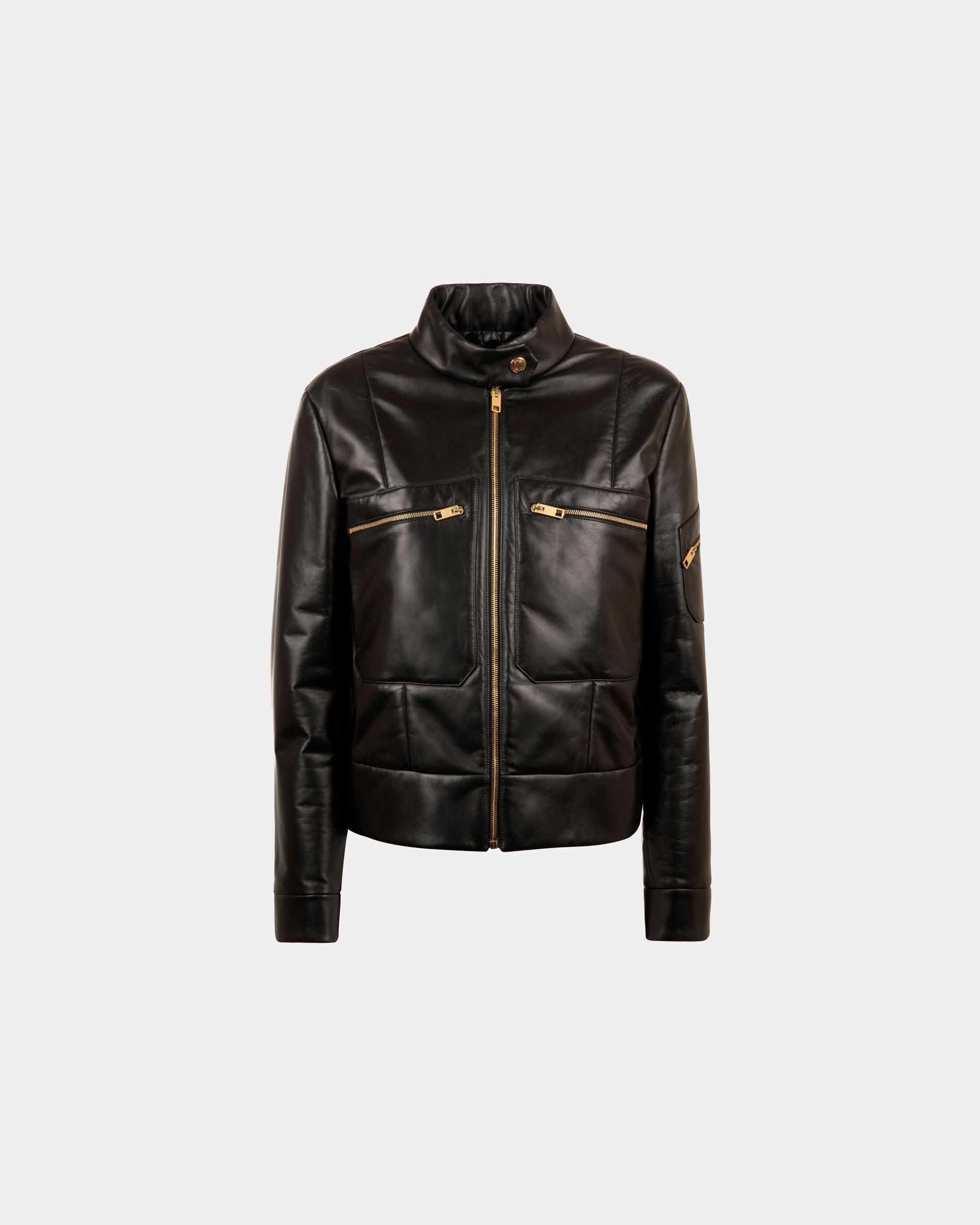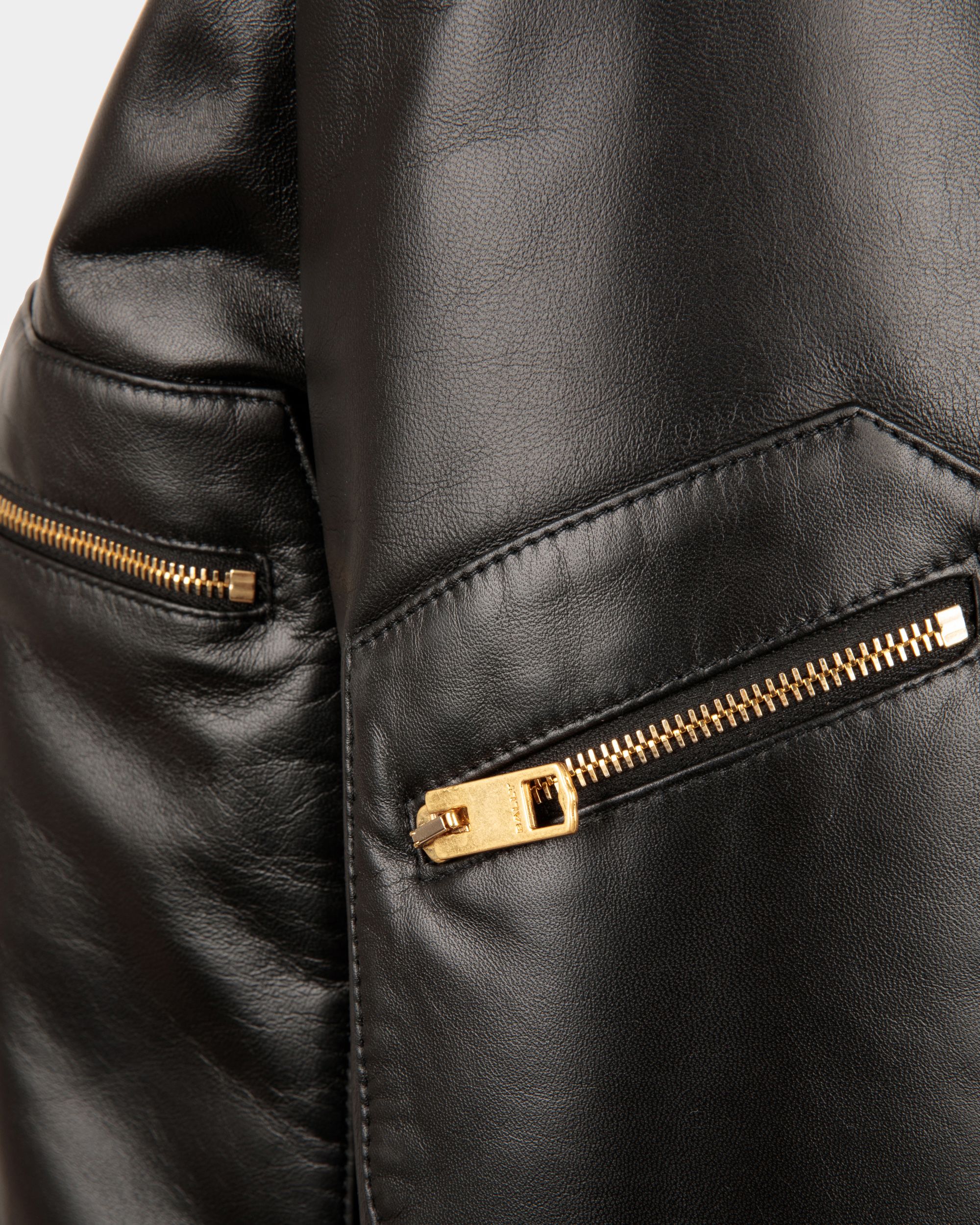 This black leather jacket is constructed in smooth, high-quality lambskin panels, ensuring its unique appeal. The classic silhouette is elevated with meticulous attention to detail, making it a must-have addition to any fashion-forward wardrobe.