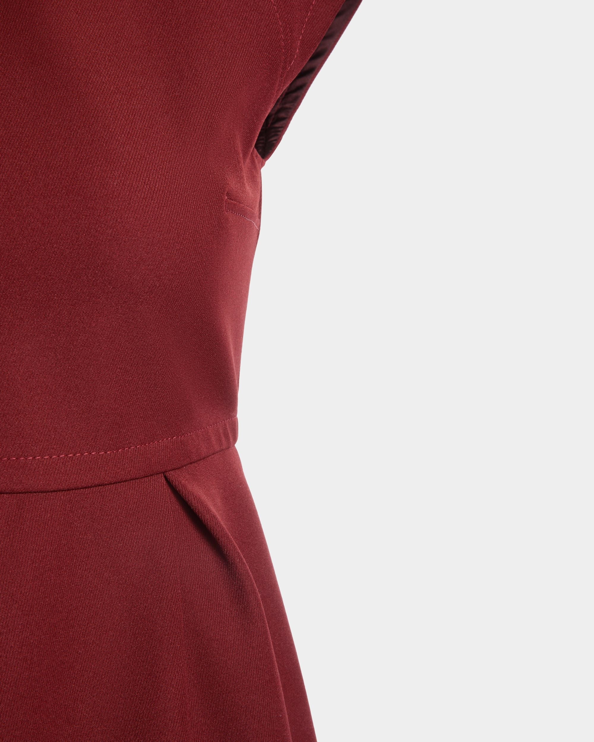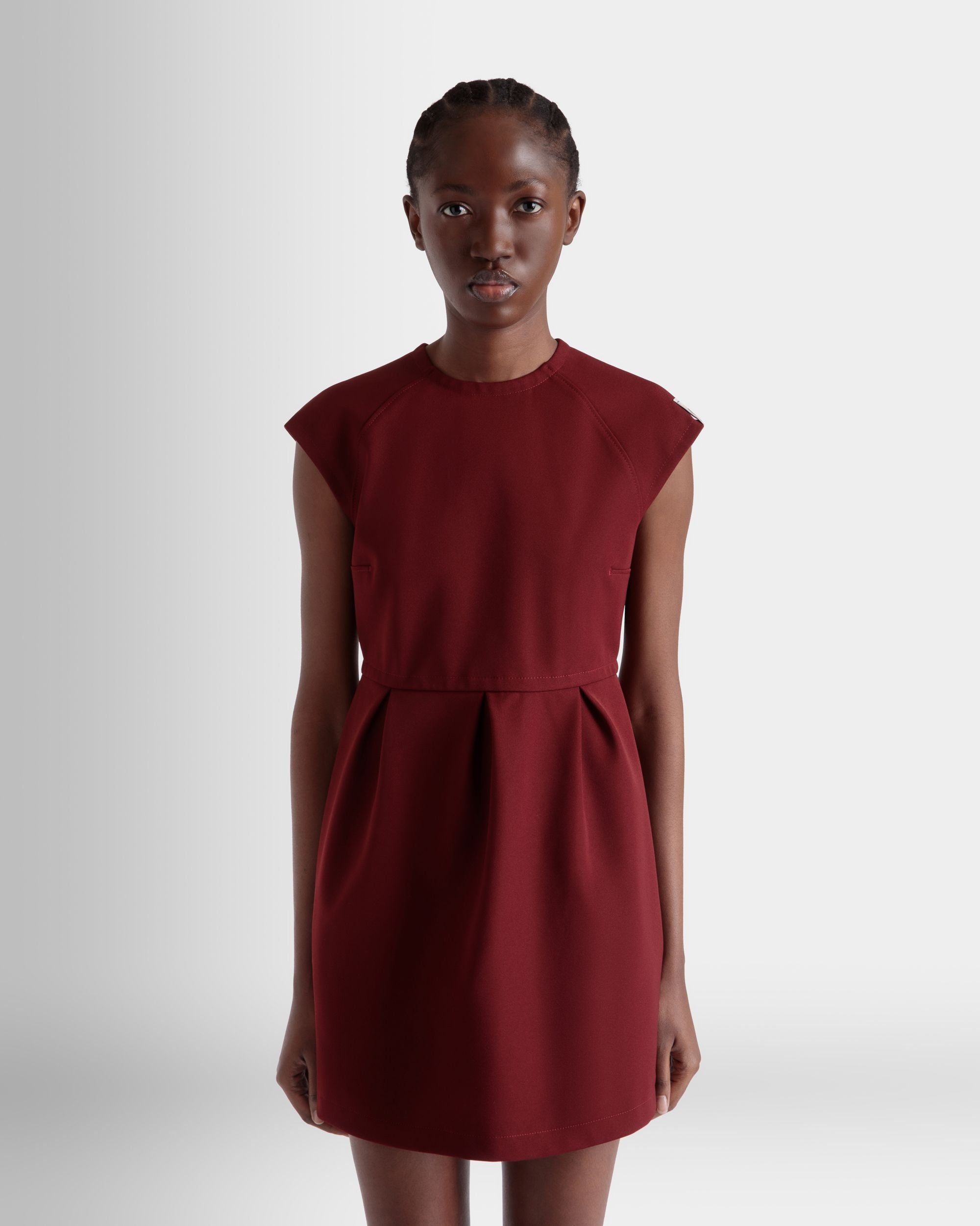 This mini dress in Heritage Red nylon gabardine has an hourglass silhouette shaped by a softly pleated skirt and a fitted torso. A Bally Crest label trims one of the cap sleeves.