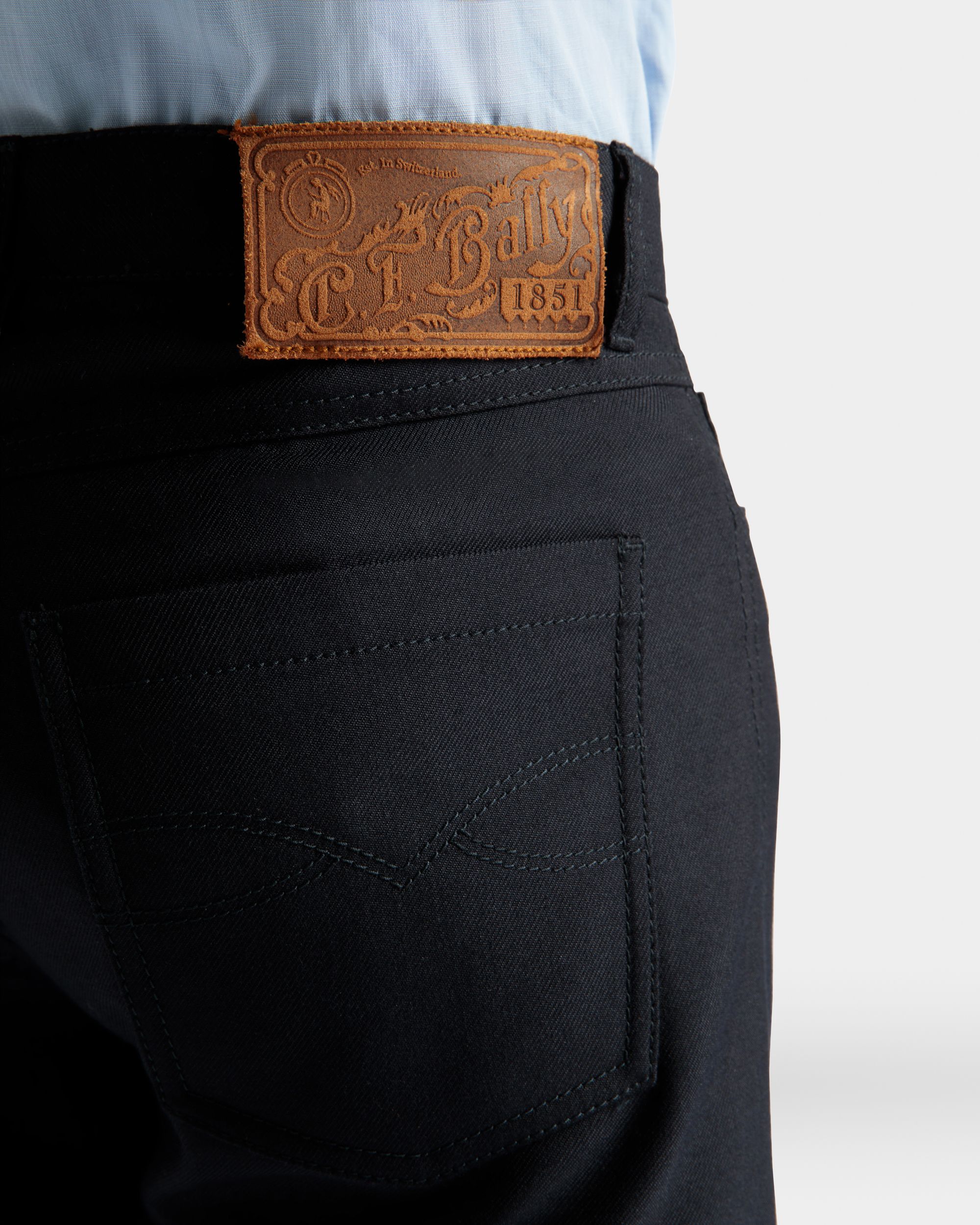 Crafted from a luxurious wool blend, these navy blue pants are versatile and timeless.