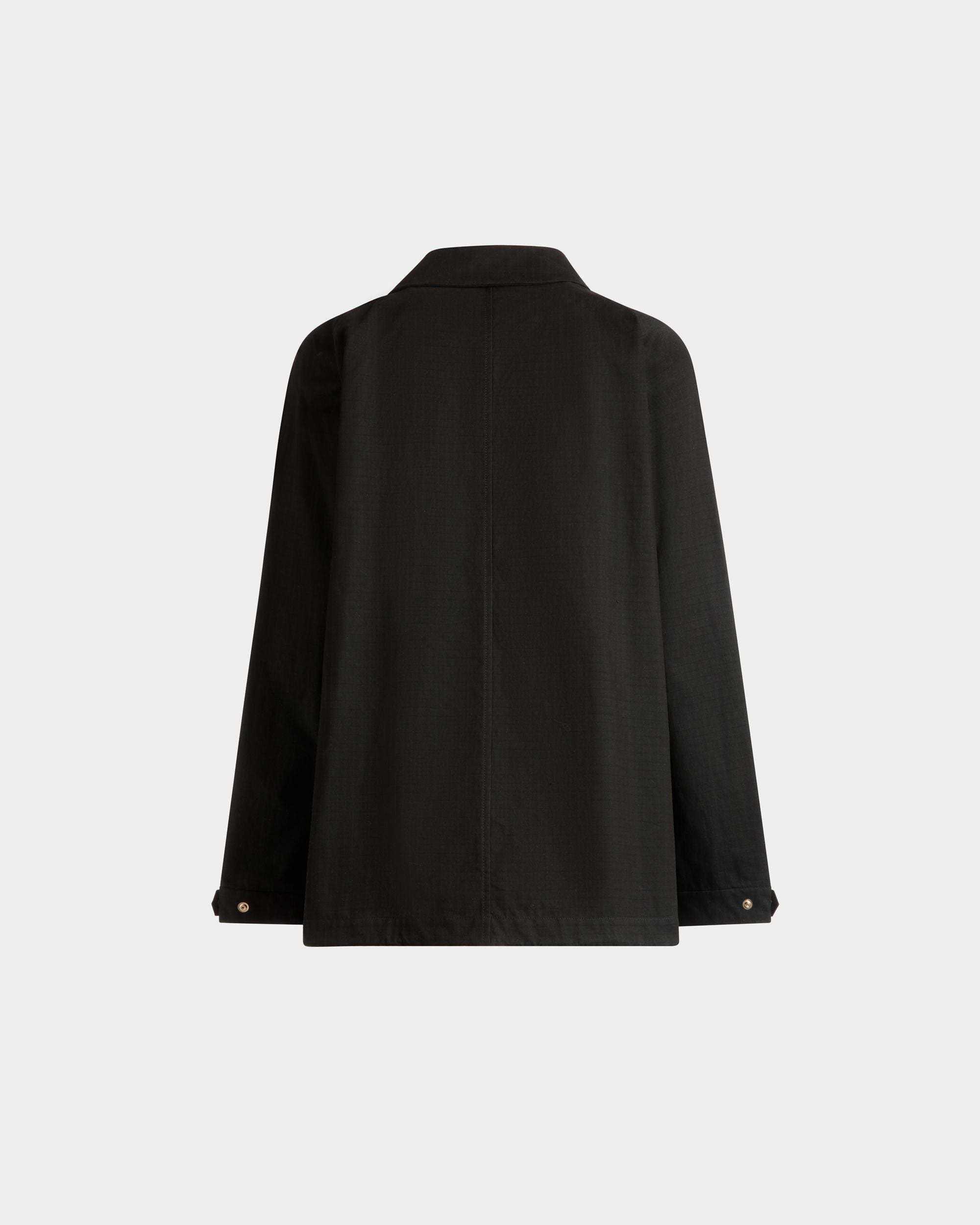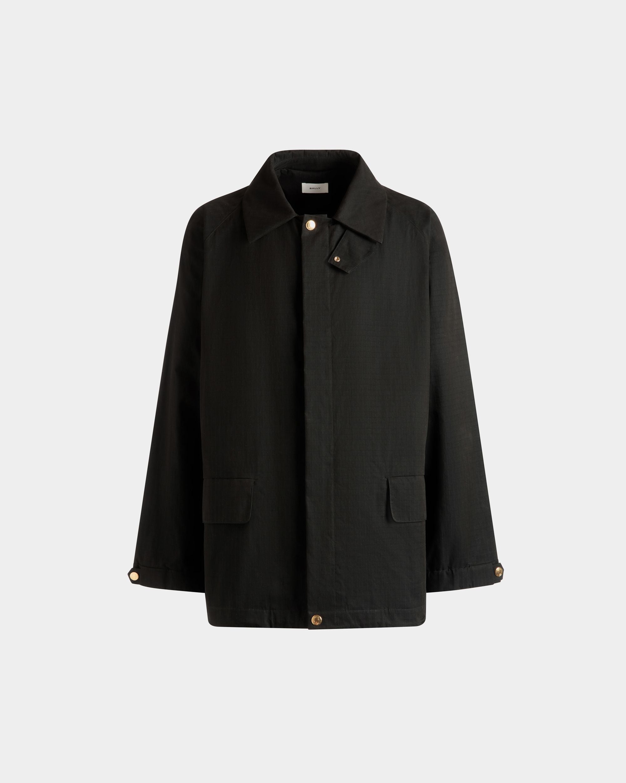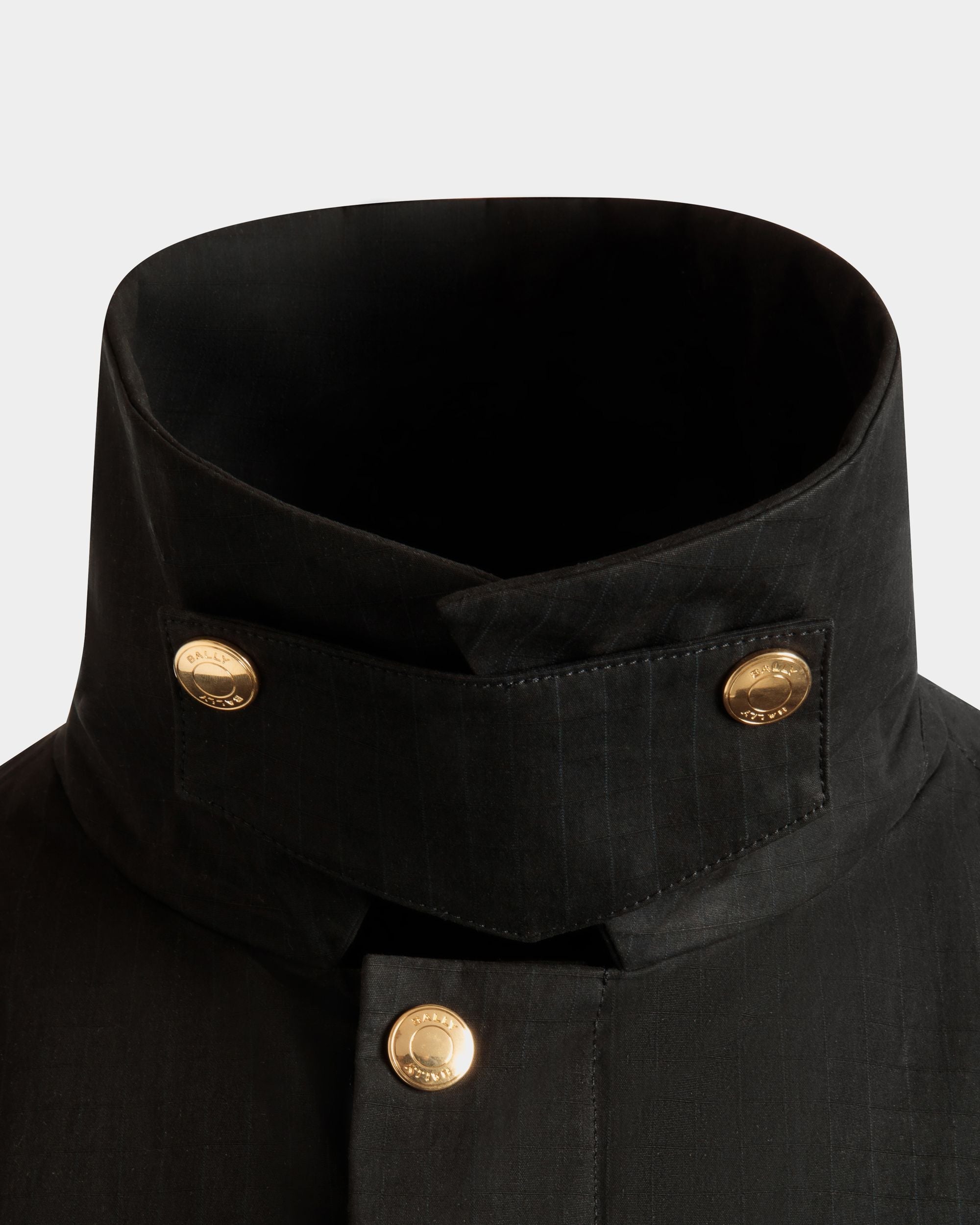 This parka of outer nylon fabric features gold-tone metal logo snaps keep the hem, collar and cuffs securely in place. Two flap pockets store the essentials.