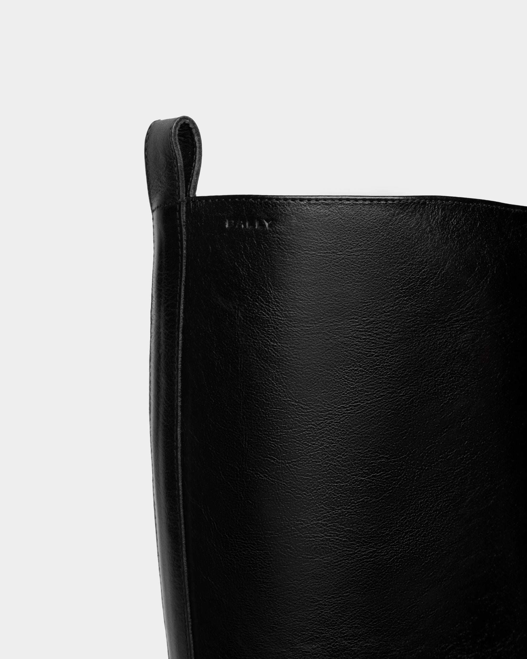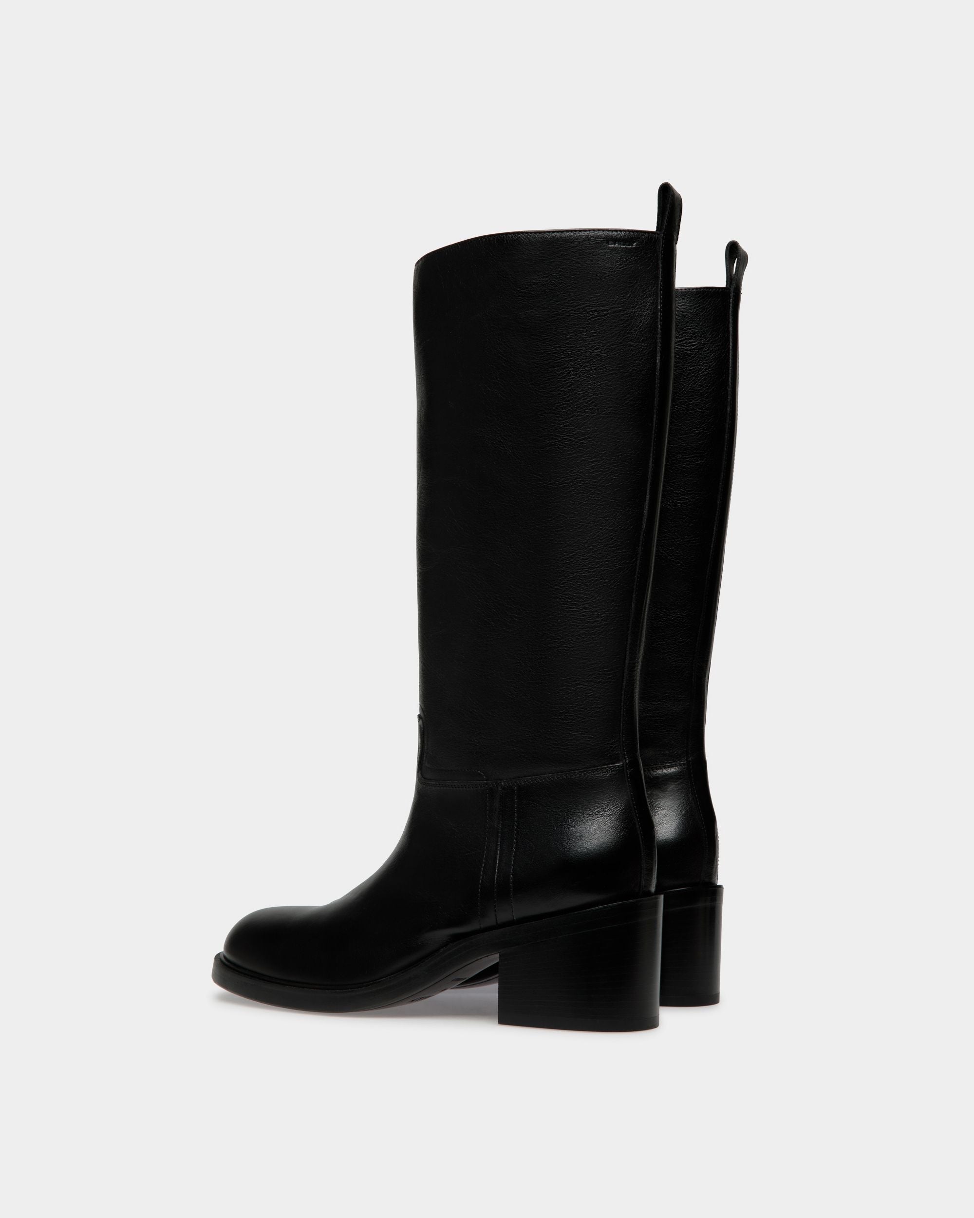 Crafted in finest black calfskin, the Peggy boot exudes sophistication and style with a stacked heel and a silhouette that's almost utilitarian. Cemented construction confirms its durability, for cool, wear-anywhere footwear.
