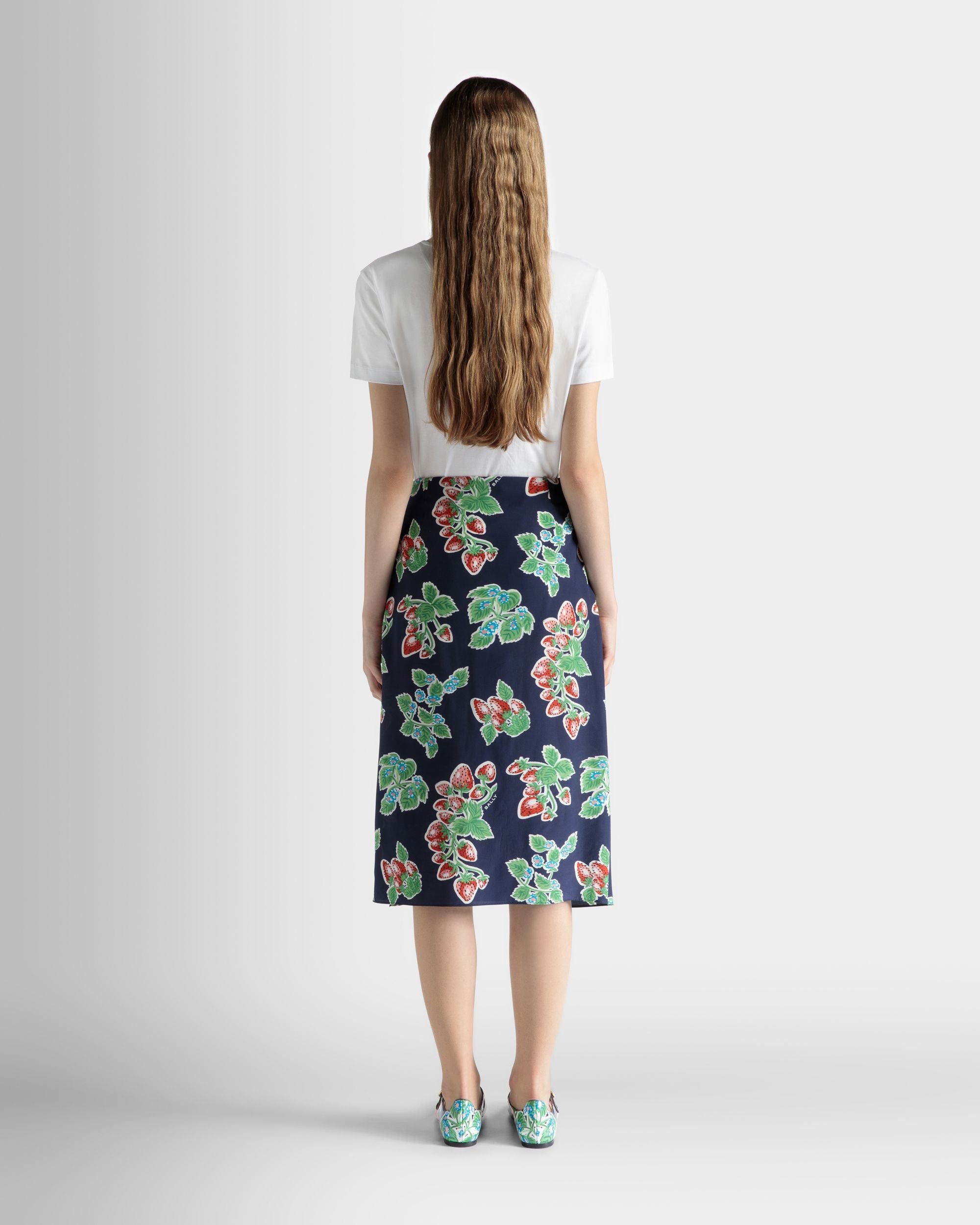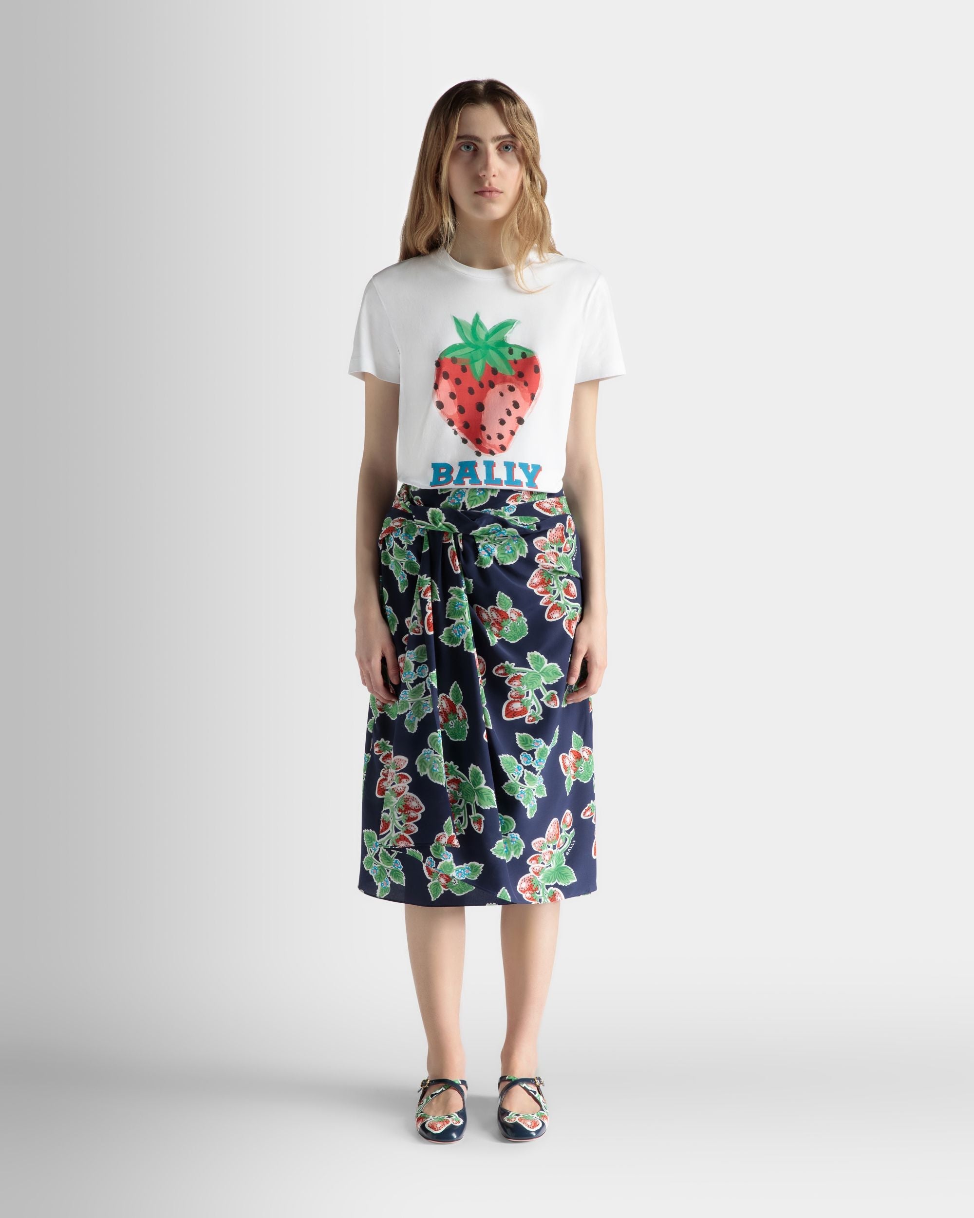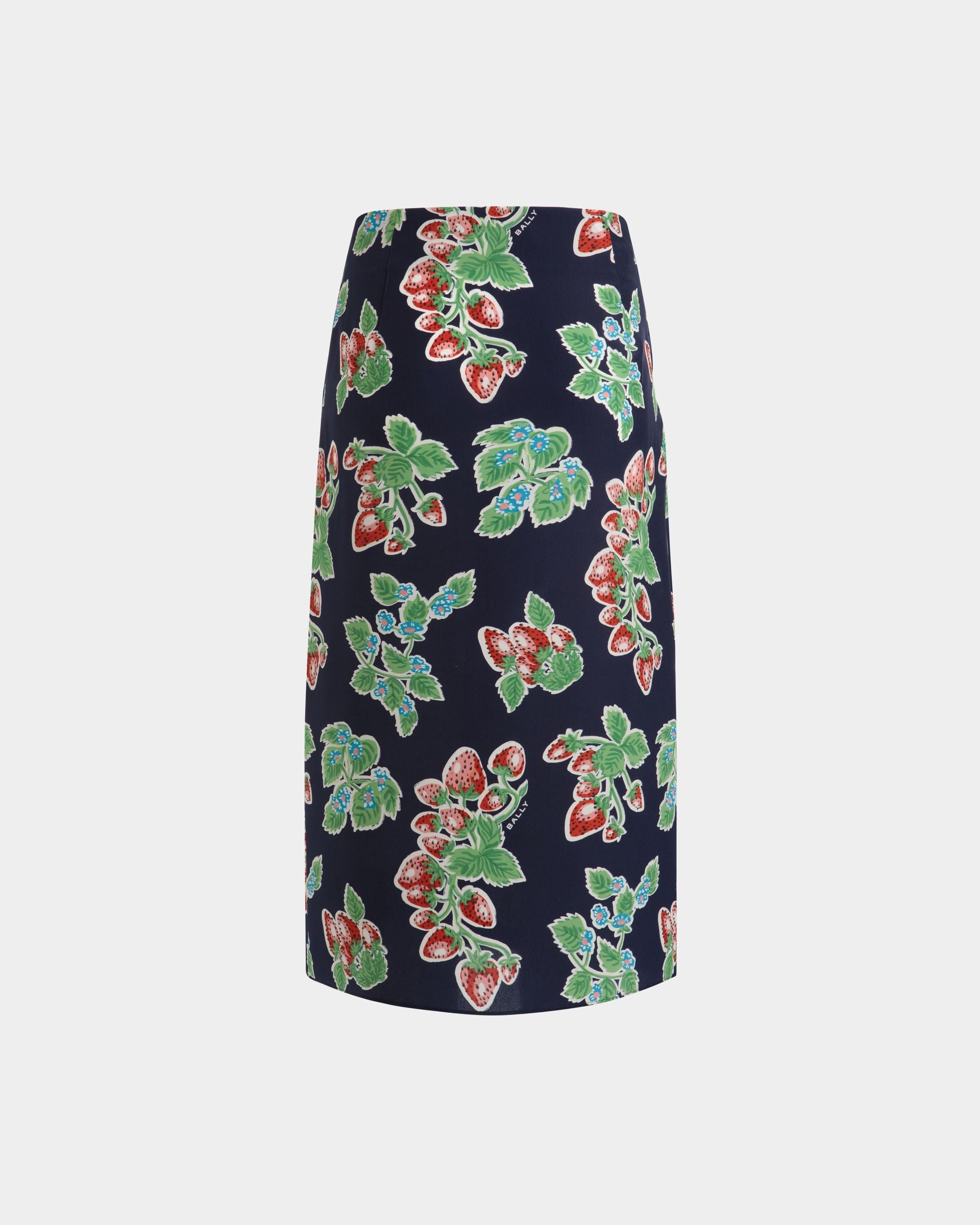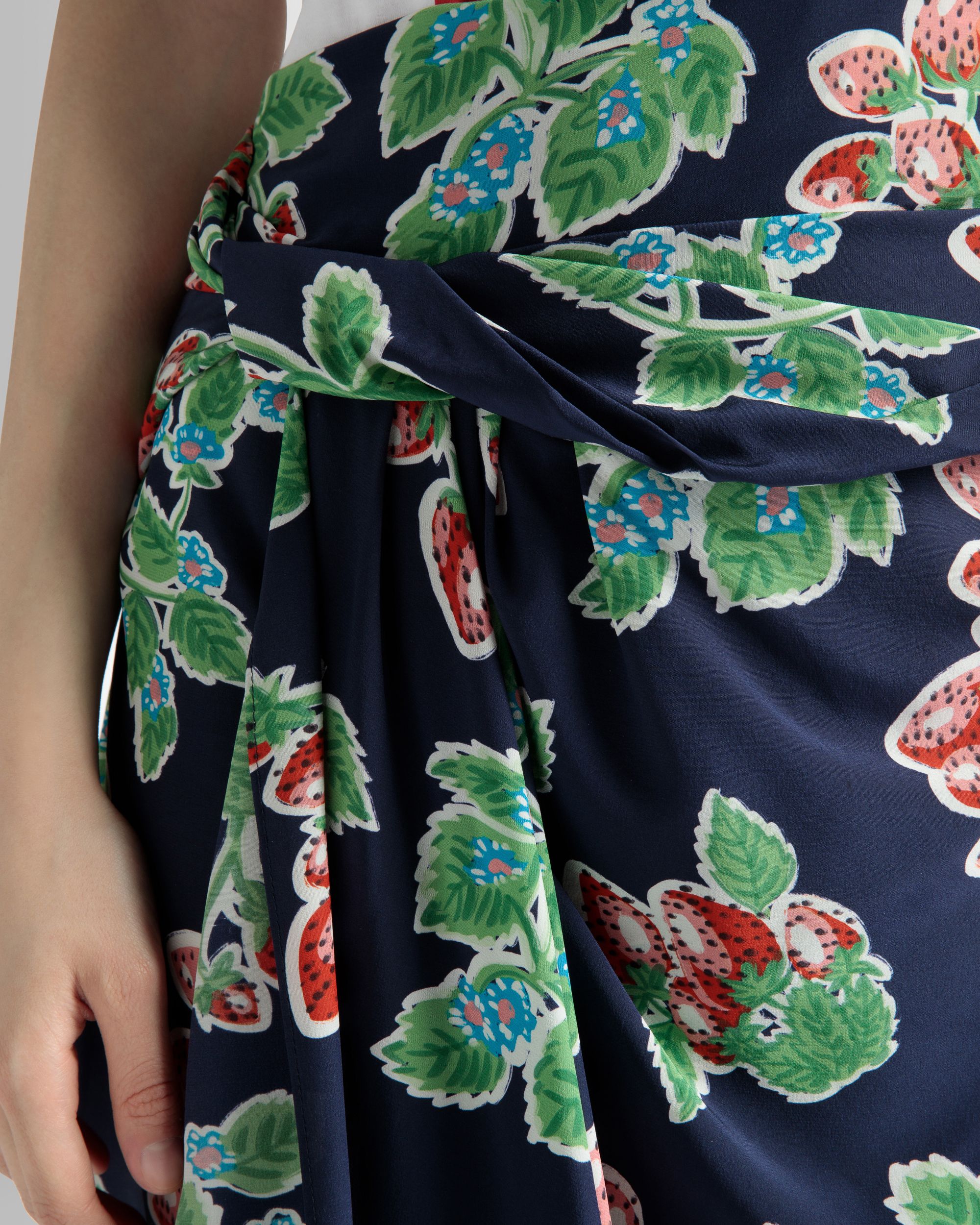 Whimsical charm abounds in this midi skirt featuring a delightful Strawberry Print. Crafted from luxurious silk, it exudes elegance and playfulness.