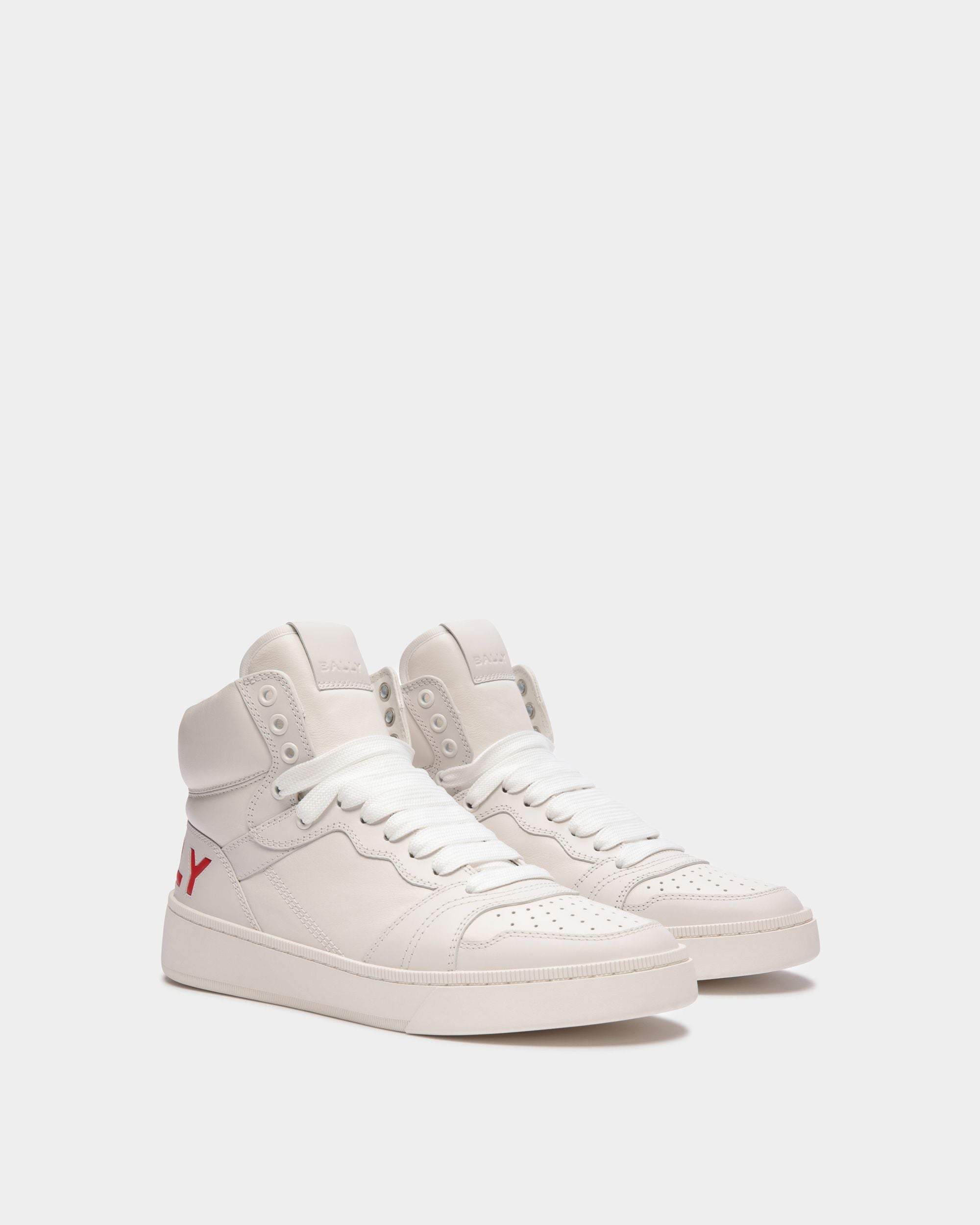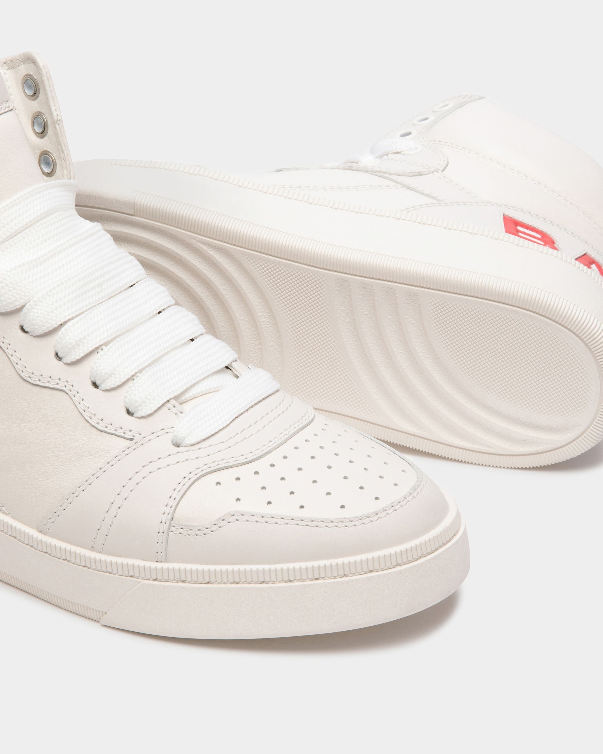 Step into luxury with these high-top sneakers in finest white calfskin. The rubber outsole provides excellent traction, while the sleek design adds a touch of sophistication to your city-ready casual looks. Perfect for the modern fashion enthusiast.