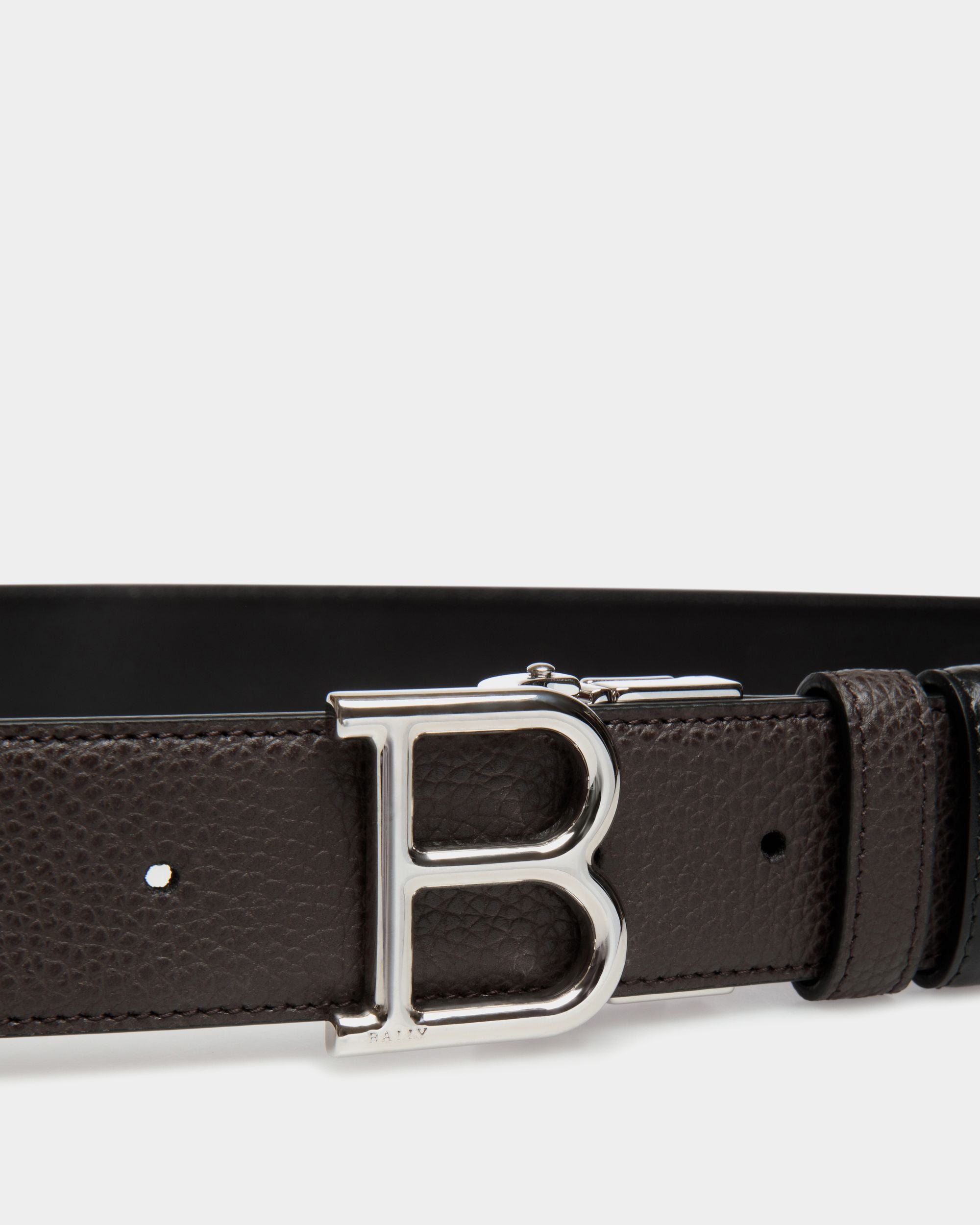 This belt is made from durable grained leather. It fastens with a polished metal Bally B buckle.