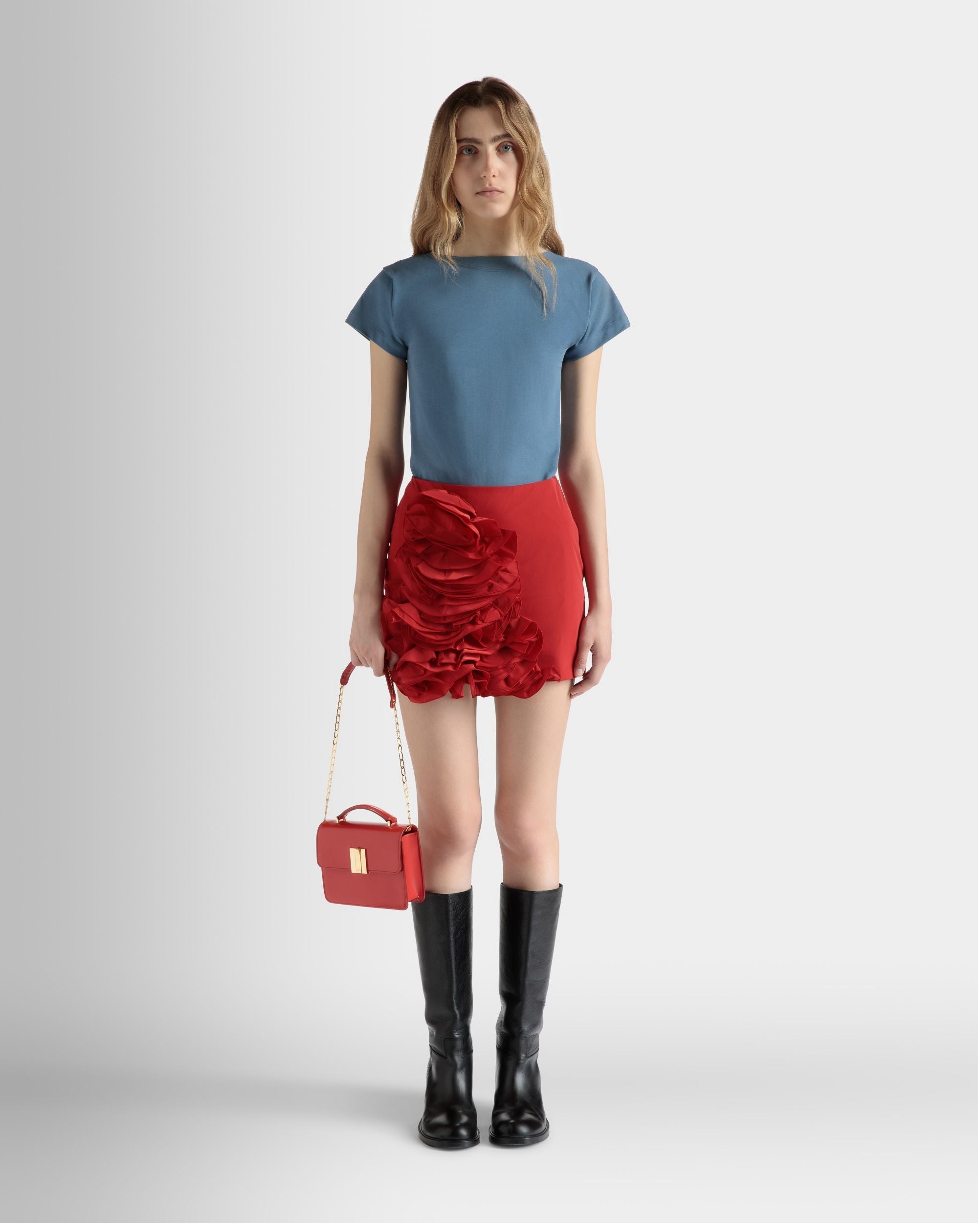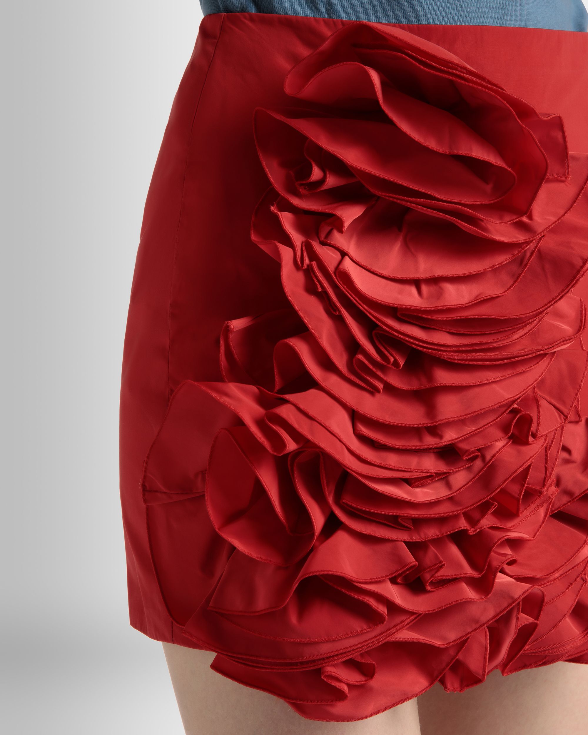 Rouches Mini Skirt in Candy Red Technical Duchesse