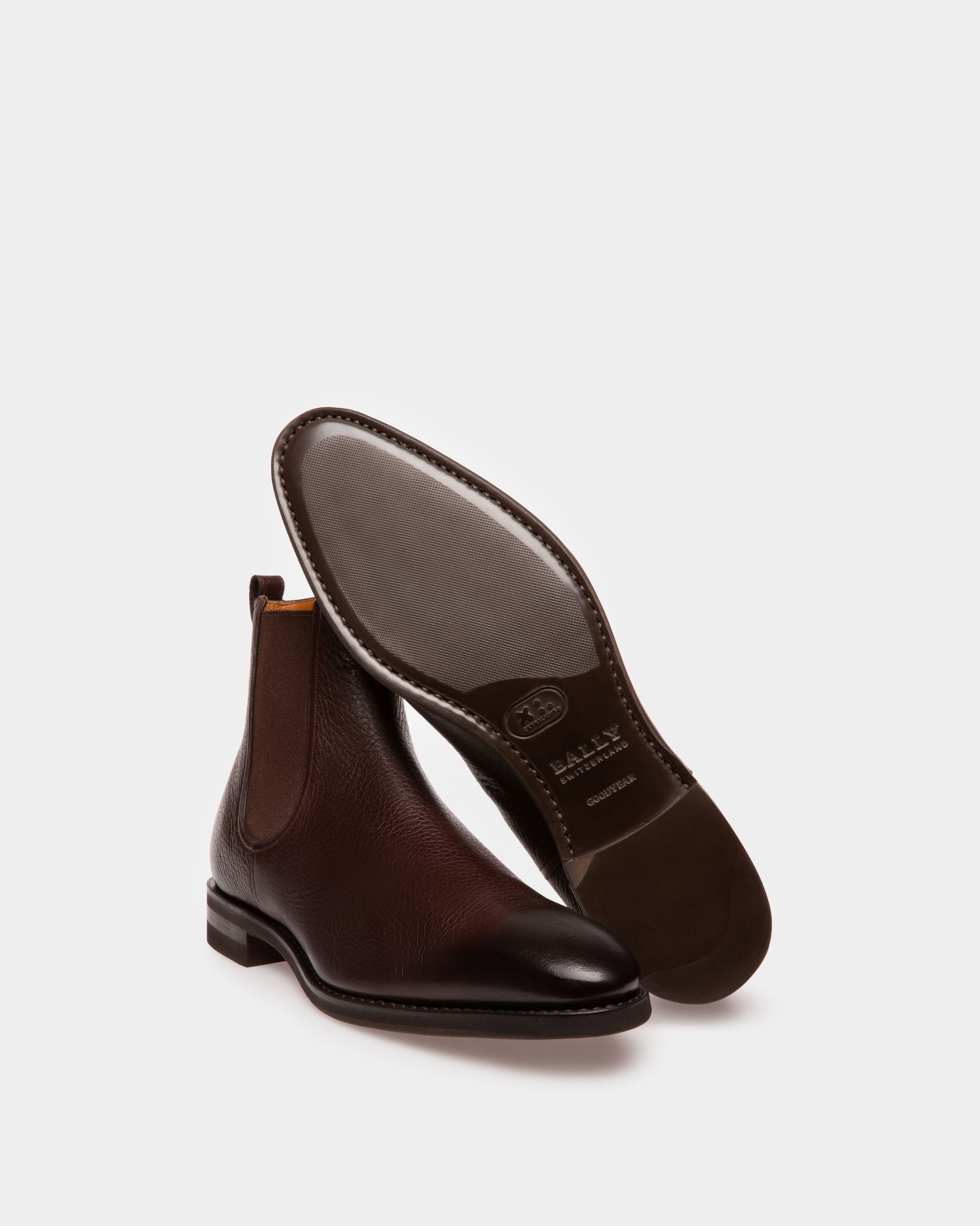 The most innovative Bally Scribe offering, this exquisite handmade Chelsea boot is the contemporary incarnation of artisanal craftsmanship. Finest deer leather is dyed brown and polished by hand, and mounted onto the most lightweight rubber sole ever to be found on a Goodyear construction, developed exclenively for Bally. This versatile yet high-quality amalgamation of materials results in a water-resistant and functional design that is ideal for the gentleman traveller and the city dweller.