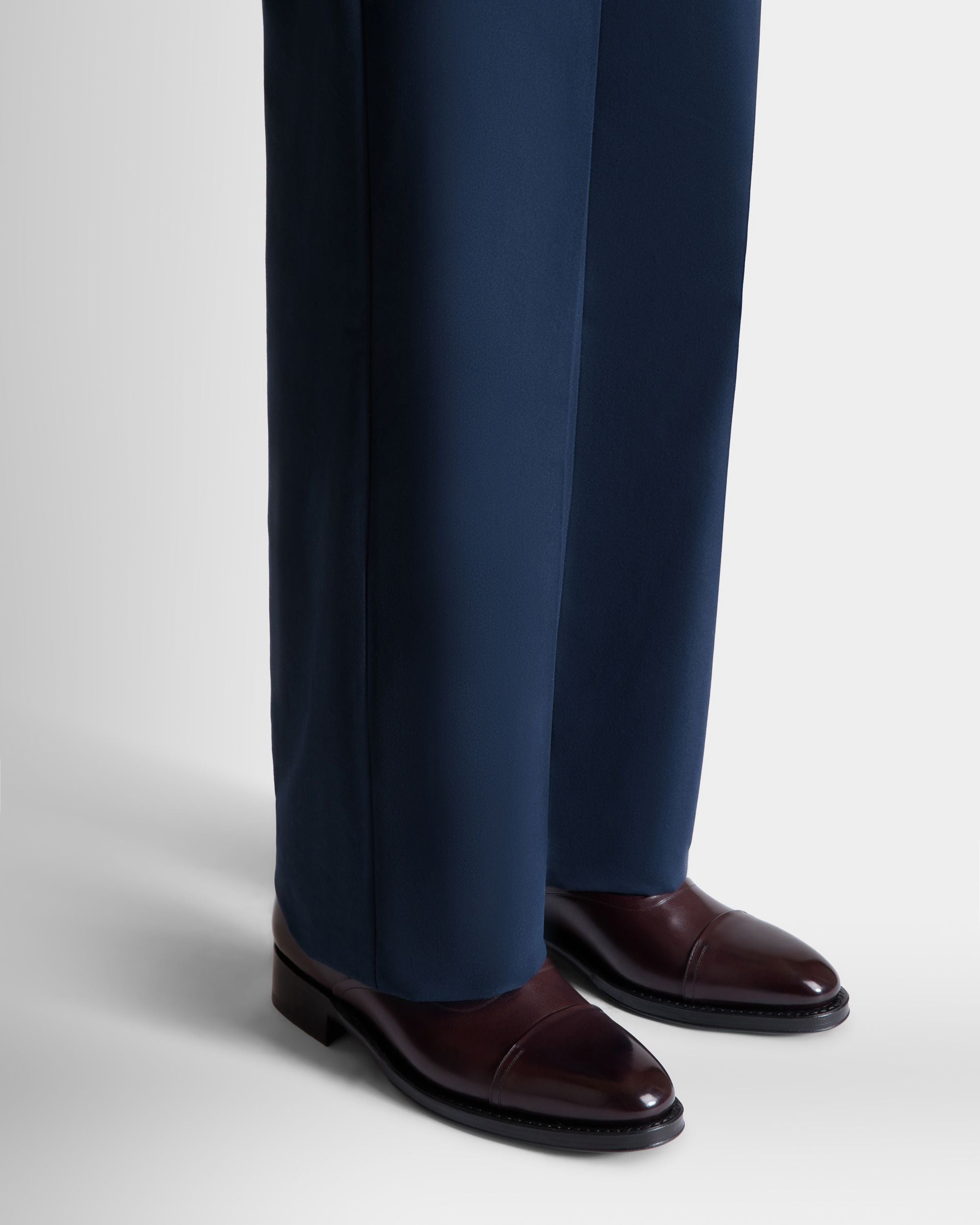 This Scribe Un Oxford in deep burgundy calfskin reveals the artisan spirit of Bally through a hand-polished cap toe and heel. Goodyear construction and a cork midsole ensure comfort, water resistance and ease of resoling.