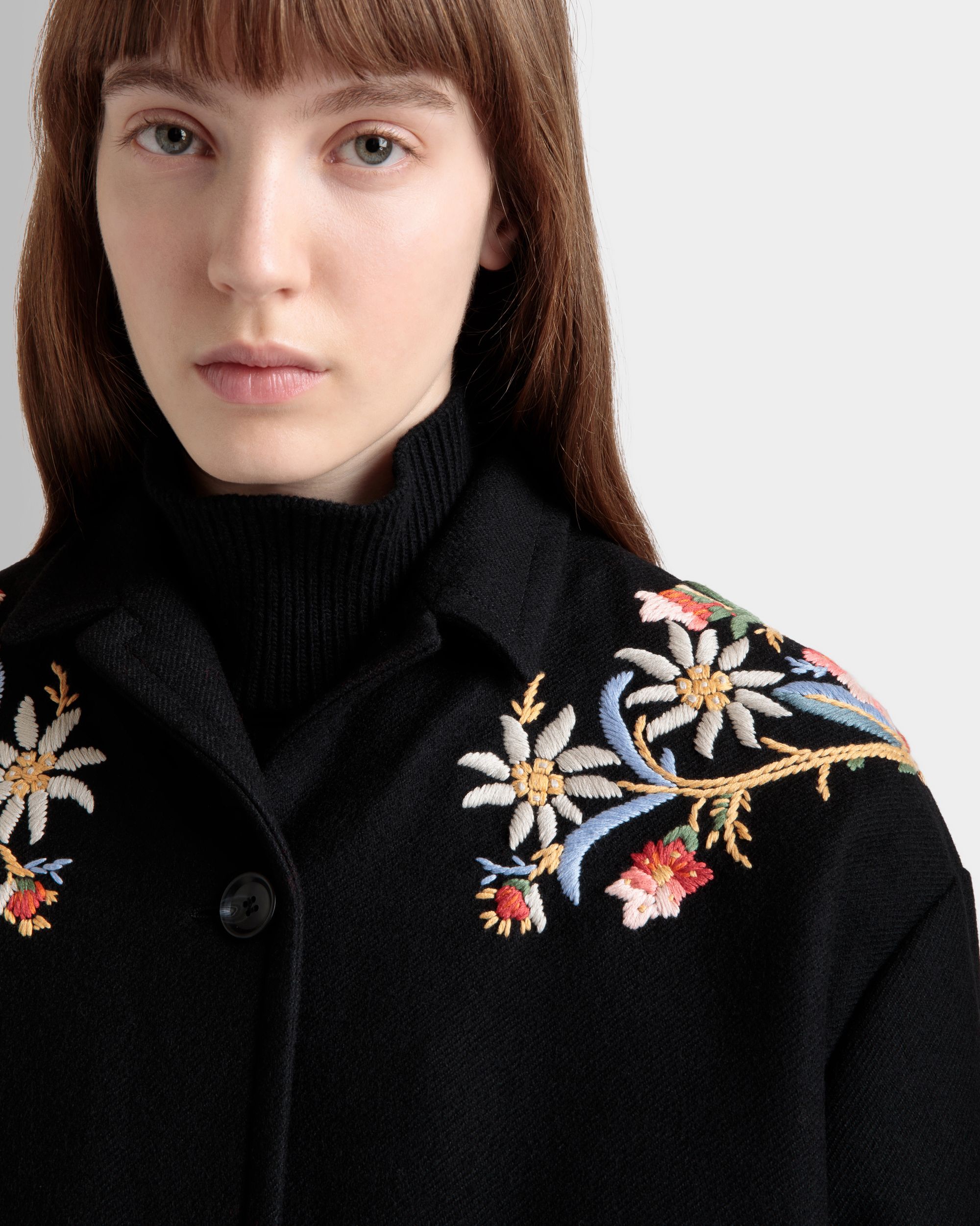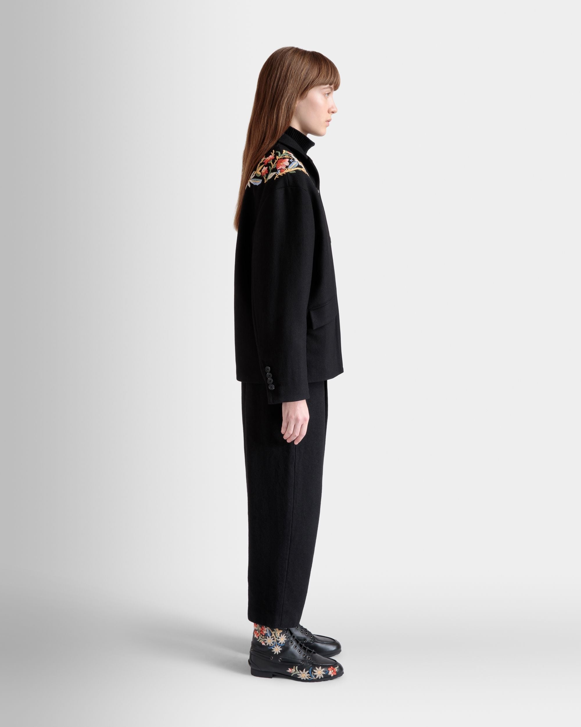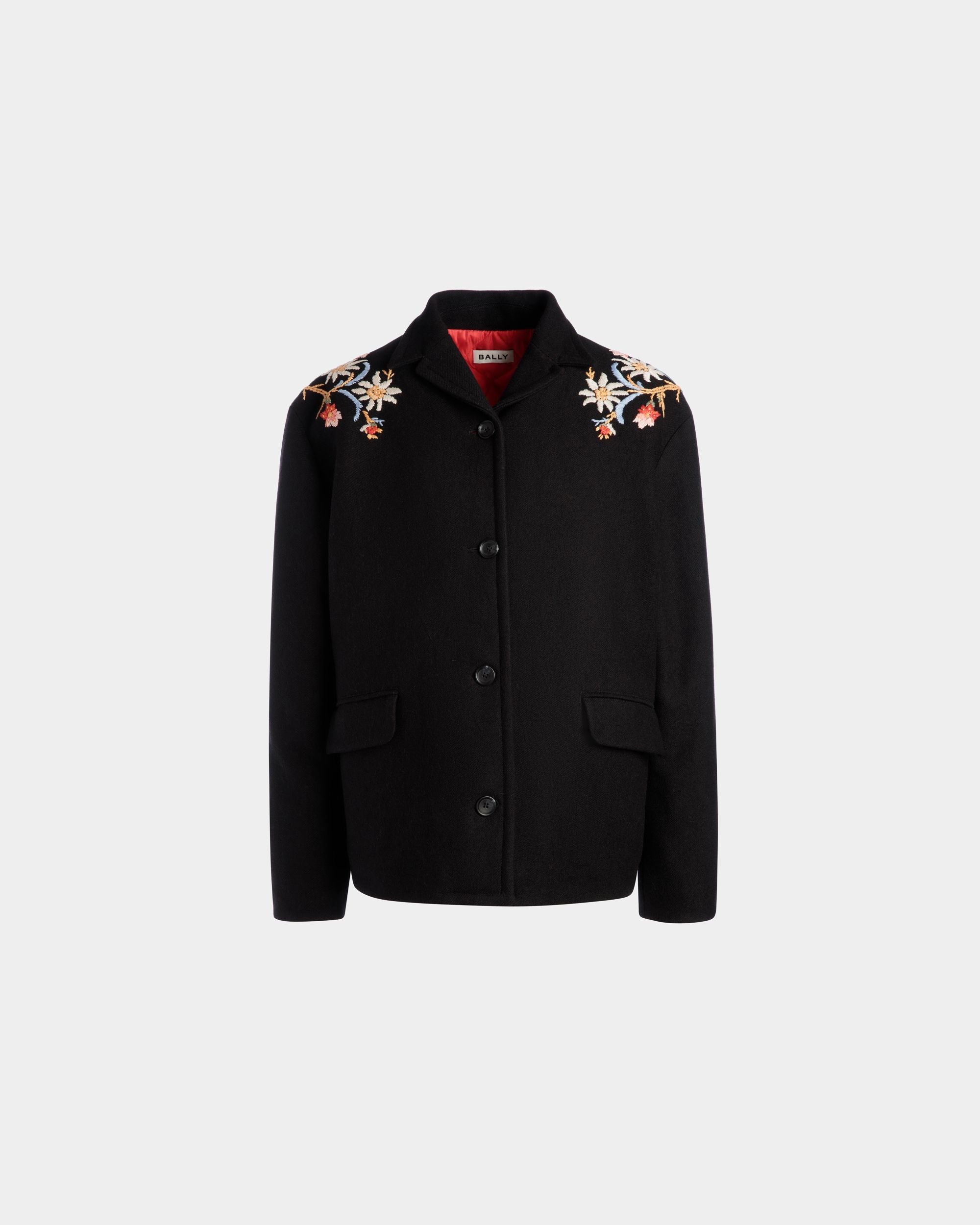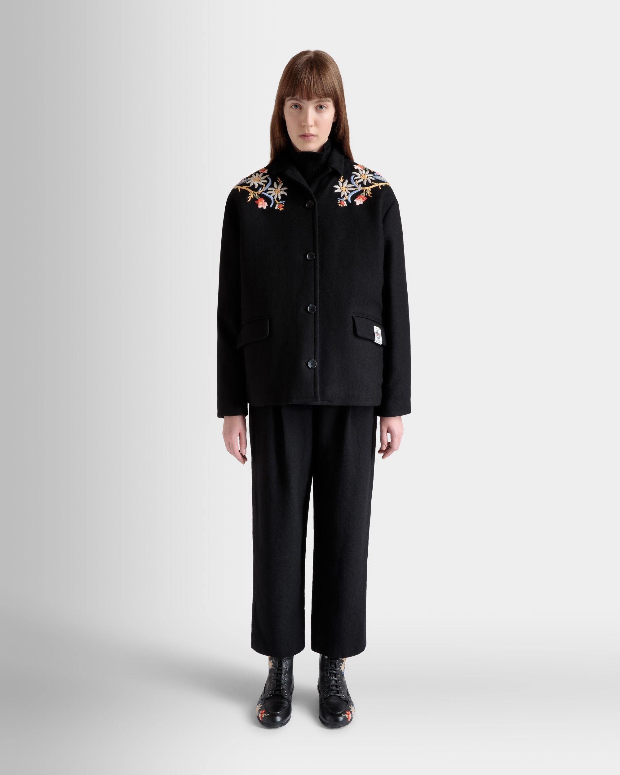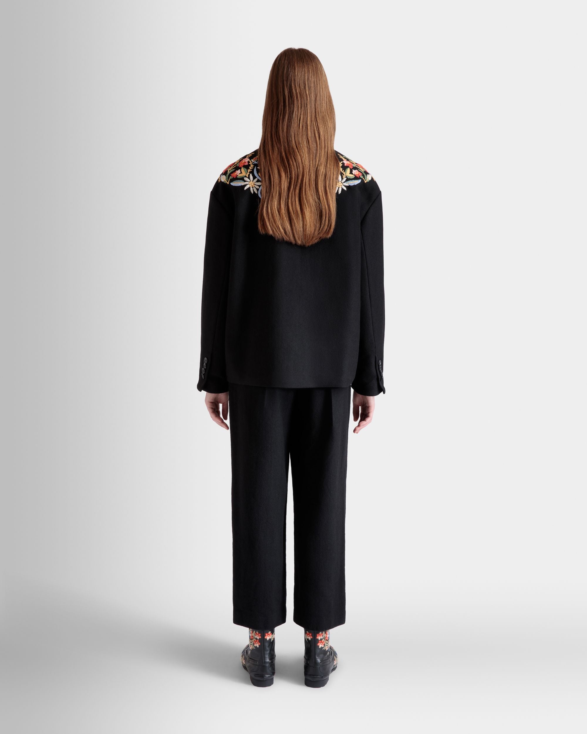 Winter Capsule Jacket With Alpine Flowers in a Black Wool Blend