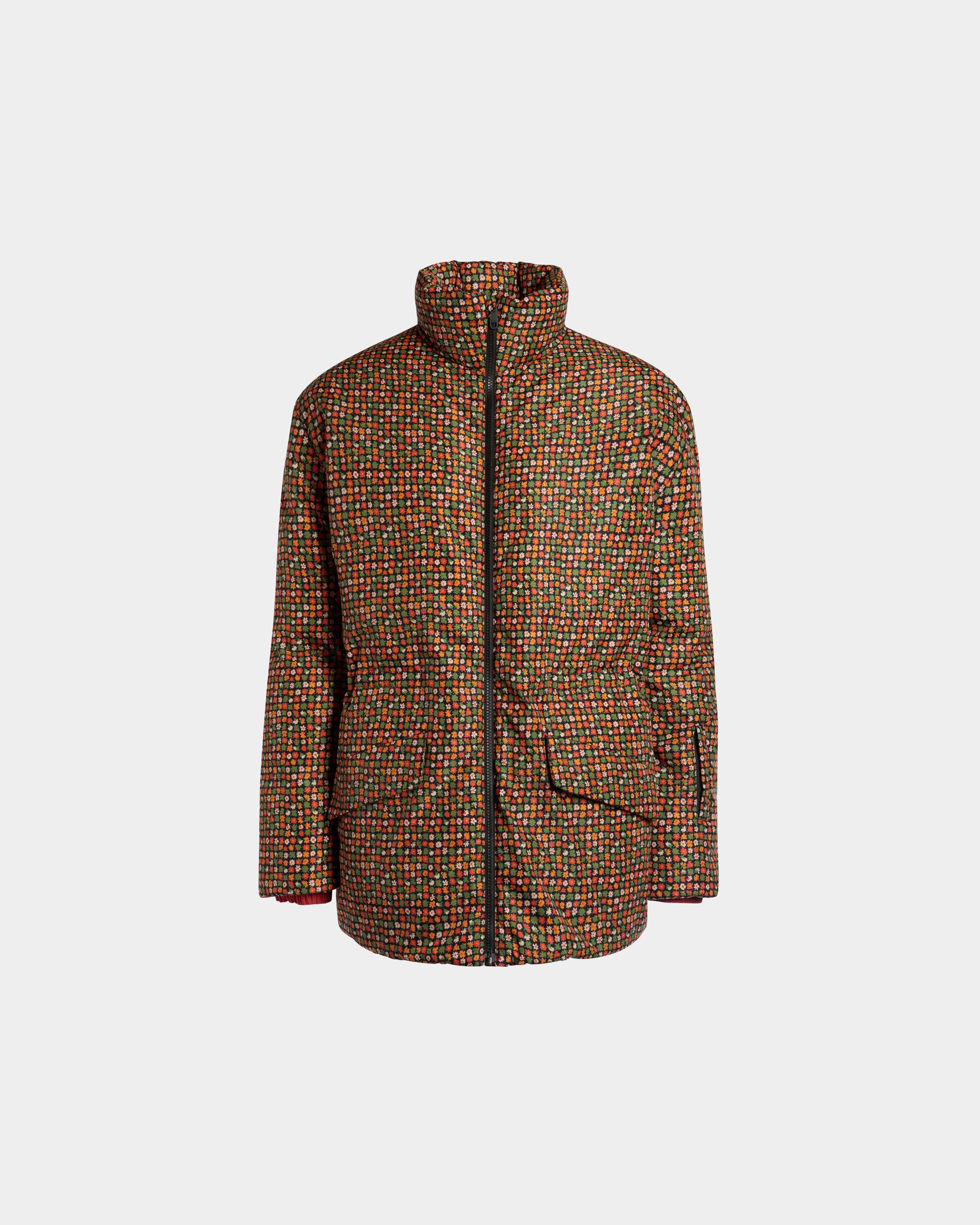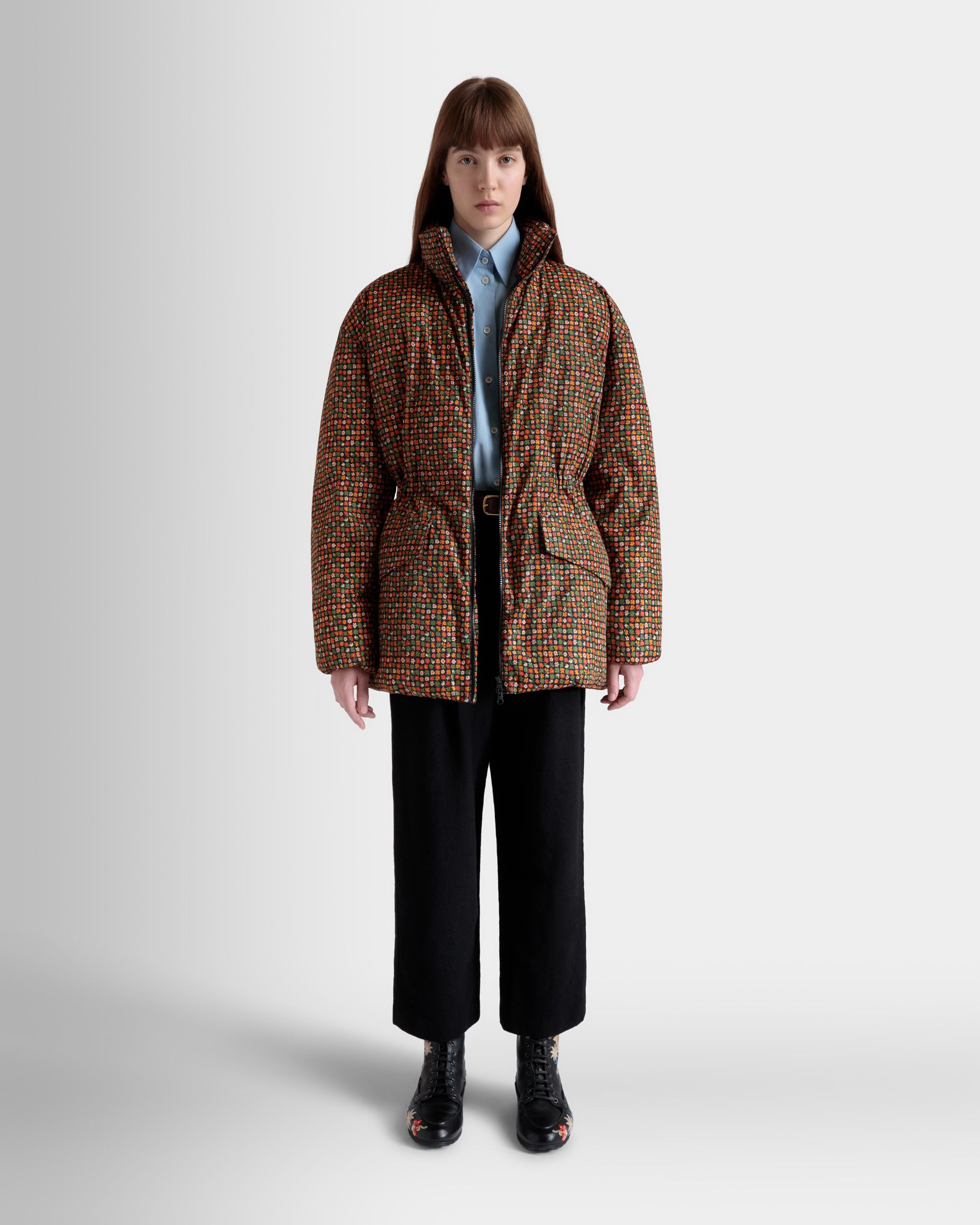 This puffer jacket in colorful recycled nylon is emblazoned with a playful all-over Alpine Flower pattern inspired by a motif from the Bally archives.
