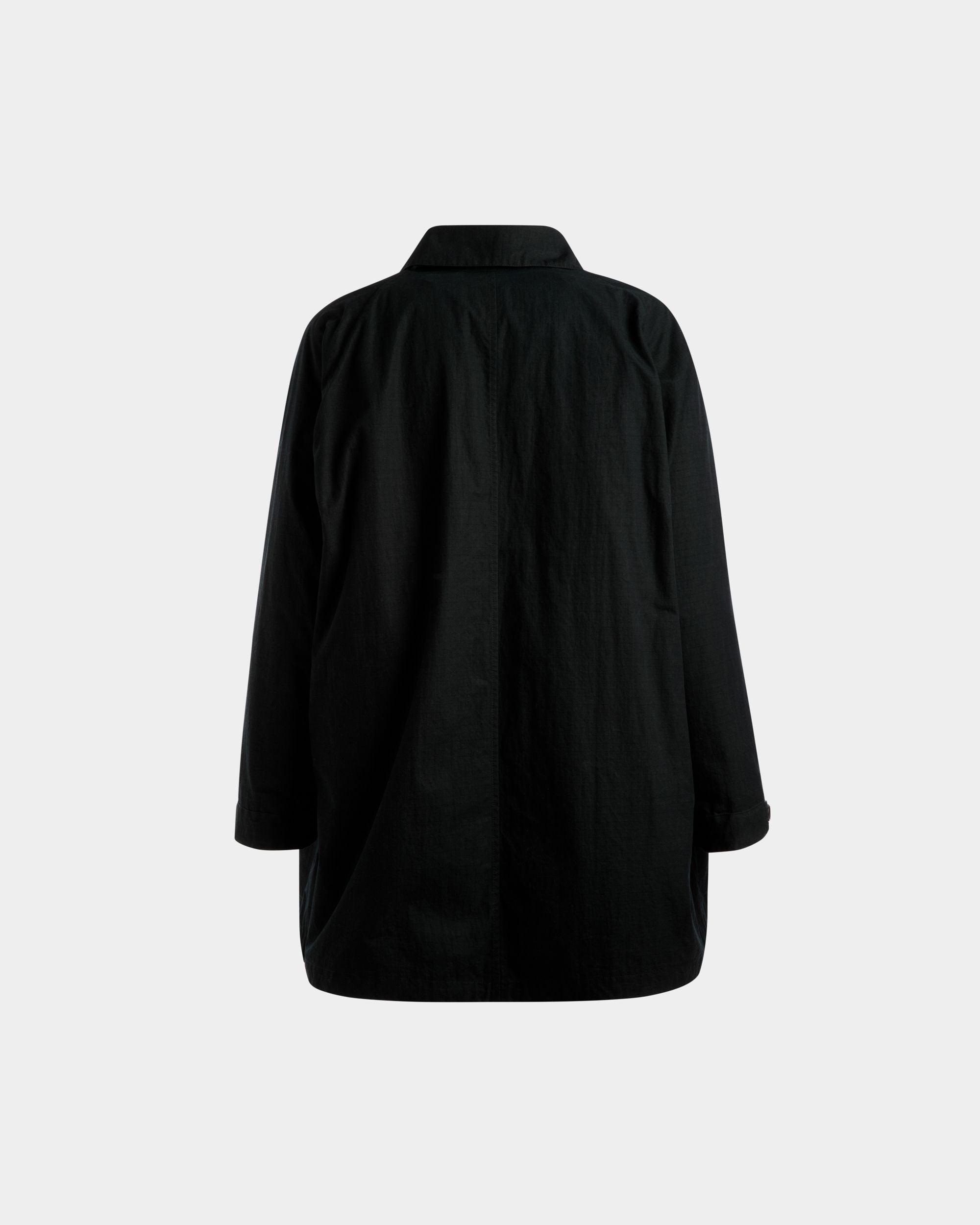 A timeless addition to any wardrobe. This minimalistic, boxy-fit duster jacket features two pockets and a classic collar.