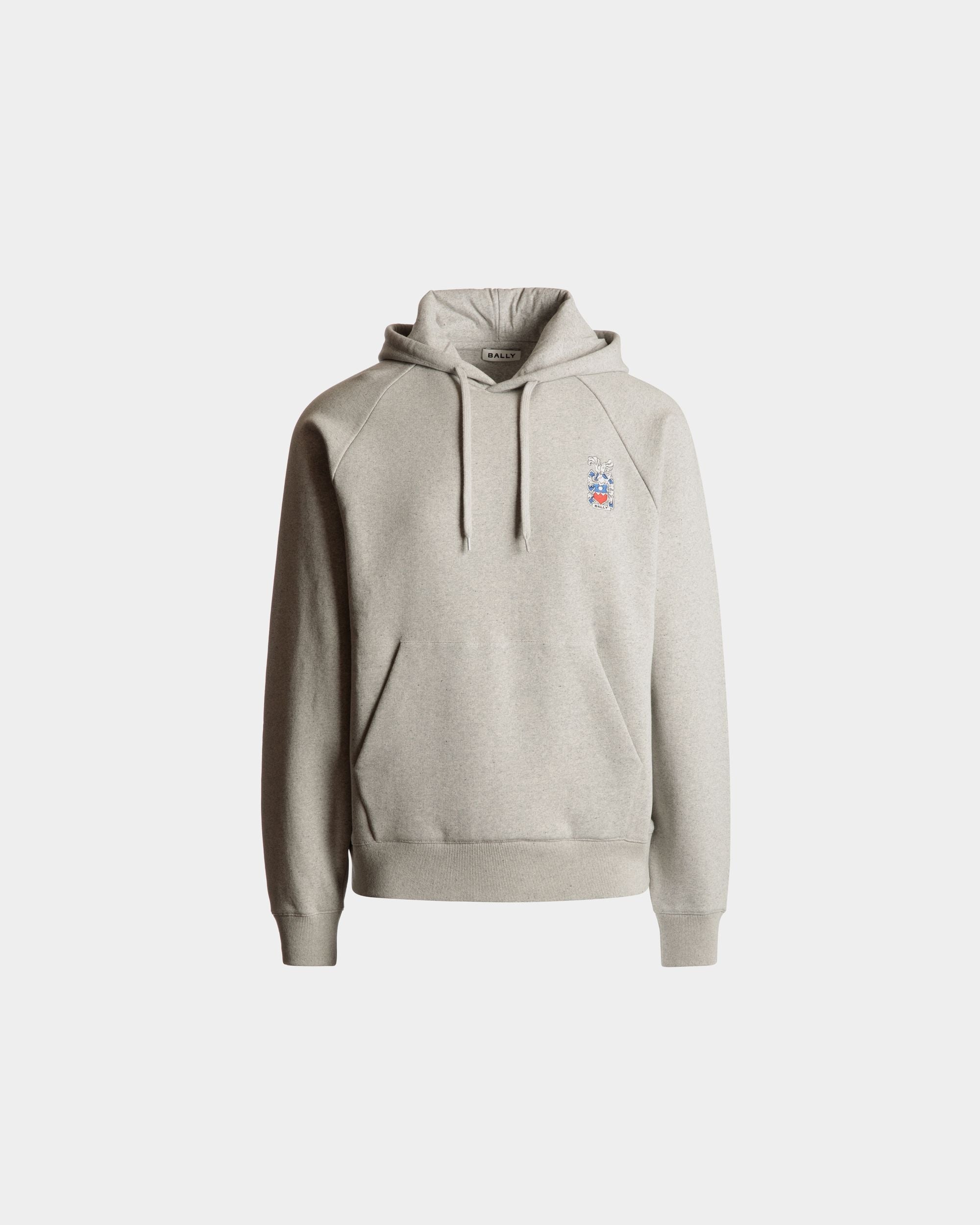 La sudadera con capucha de algodón elástico Grey Melange incluye el escudo Bally Crest bordado en la parte izquierda del pecho y un bolsillo grande en la parte delantera.