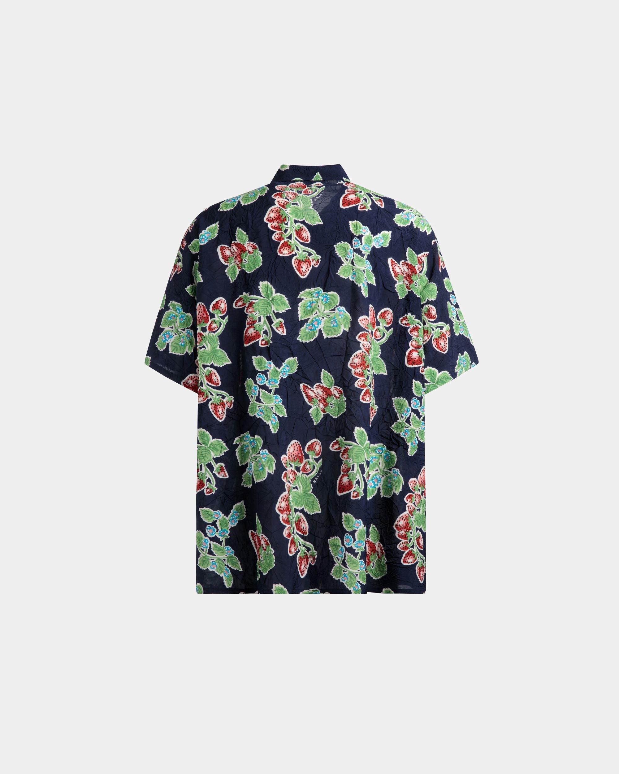 The crinkle texture of this shirt is adorned with a playful Strawberry Print. Made from premium fluid poplin fabric, it blends comfort and refinement.