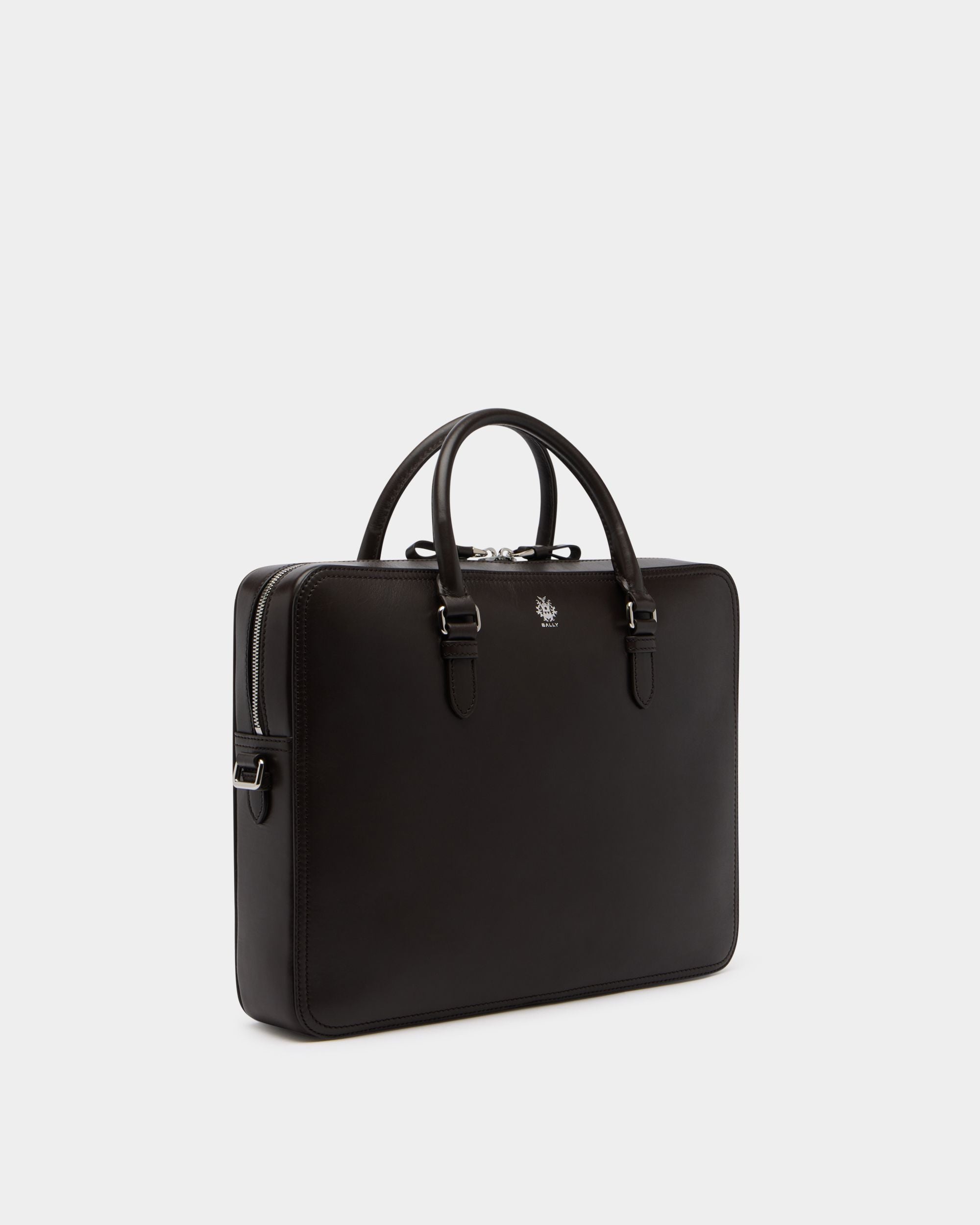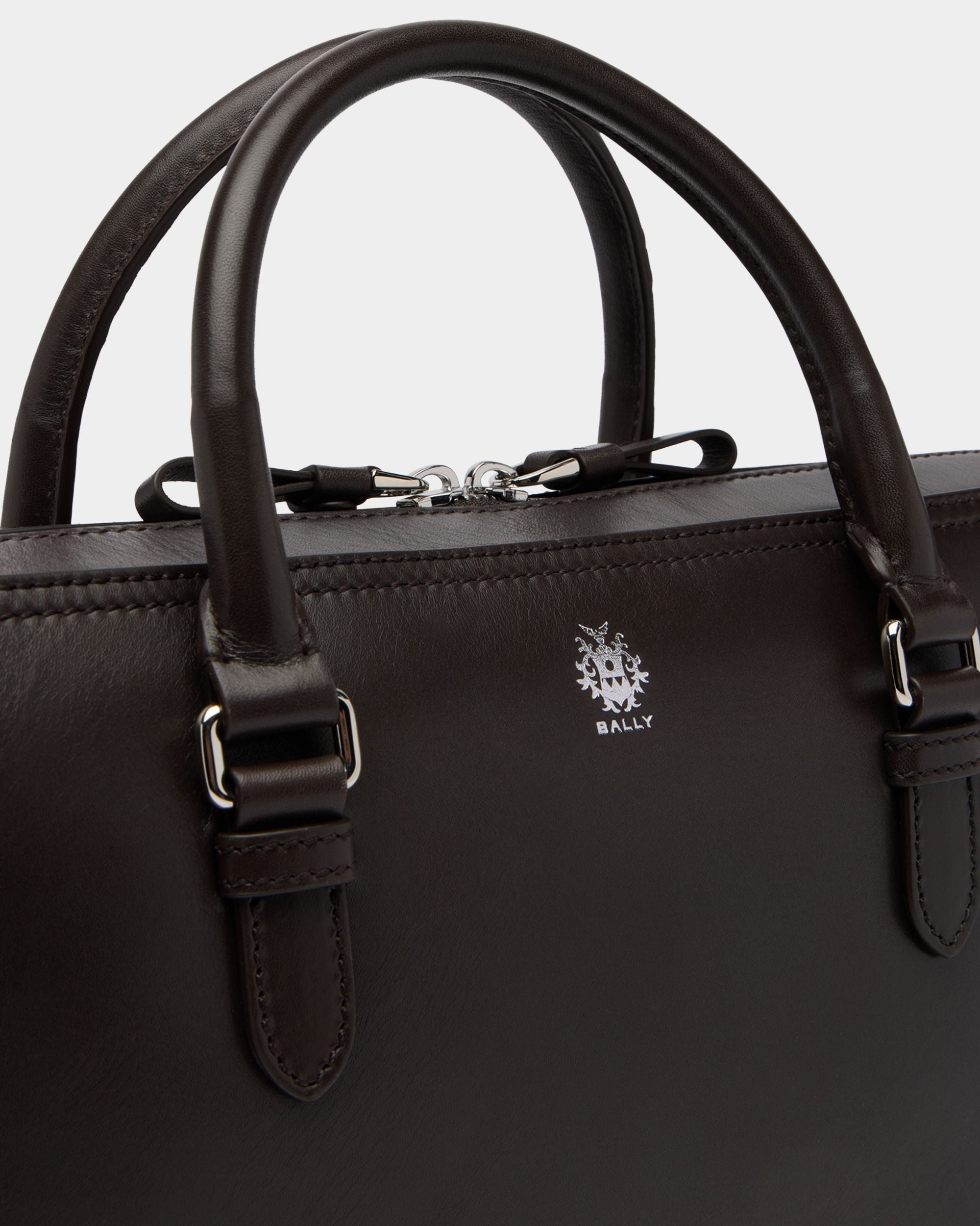 Este maletín Ray, confeccionado con piel marrón Chocolate, presenta una silueta clásica con un escudo Bally Crest laminado plateado. Entre los detalles hay dos asas tubulares en la parte superior, una correa ajustable para el hombro y un cierre de cremallera de doble cursor.