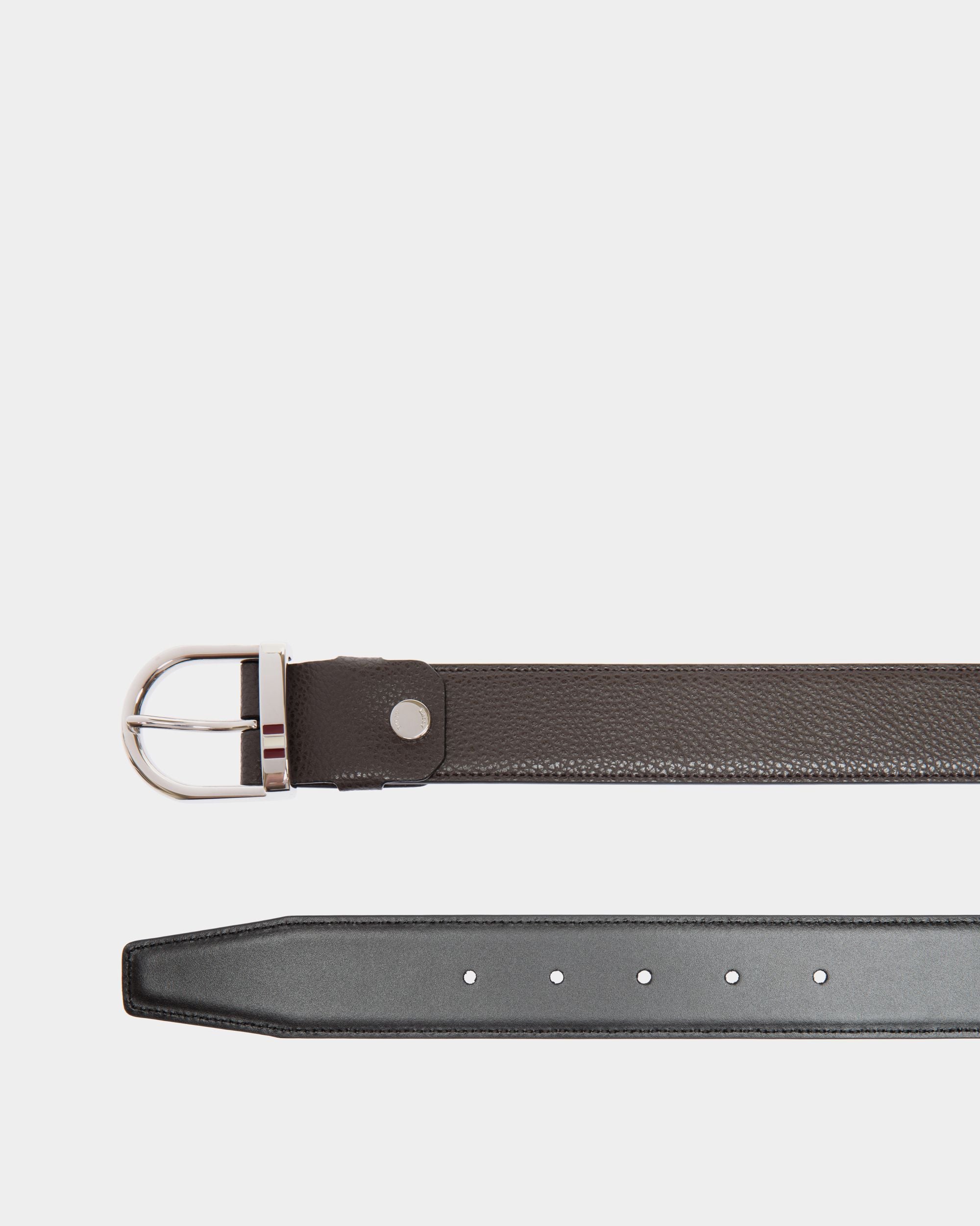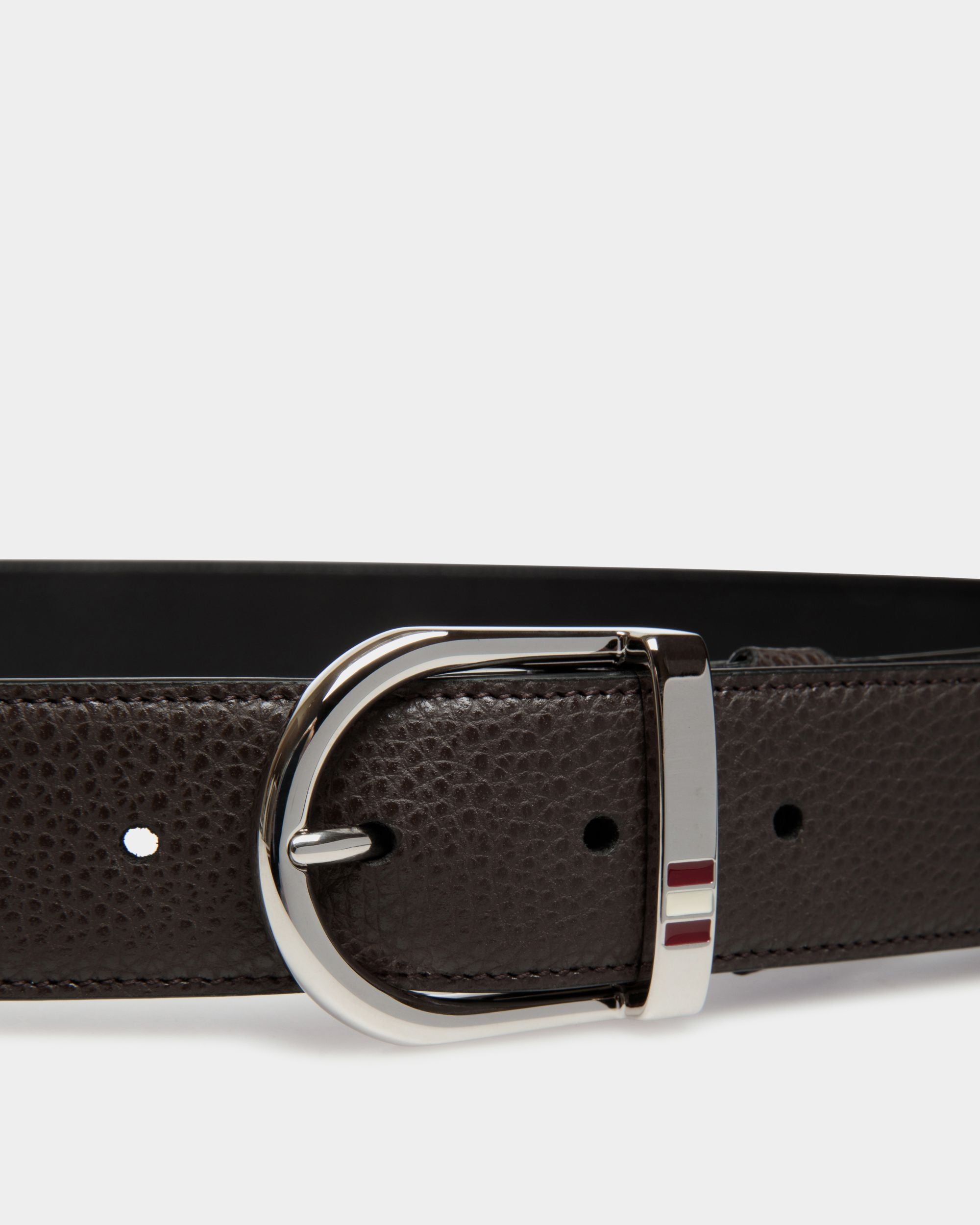 Este cinturón está confeccionado con piel granulada resistente. Se abrocha con una hebilla de metal pulido con el detalle Bally Ribbon.