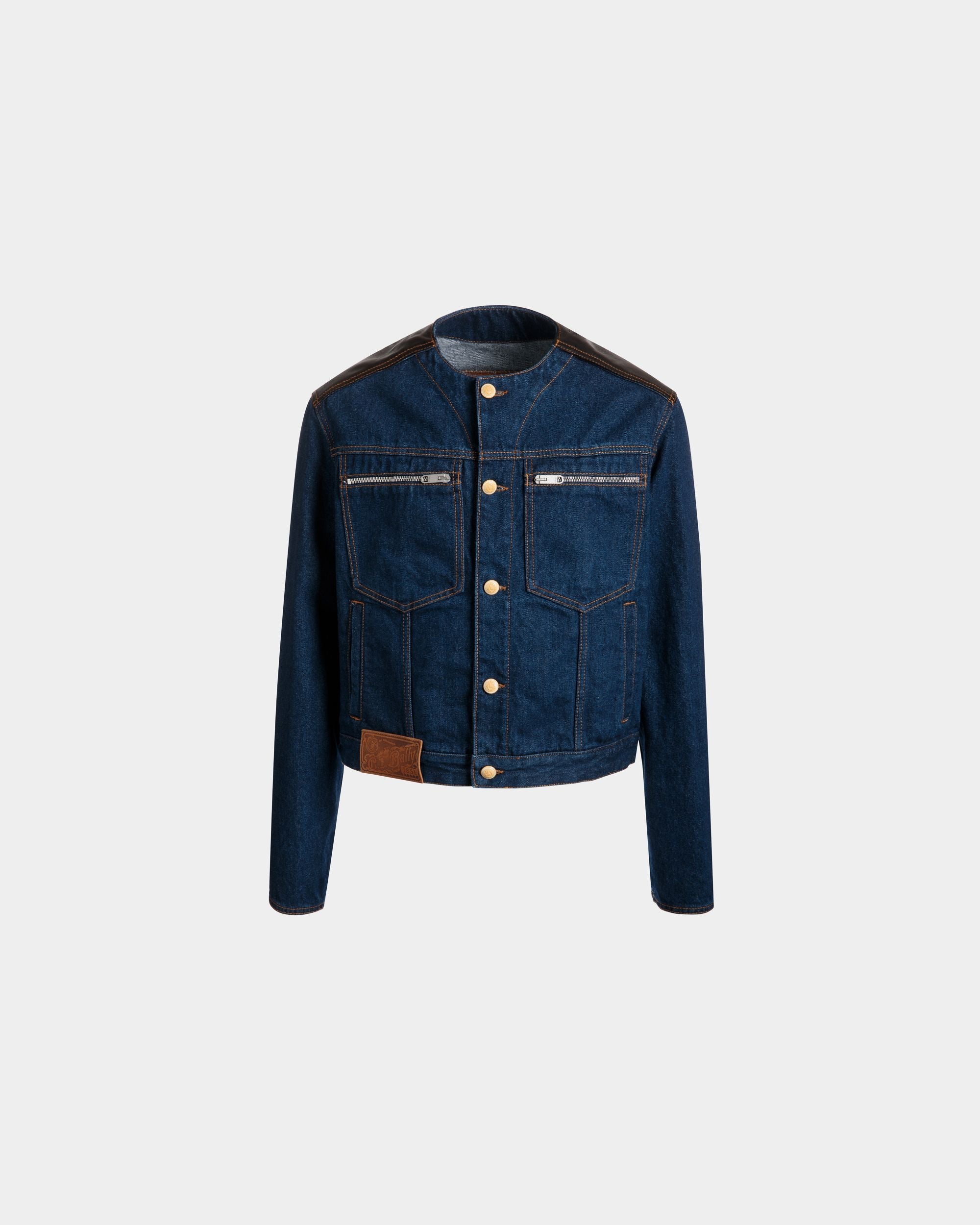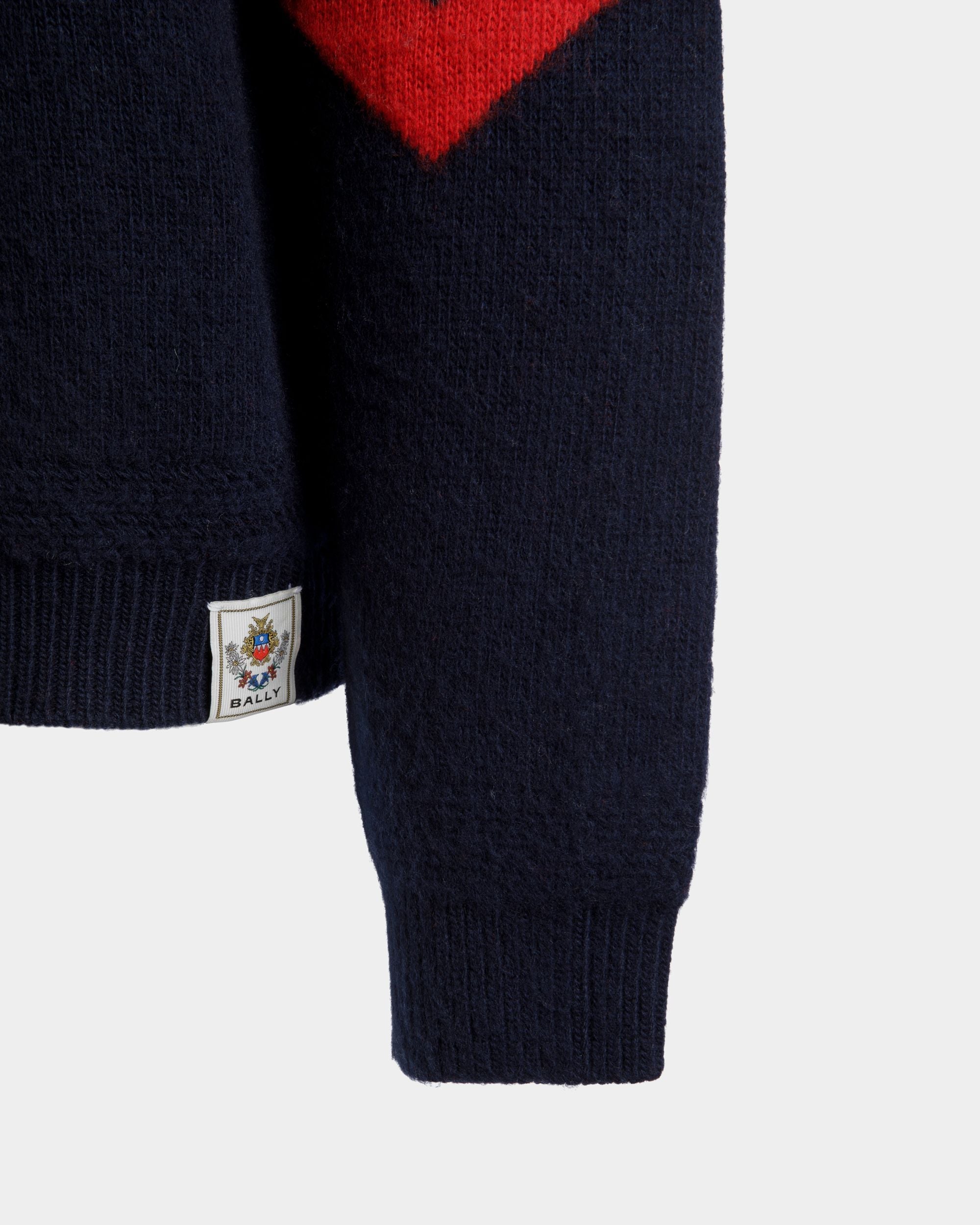 Long Sleeve Polo Shirt With a Bally Crest in Blue Cashmere Blend