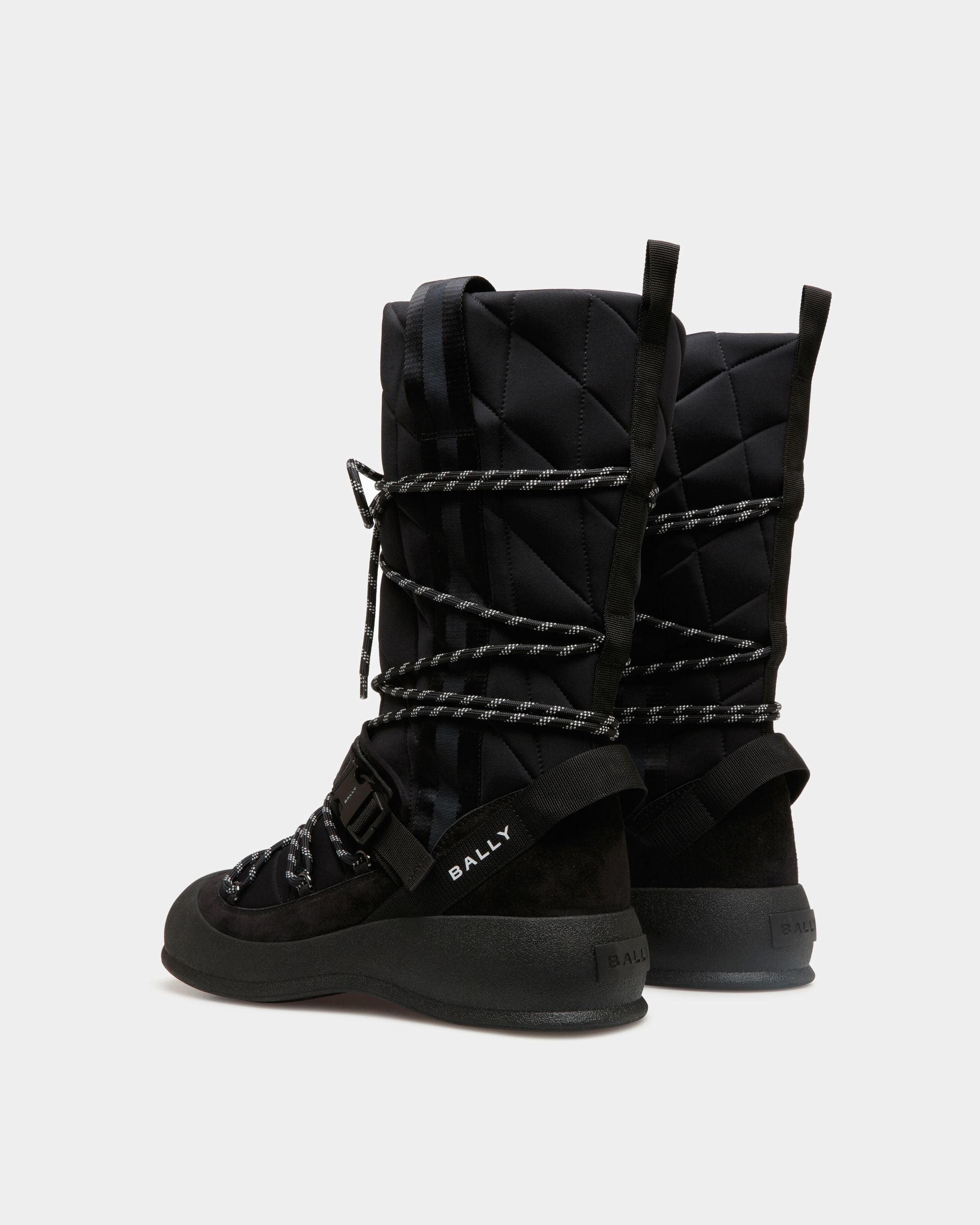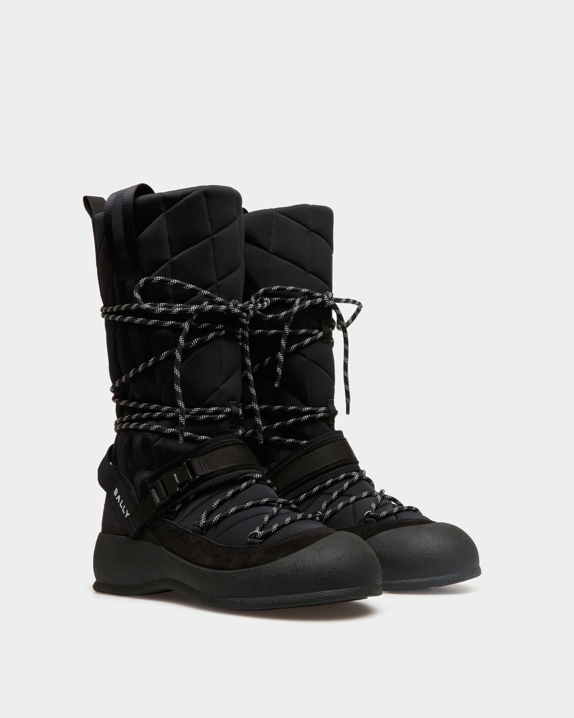 Frei is a lace-up boot that unites sleek styling and utilitarian features that protect from the elements. Tough-wearing laces and an adjustable strap wrap around the Alpine-ready black quilted nylon upper for a snug fit. Perfect for the fashion-forward individual seeking both style and comfort.