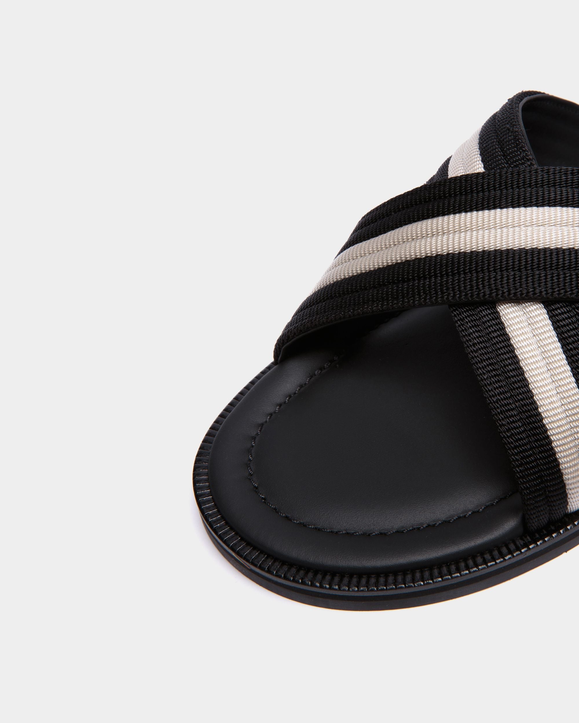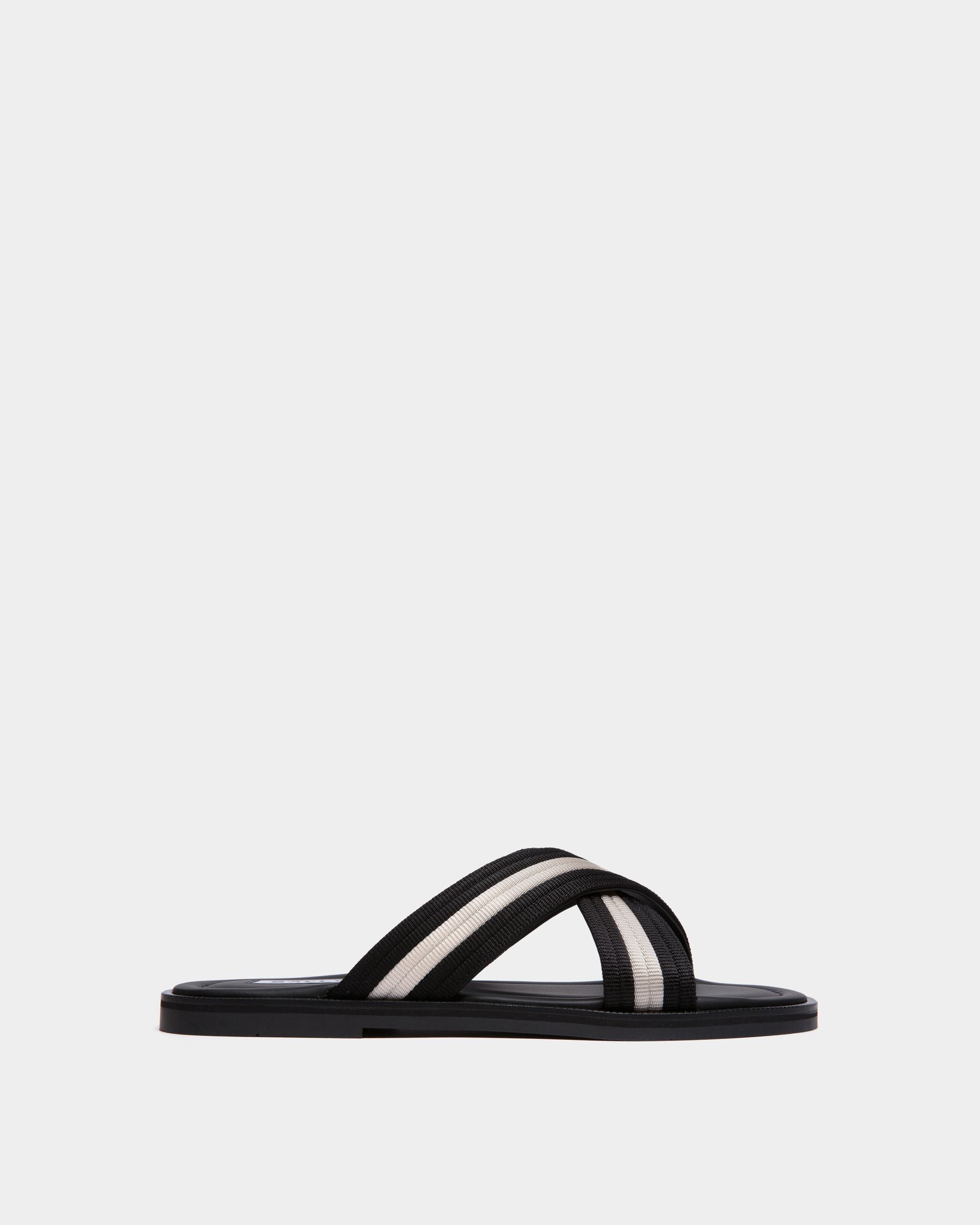 Elevate your summer wardrobe with these black and white nylon sandals. With a slide design topped by crisscrossed straps, they're a touch of luxury at the beach, poolside, or even in the city.
