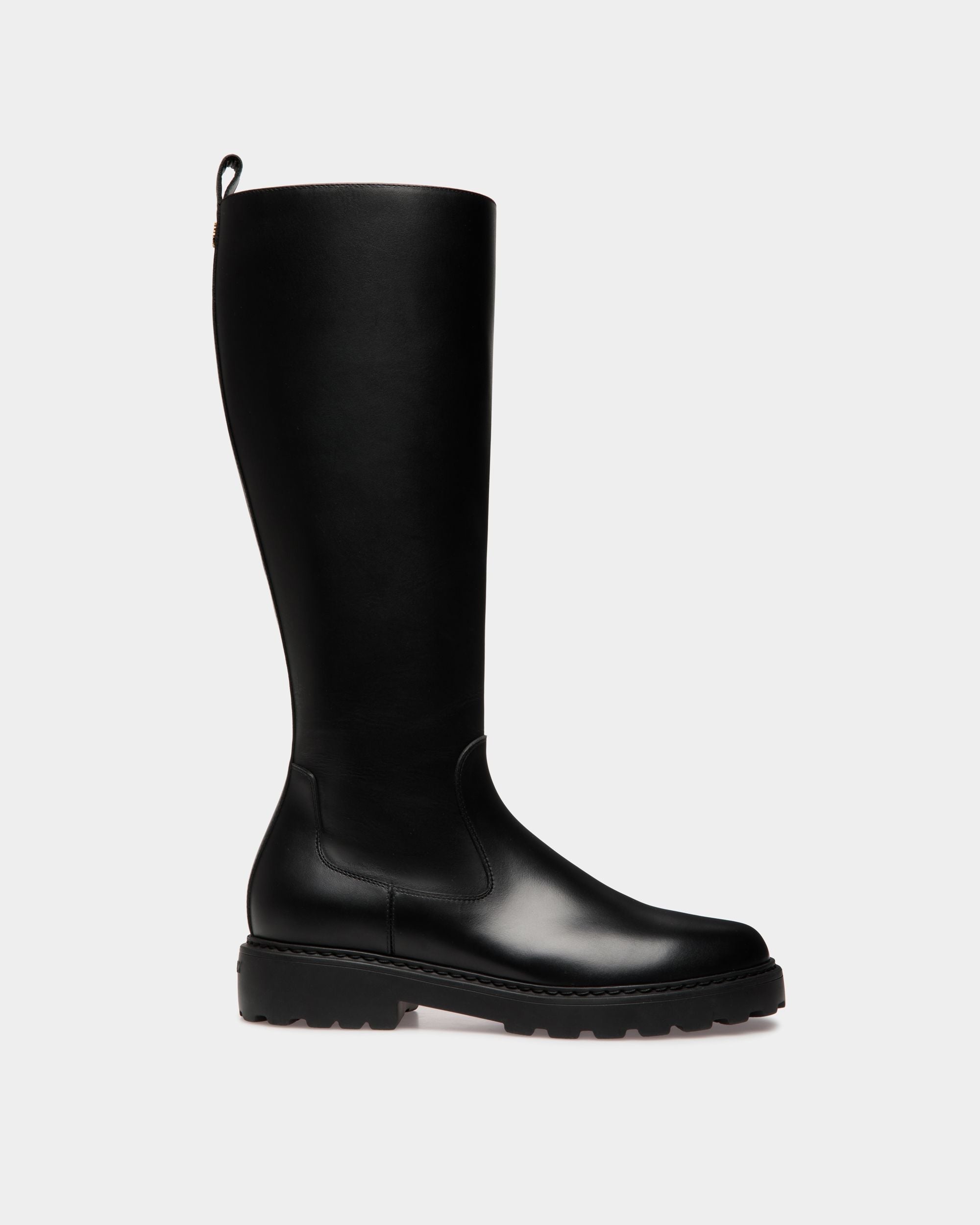 Smart and sophisticated, the Gusto boot is finely crafted from a black leather upper united with a chunky yet lightweight rubber sole. Gold-tone hardware, from the zipper to the Bally Crest, amplifies the refinement of this tall boot.