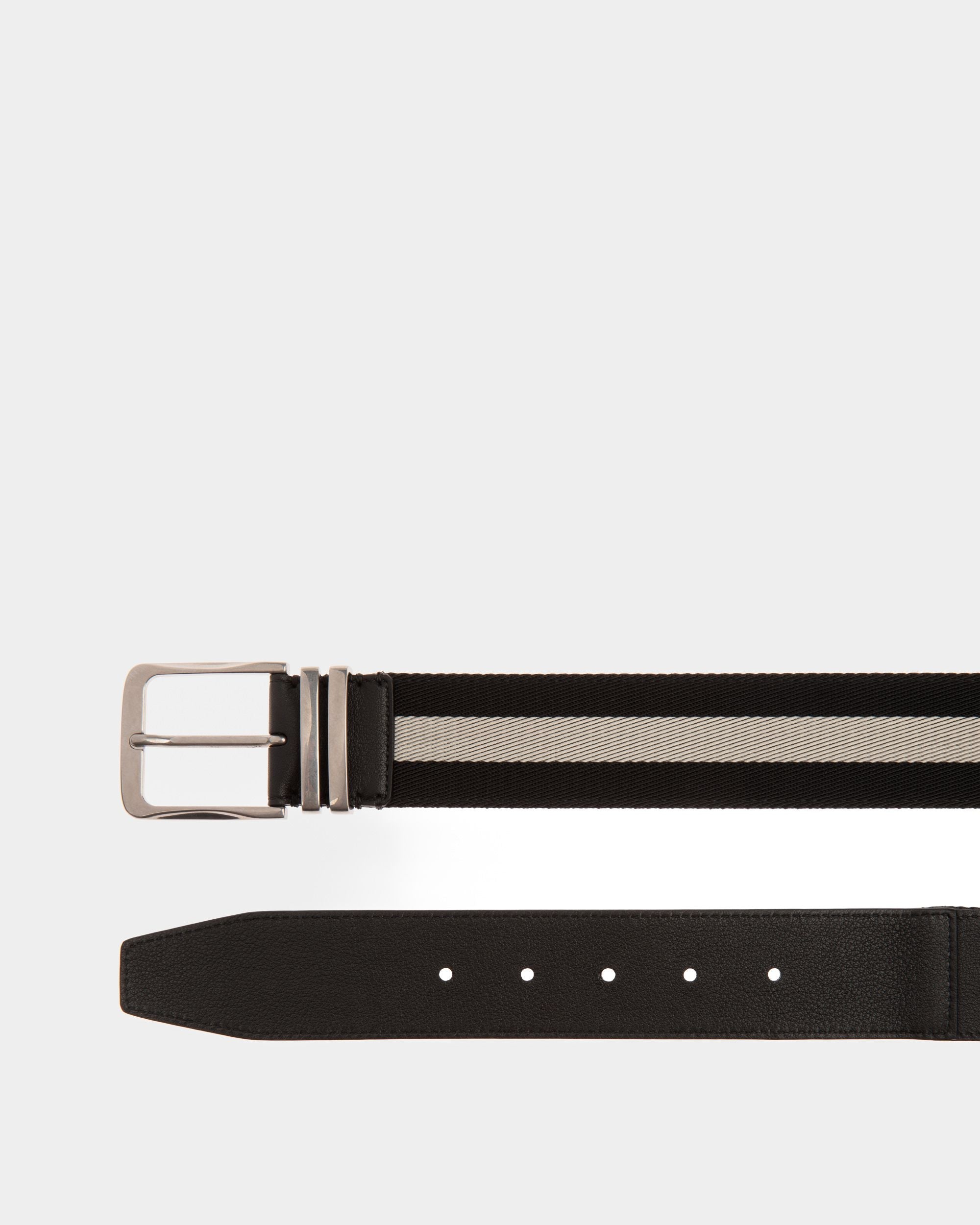 Seen here in a refined contrasting two-tone style, this fabric and leather belt is the perfect finishing touch to elevate any casual outfit.